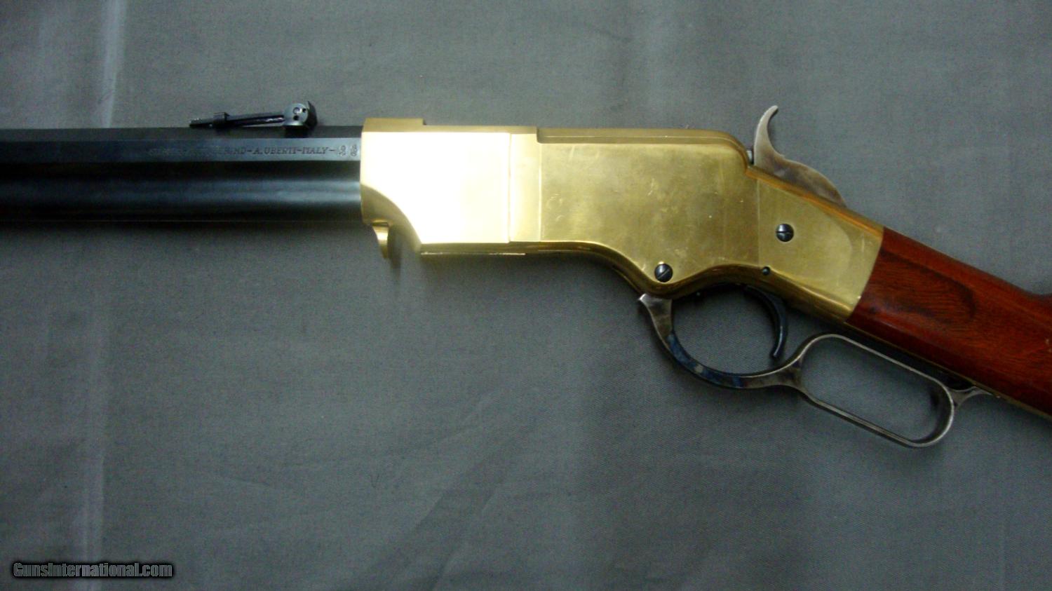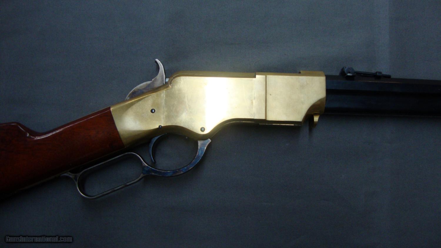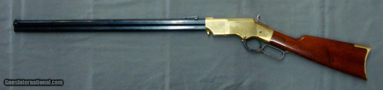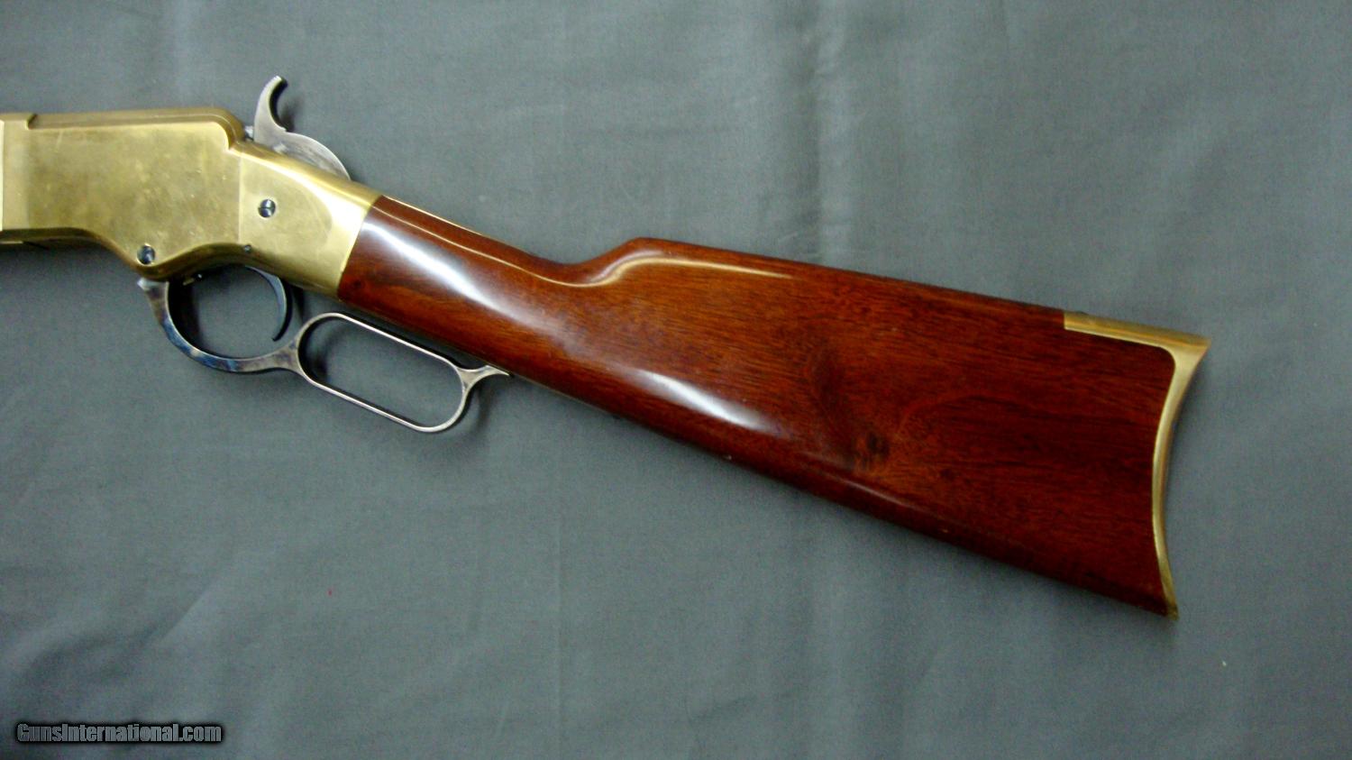 Description: Uberti Henry 1860 .45 LC 24" octagonal barrel 13-1/2" length of pull Color cased lever and hammer Hardwood stock Comes with the box SOLD |