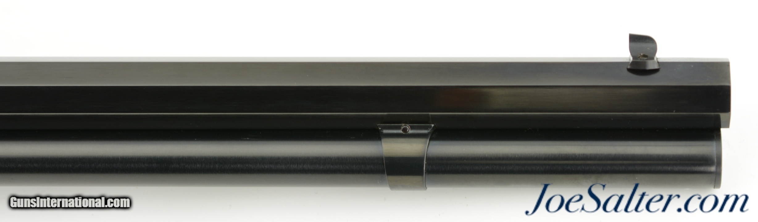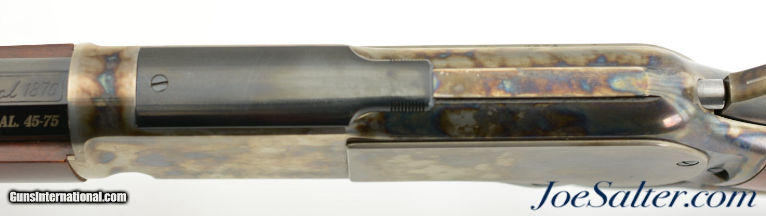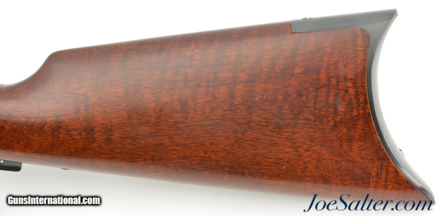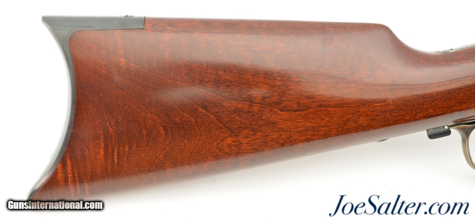 Description: Serial #CN1160, .45-75 WCF, 28" octagon barrel with an excellent, bright bore. This is an extremely handsome, modern version of the legendary Winchester Model 1876 rifle. The rifle retains virtually all of the original blue on the barrel, magazine tube, dust cover, and buttplate, with a commensurate amount of the original color case-hardening remaining on the frame, lever, and hammer. The walnut forend and buttstock are also in excellent, little-used condition, although there is a single tiny blemish on the underside of the forend about halfway down. Additionally, the stock compartment contains a segmented cleaning rod, and the rifle is housed in the original cardboard box with papers. These .45-75 chambered rifles were discontinued in 2020, and this example is in excellent, almost unused condition. FFL; SOLD |
