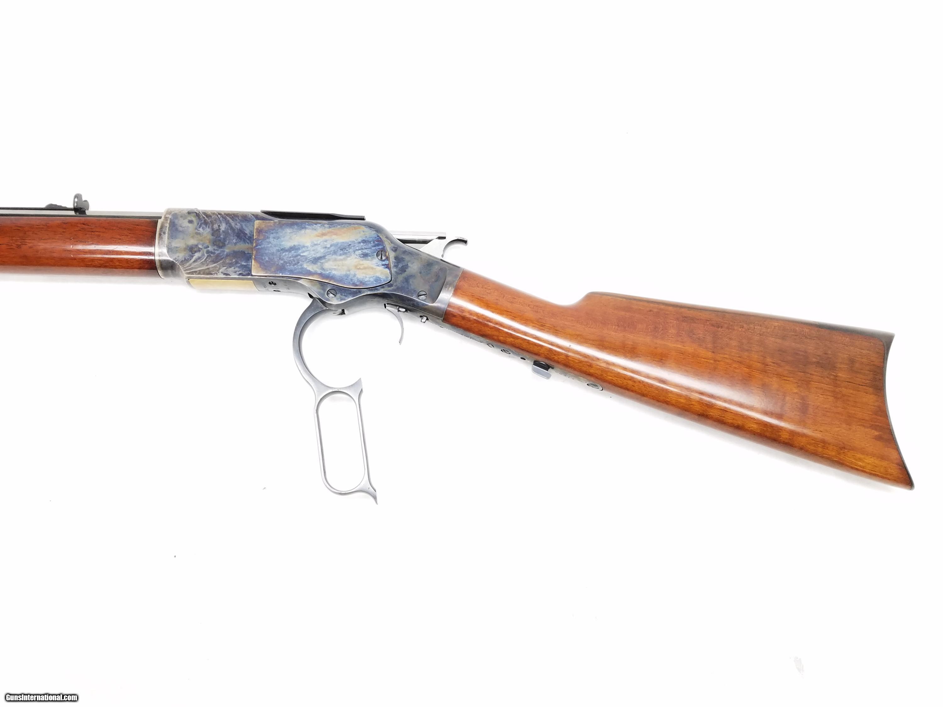 Description: This is a Uberti Model 73 lever action rifle chambered for 44-40. This rifle has a 24-¼” blued octagonal barrel with a taper of 13/16” at the receiver to 11/16” at the muzzle. The finish on the barrel, magazine tube, and forend cap is in excellent condition with no dents or scratches. The bore is in similar condition. Mounted in dovetails are the fiber optic front sight and an elevation-adjustable rear sight. The receiver is color cased and also in great condition. The trigger, lever, and sliding ejection port cover are blued with no dings or scratches. The lever has some finish wear where it meets the receiver. The elevator is made of brass and undamaged. “Model 1873” is engraved on the top tang and a lever retainer is mounted to the bottom tang. The walnut buttstock with crescent buttplate and forend are in good condition. There are a couple small dings, but no disruption to the somewhat glossy finish. Length of pull is 12-¾”, overall length is 43-¼”, and weight is 7.6 lbs. Our stock number is #A301. Willing to ship anywhere in the US to your FFL, buyer pays freight and insurance. SOLD Manufacturer: Uberti Model: 1973 Caliber Info: 44-40 Win Metal Condition: excellent Wood Condition: excellent Bore Condition: Excellent Barrel Type: tapered octagonal Action: lever Stock: walnut LOP: 12-3/4 Finish: blued Weight: 7.6 lbs |