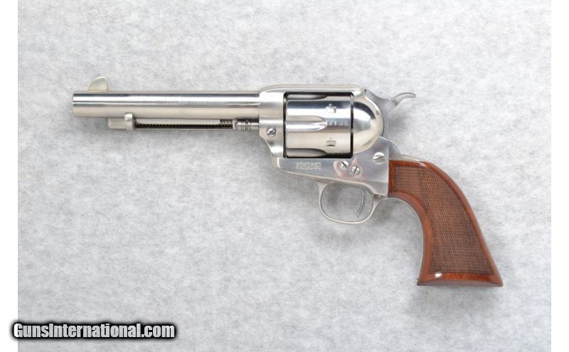 Description: SOLD Caliber Info: .45 Colt Chambers: 6 shot. Metal Condition: Excellent. A couple minor handling marks. Wood Condition: Excellent. Bore Condition: Excellent. Barrels: 5.5 inch stainless steel. Triggers: SA Stock: Checkered hardwood. Weight: 38 oz. Sights: Blade front. Integral notch rear. Extras: With Box Item Location: Richfield, WI |