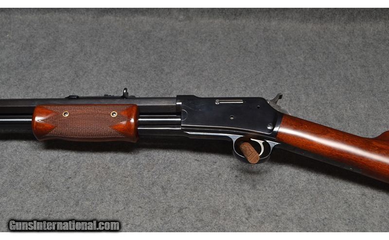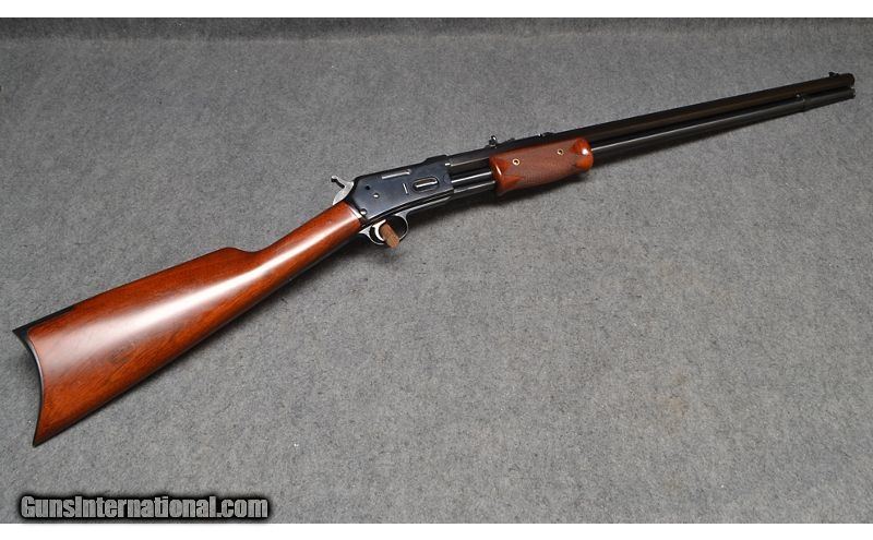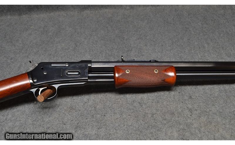 Description: .45 Colt SOLD Chambers: Pump-action rifle. Metal Condition: Very good. Wood Condition: Very good. Bore Condition: Shiny and bright. Barrels: 24" blued steel barrel. Triggers: Single metal trigger. Stock Dimensions: 13-1/2" LOP. Fore End: Checkered walnut fore end. Butt Pad: Walnut stock with crescent butt plate. Weight: 6 Lbs. 12 Oz. Sights: Factory iron sights. Item Location: Wichita, KS |