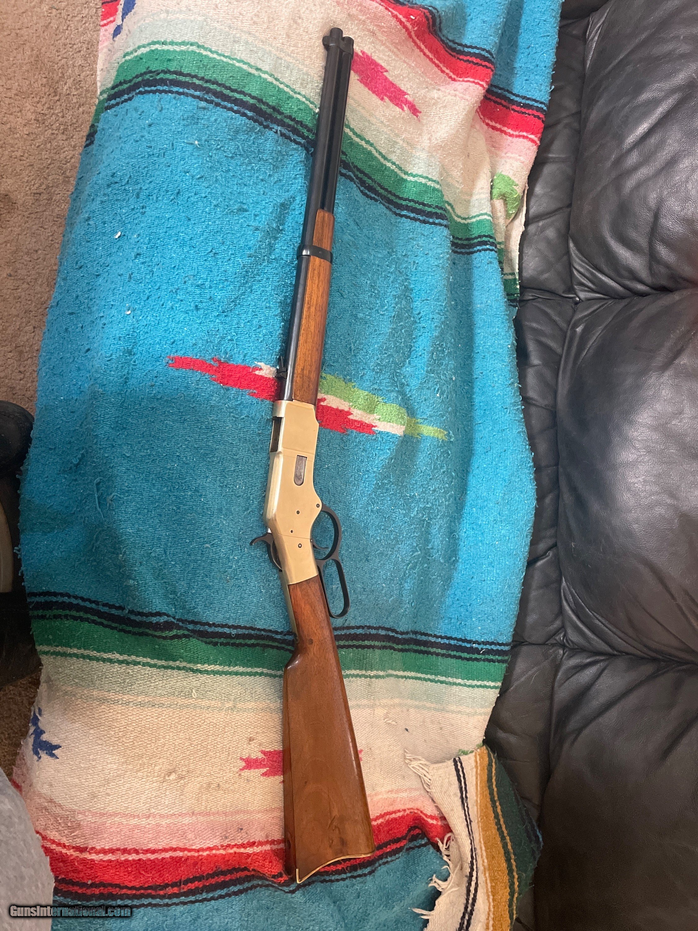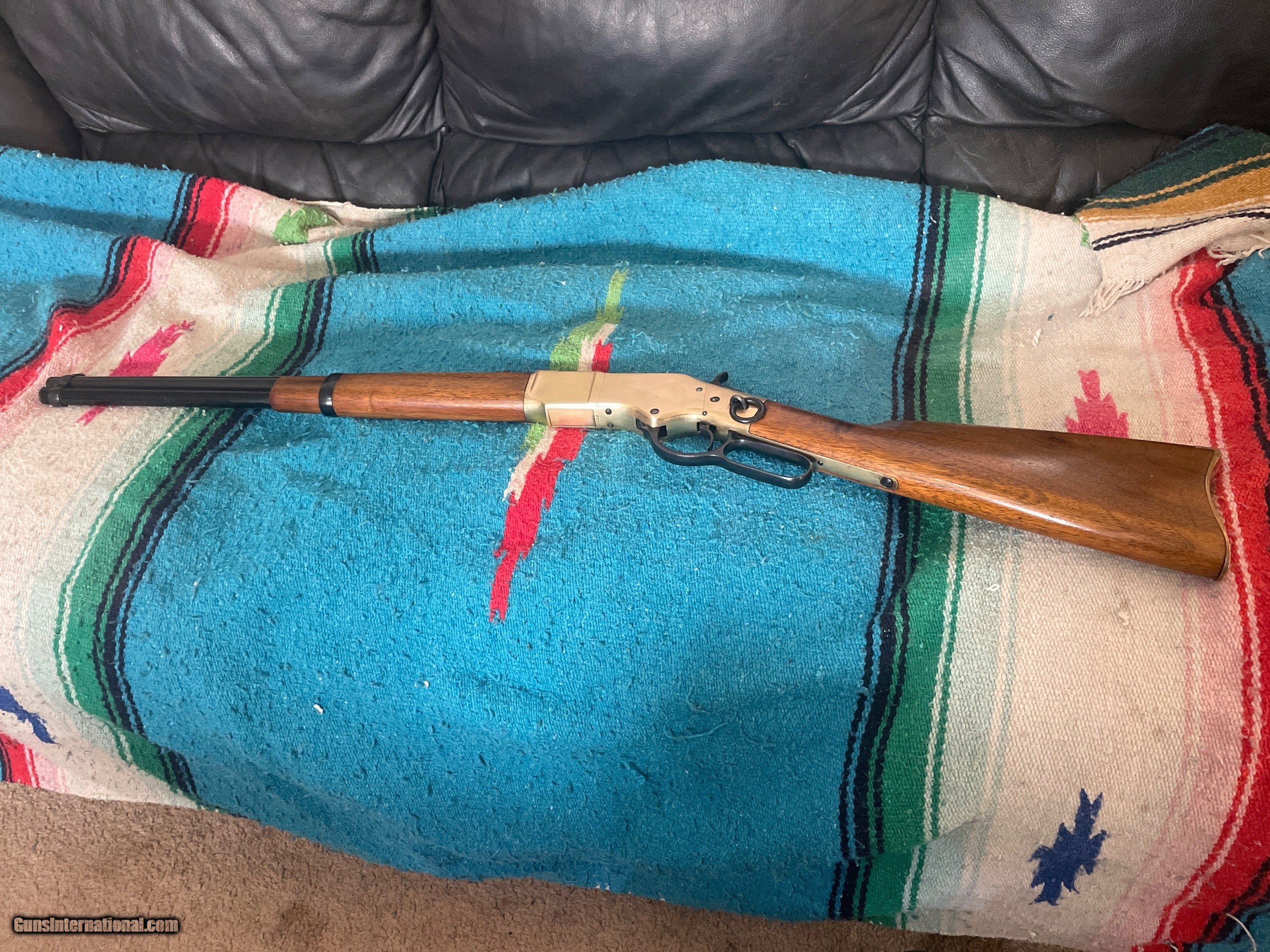 Description: Navy Arms Yellow Boy in 38 special. I bought this rifle when they first came out. Saddle ring carbine with an 18" barrel. Barrel is 18" with 100% blue finish. Brass has a few small nicks and tiny scratches which comes with a soft material like brass. If you plan on using 158g RN. On put 4 or 5 rounds in the gun. Flat nose jacketed function the best. price is $1000 and shipping is free Use the contact form at the bottom of this add or call and leave a message and I'll get back to you I'll need a copy of the dealer's FFL you want it shipped to. There a 3 day inspection period and payment is through GunTag or money order. I will ship after mo clears. I also accept cashiers checks or official bank checks Rifle Caliber: .38 Special, .38 Manufacturer: Uberti Model: 1866 yellowbou Serial Number: 5445 Barrel Length: 18” Condition: Very good Metal Condition: Very good Wood Condition: Very good Bore Condition: Very good Barrels: 1 Action: Lever Triggers: 1 Stock: Wood Fore End: Wood Butt Pad: Brass Weight: 7.2 lbs Sights: Open Price: $1,000.00 Shipping: $40.00 Buy Now Pay with
