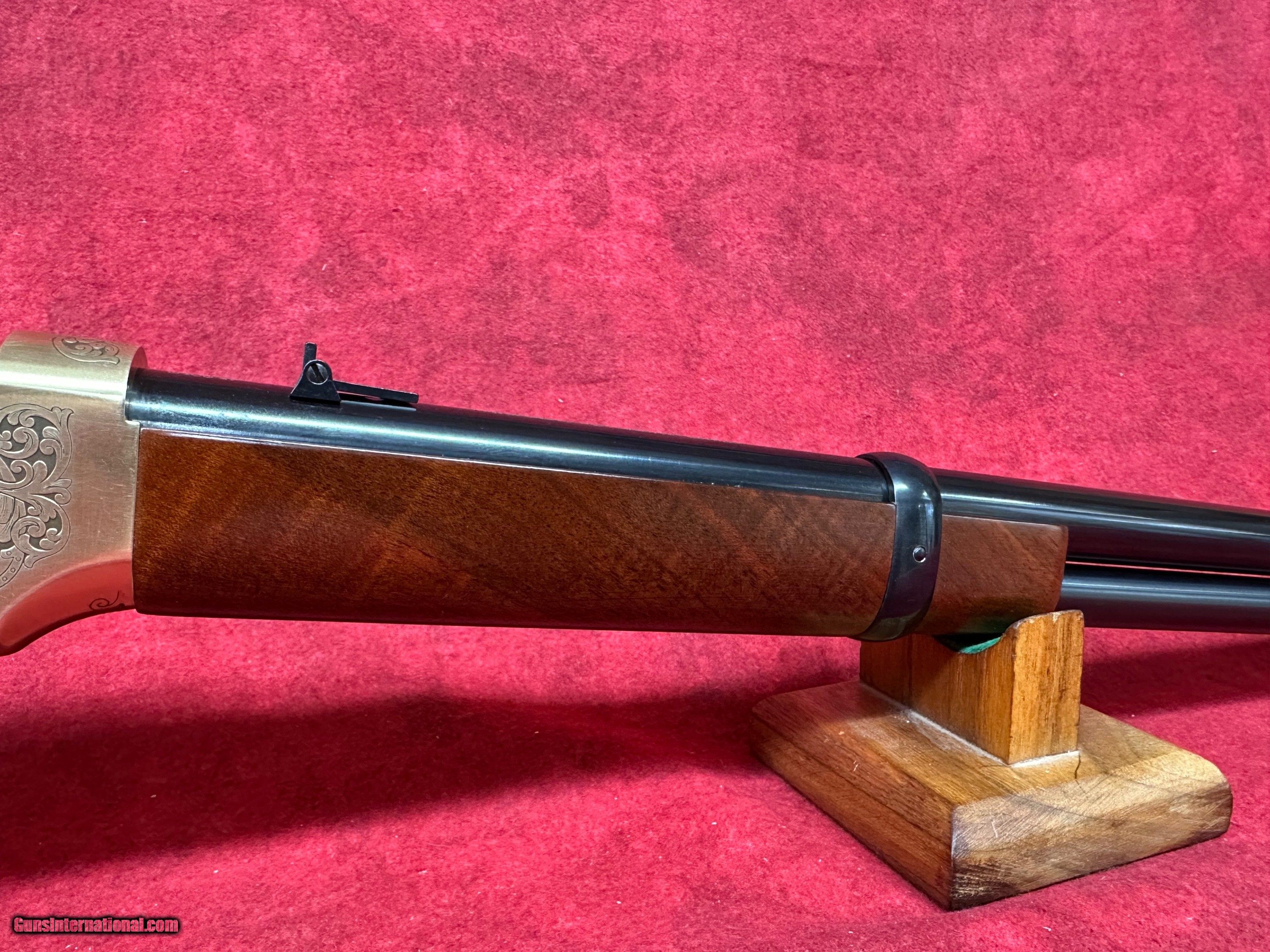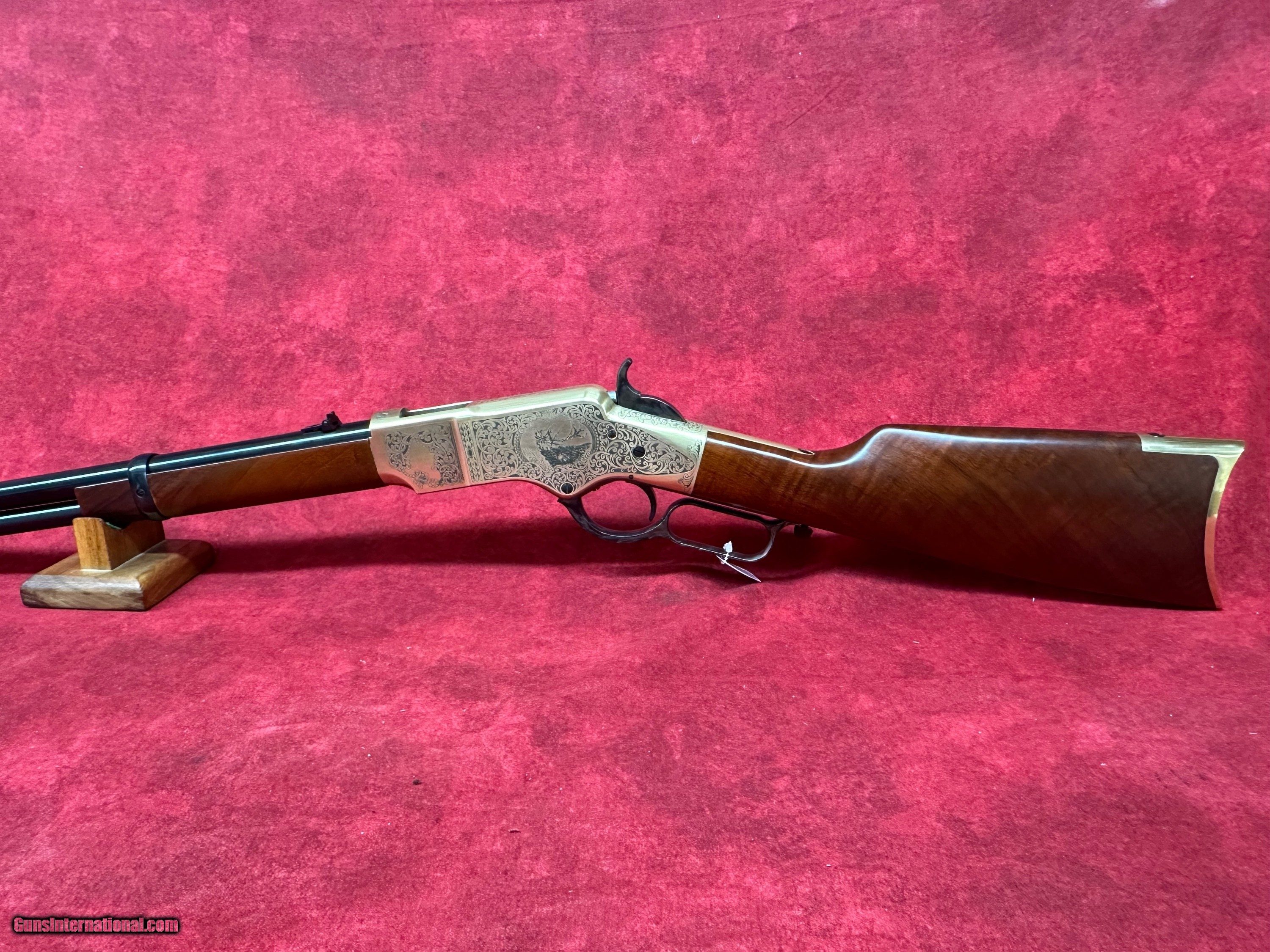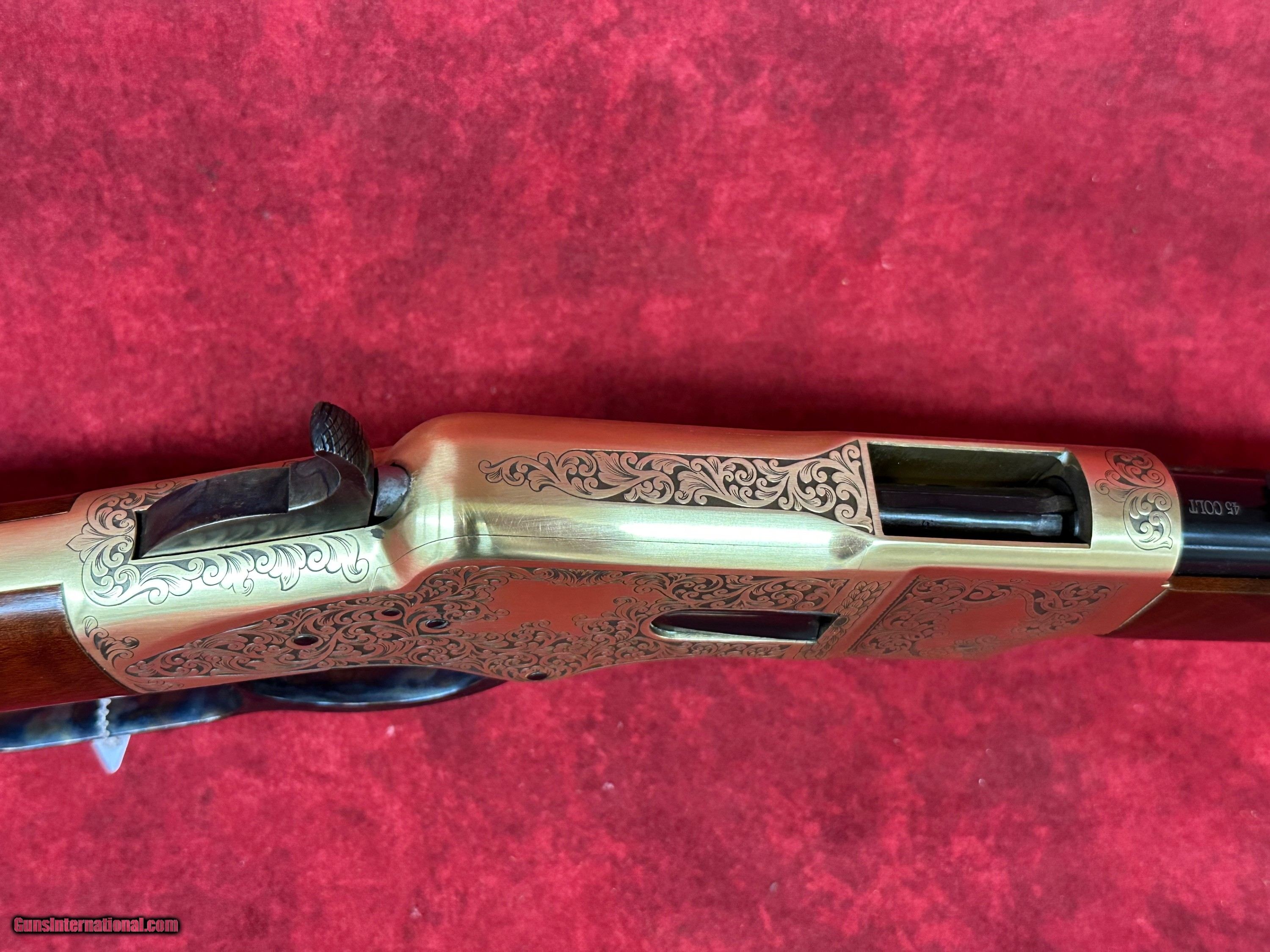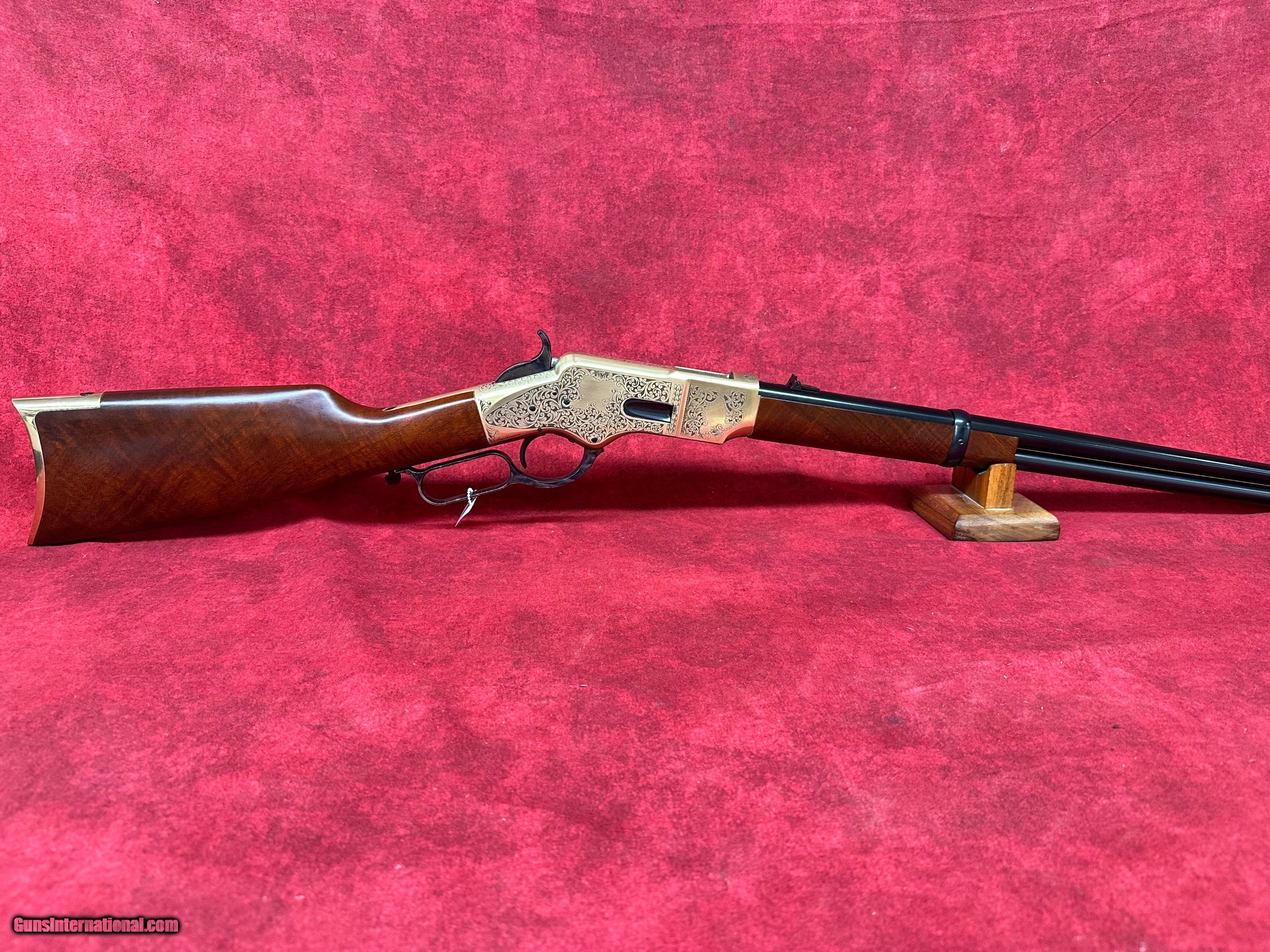Description: Uberti 1866 Yellowboy Deluxe .45 LC 20" Barrel A-Grade Walnut 10+1 Rifle (342341) This rifle is brand new in the box. The Winchester Model 1866 was a revolutionary design when it was first produced. It might not have been the first leaver action rifle, but it did give rise to the popularity of their design. At the time of the Model 1866’s introduction, single shot muzzle-loading rifles reigned supreme, and repeating rifles that used metallic cartridges were still considered a novelty. The Model 1866’s ability to fire over and over again without reloading gave it’s user a massive amount of firepower and a considerable advantage over those still using muzzle loading designs. They quickly gained a reputation for being reliable and accurate, and their bronze frame gave the rifle a yellow color, hence their nickname “The Yellow Boy.” Uberti is offering the 1866 Yellow Boy Deluxe. This special edition rifle’s receiver features a beautiful series of engravings, meticulously copied from an original rifle from a private collection. The design shows a timeless acanthus-leaf motif on both sides. The left side of the receiver contains a medallion-shaped frame surrounding a bugling elk, while the right side has an escutcheon that may be left blank or engraved with the owner’s initials. All the work has been performed by the famed Atélier Giovanelli of Italy. Features of the 1866 Yellow Boy Deluxe: