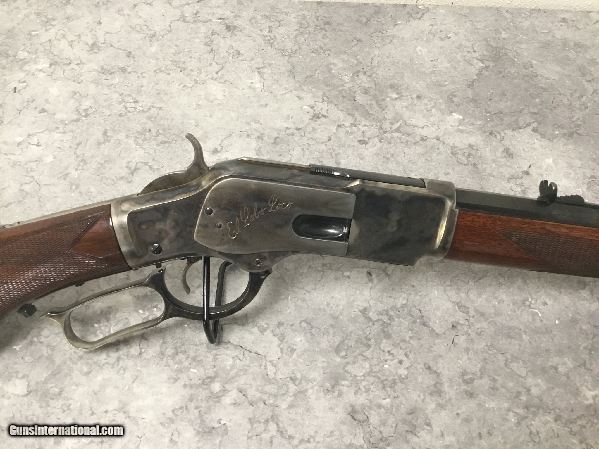 Description: Guns Listing ID: 1299692 Uberti/Navy Arms Model 1873 Sporting Rifle Good Condition 45 Long Colt 24 In Barrel 13 Rd Capacity Case Hardened/ Blued Finish “El Lobo Loco” engraving on the receiver. “Turtle” Front sight post No original box SOLD Manufacturer: UBERTI Model: 1873 Caliber Info: .45 COLT Condition: Used - Non-Certified Barrels: 24 BARREL Finish: CASE HARDENED/BLACK |