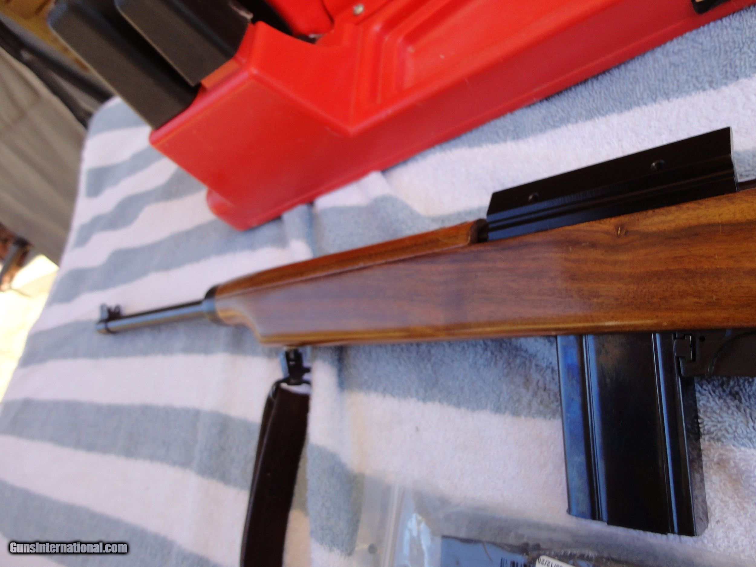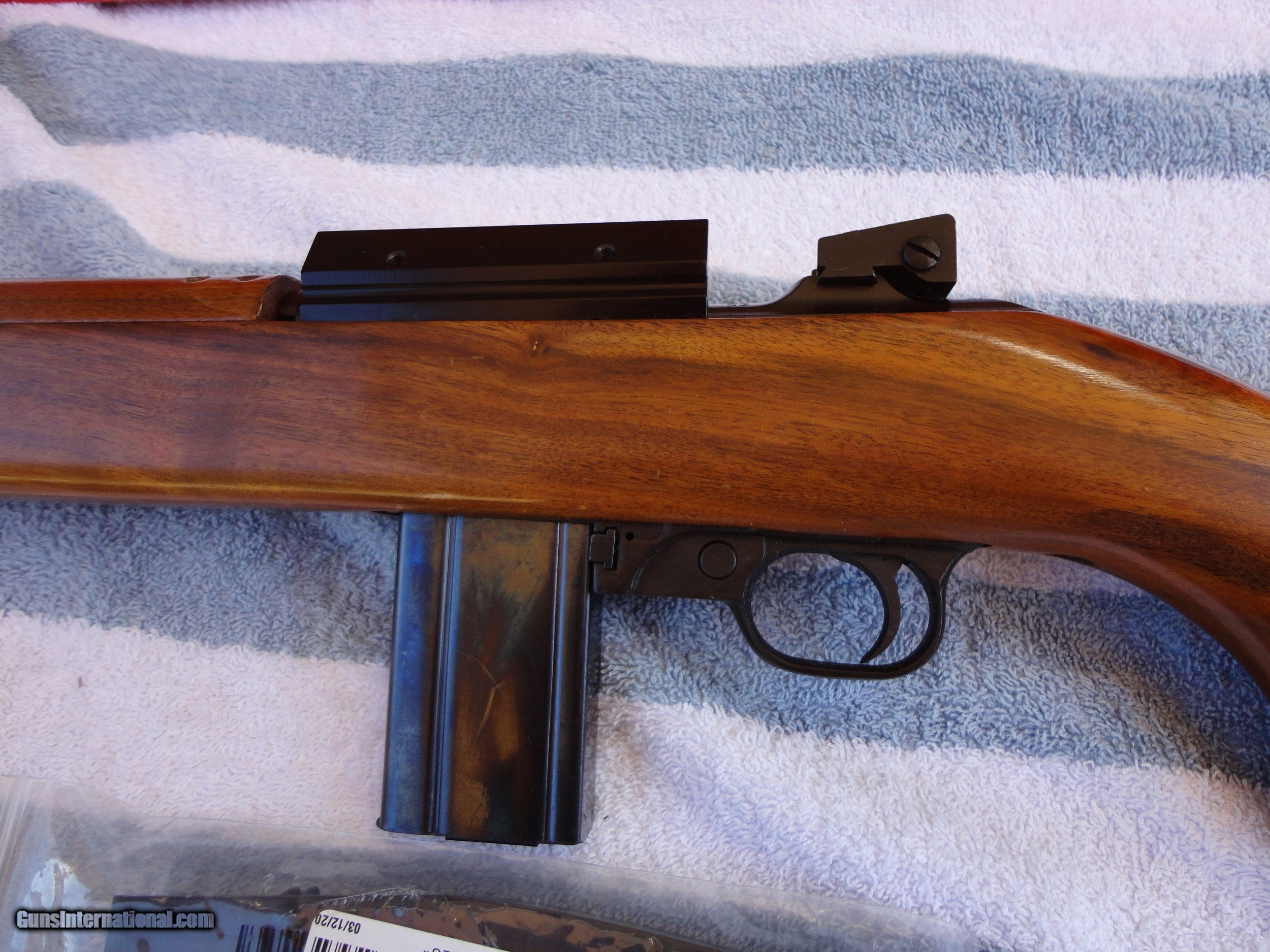Description: ** SOLD ** Mirror bore. Blueing and wood are the nicest I have ever seen on a 30 carbine. Has the factory side scope mount Comes with 4 30-round magazines and 1 5-round. Nice old 50's style leather & brass sling Early manufacture. Dad bought this after Korea and shot it once. It's lived in the safe since then. Please refer to the photos to further assess the condition of the rifle. If you use the Guns International inquiry form to contact us, please make sure to check the email associated with your GI account for our response. We are on the west coast (pst), so please excuse any lag or delays on our responses to you. If paying by credit card, you will need to provide a valid email address for us to send your invoice to for payment. Credit card payments have a 4% additional charge. Guns ship once payment and FFL (if applicable) are received by us. All guns ship insured and tracked. We are private sellers so please make sure your FFL Dealer of choice for shipping accepts shipments from private sellers. Also please make sure that the gun you are purchasing is legal to own in the state where you reside, we are not responsible for knowing all the laws for all 50 states. Thanks for looking. SOLD Rifle Caliber: .30 Carbine Manufacturer: Universal Model: M1 Serial Number: 547XX |