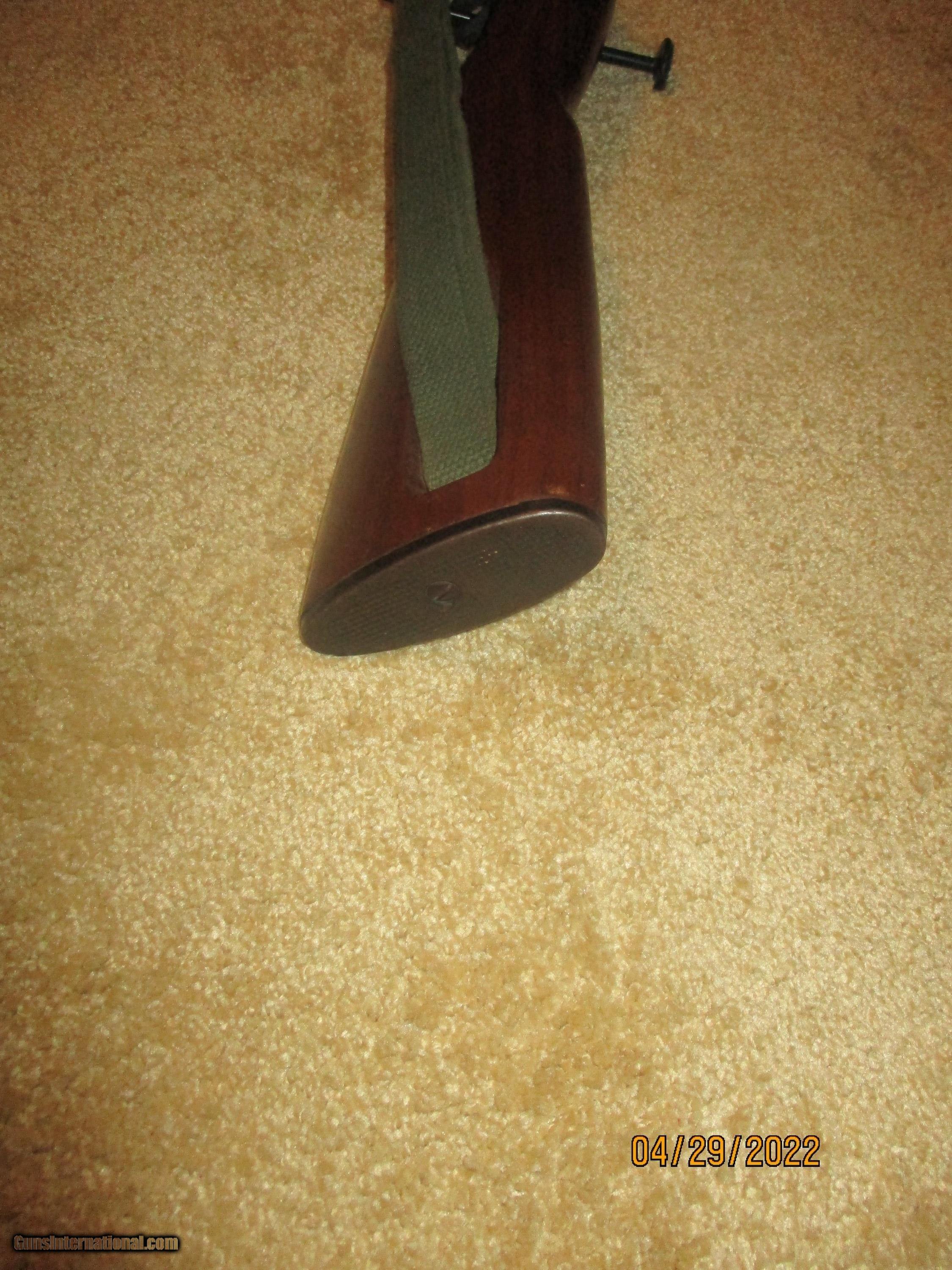 Description: 18 1/2" bbl., bayonet lug, 3 piece walnut stock, 15rd. also 20 rd. magazine, original steel checkered butt, US Military sling, oiler, schmetics, provanance included, 95%+ condition, functions as original: C. Bishop SOLD |