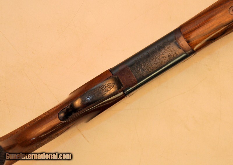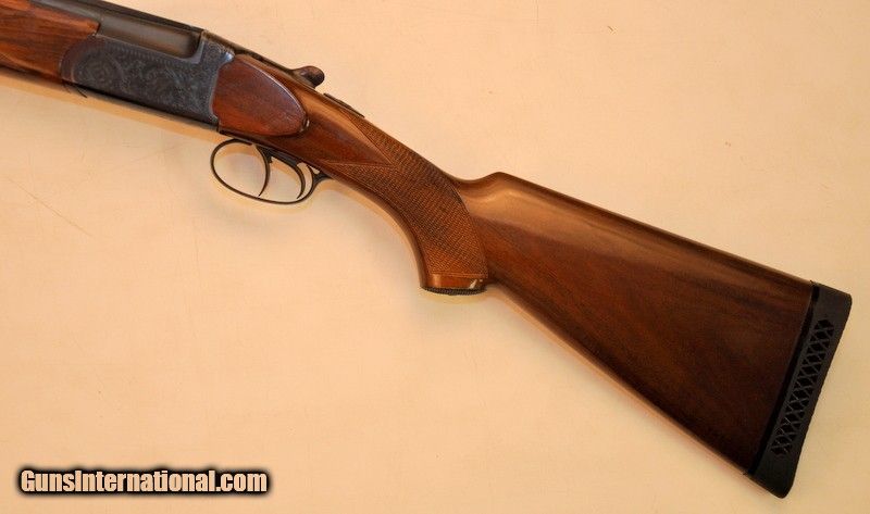 Description: 20 gauge, 3". SN-17XXX. 27-1/2" vent rib barrels with fixed M&F chokes. Brass front bead. Blued boxlock action has full coverage scroll ornamentation. Features include; cross bolt locking, double triggers & extractors. Checkered walnut forarm & capped pistol gri stock. LOP 14-5/8" over original black recoil pad. Solid European shotgun imported by Universal Firearms, Hialeah, FL. Bbl. & action retain 98% original blue. Original wood finish shows a few light scratches & marks. Sound mechanics.Very good bores. Priority mail to FFL $25.00 SOLD |