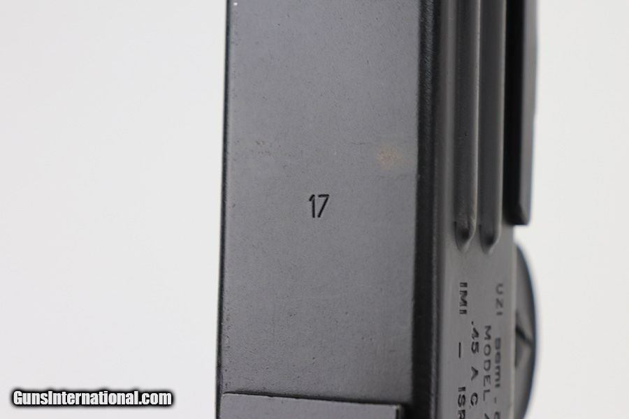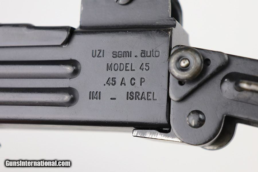 Description: This is an excellent example of an original IMI UZI Model 45 Carbine in all original condition. This pre-ban firearm qualifies as a rifle with its 16in barrel, and also features a retractable stock. It has minor handling wear and a little bit of finish loss on the barrel, but in great shape overall. Minty bore, would be a fun shooter. Comes with an original IMI magazine (16rd). FFL required. SOLD Rifle Caliber: .45 ACP Manufacturer: IMI Uzi Model: Model 45 / Model B Serial Number: 001024 Condition: 97-98% Bore Condition: 9/10 Manufacture Date: 1980s |