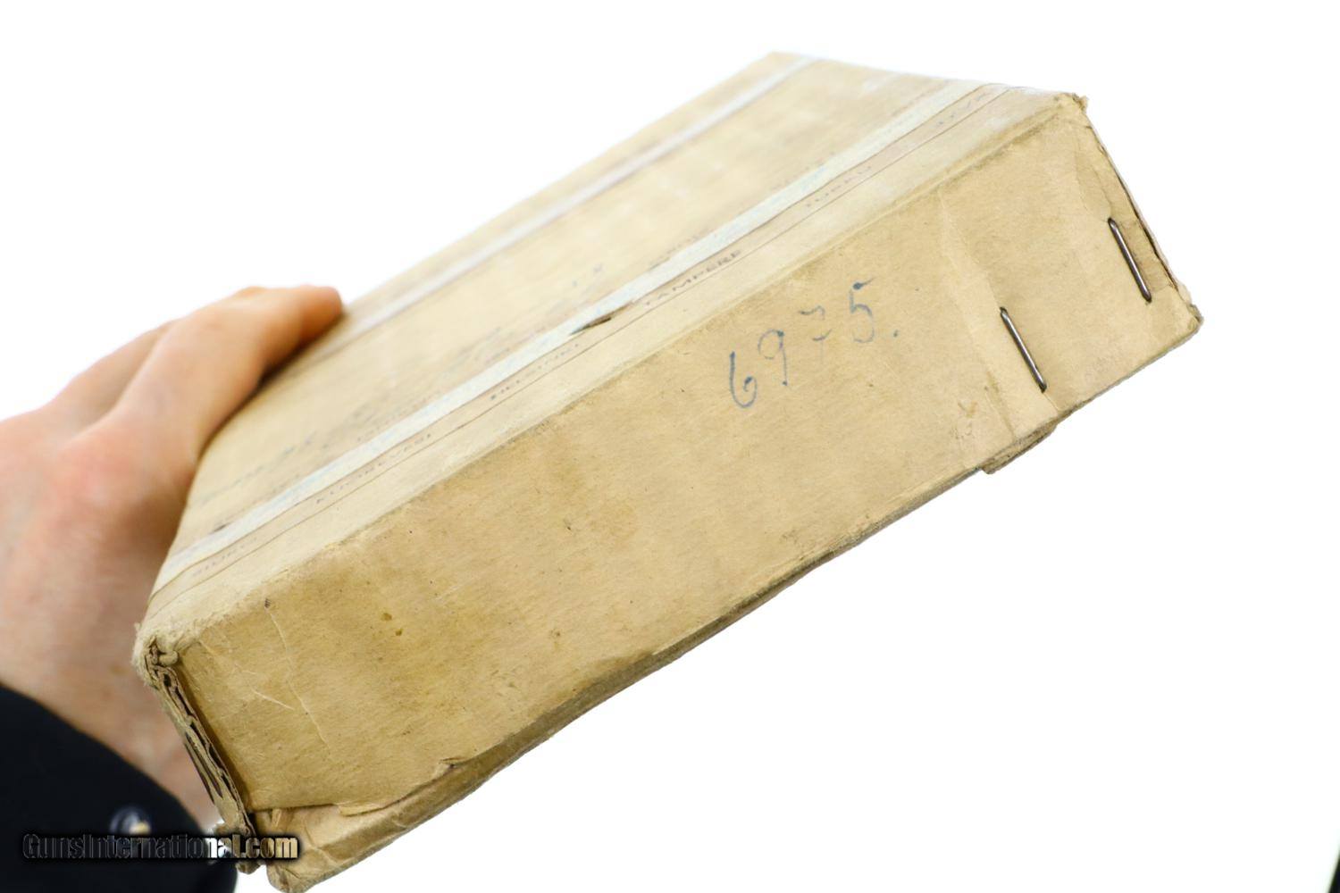 Description: After WWII, Valmet manufactured approx 2500 L-35 pistols for commercial sale, largely using military overrun parts in the serial range 6800-9300, this example near NIB with spare magazine with takedown tool in original factory-matching shipping box. One of the earlier examples, it still retains the loaded indicator in a rectangular housing, the slide markings having been altered from the military VKT to the commercial VALMET/L-35. Mechanical features are otherwise identical to the late military pistols other than the frame no longer having the shoulder stock lug. This all matching pistol has the correct brown mottled plastic grips each molded with the VKT logo and secured with a single screw. Correct magazine with an in-the-white body and blued floorplate. Complete with spare magazine, takedown tool, and factory-matching cardboard shipping box. Synopsis: Fabulous Finnish VKT Valmet L-35 Lahti pistol, Commercial, near NIB Condition: Near new, the front strap only having a few microscopic dings and the right side of the receiver only having a few scratches. Grips are as new, magazines and takedown tool still with congealed grease. Mirror bore. Perfect manual mechanics. VG box with stains and scuffs, factory taping, very legible, faded inked serial number on end of box. An extraordinary opportunity to buy a virtually new, early, commercial L-35 as assembled right after WWII, with accessories, in its factory-matching box! ~~Insured shipping fee of $75; most packages shipped using FedEx 2nd Day.~~ SOLD Manufacturer: VKT Serial Number: 6975 Caliber Info: 9mmP |