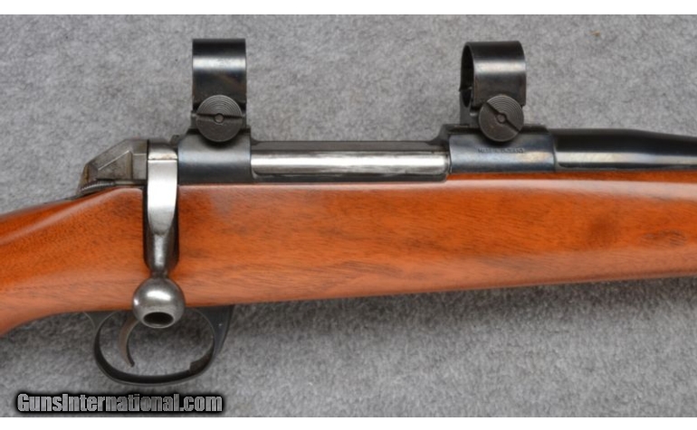 Description: Wood shows a few faint use/storage marks. Blue and bore remain excellent. Complete with scope rings. SOLD Manufacturer: Circa 1960's Caliber Info: .222 Rem. Mag. Metal Condition: Excellent Wood Condition: Very Good Bore Condition: Excellent Barrels: 24 Triggers: Factory Stock: Uncheckered Walnut Stock Dimensions: 13 1/2" LOP Fore End: Uncheckered Walnut Butt Pad: Black Plastic Weight: 8 1/4 LB Sights: None-Rings Included Item Location: Wheeling, WV |