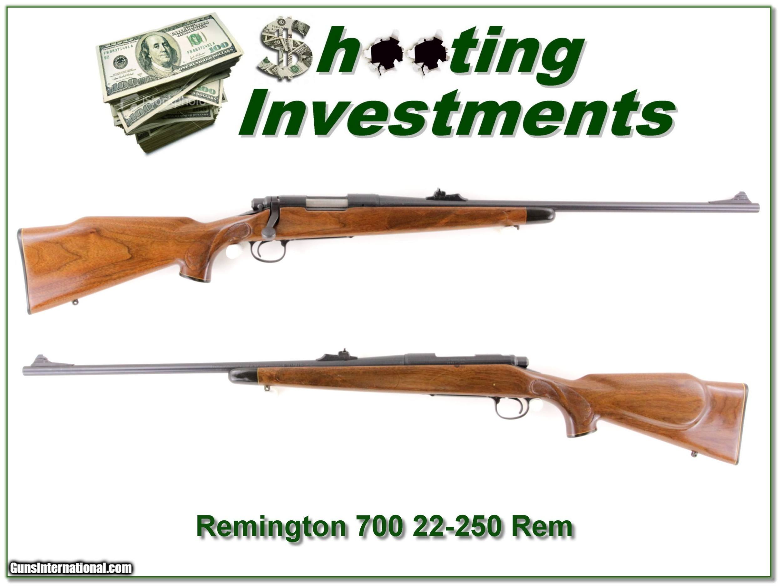 Description: This is a Remington 700 22-250 Remington. The blue is excellent with a standard weight 24in barrel. It has an early pressed checking stock with beautiful wood grain and just a couple marks. It has an added coat of varnish. It will make an excellent varmint or target gun. Shipping with insurance is $39. Please email me with any questions or larger pictures. (Consign your quality firearms with Shooting Investments for only 12%! Let me know if you have any you would like to sell!) 19-0551 Payment: Payment is by Money Order, Cashiers Check or Personal Check. I can now also accept MasterCard and Visa with a 3% convenience fee. PayPal can be used for some items but never firearms. Please let us know if you would like to pay via PayPal. Shipping: The shipping charge will be listed in each description. It is $39 for most long guns and $29 for most handguns. Some heavy guns or those insured for over $2000 will be higher. Shipments to Alaska and Hawaii are higher because air shipment is required. Most firearms are shipped on Tuesday and Thursday and usually in 5 days of receipt of payment. We package all shipments carefully and insure them. For long guns you can purchase a new Plano case for $19. They now cost us $22 when buying 100 at a time. Optics are shipped Priority Mail and most other non-firearm shipments are shipped First Class. Returns: Our return policy is simple. If for any reason you are not pleased with your purchase, you may return your item for a full refund of purchase price. Ammunition cannot be returned. It is important to us that you are happy. Guns cannot be fired or dissembled before returning them and they must be returned in the same condition as received. Notification of a return must occur with-in 3 days of receipt at your dealer. Shipping, convenience and dealer fees are not refundable and are the responsibility of the buyer. Lay-a-way: If needed, we offer a 60 day lay-a-way option on most firearms. It is 1/3 now, 1/3 in 30 days and 1/3 in 60 days. Lay-a-way firearm sales are final and if not completed the first payment cannot be returned. Consigning your firearms with Shooting Investments: We will help you get top dollar for your firearms. While most local guns shops charge 20% or more, our fee is only 12% with a minimum of $75. At your local gun shop it might take months to sell. Selling on-line provides instant access to thousands of interested buyers. You won’t find any other on-line dealer willing to sell your firearms for only 12% or listing every gun on 3 separate s. Selling through an House typically costs the seller 15% and the buyer an addition 15% (so 30%) and you have to wait several months to sell and longer to receive funds. If properly priced, we will sell your firearms in a few weeks. Send us an email or give us a call and we’ll explain how easy it is for you to get top dollar. Trading: Trading for use is really just buying your gun to re-sell. If you have a gun you want to trade, please email a picture and we will let you know what we can give or it. You will always get more if we sell it for you on consignment. Help for California Buyers: We are happy to ship to California. It is the buyer’s responsibility to make sure any item you buy is legal in your state. We are also happy to help with your purchase of a firearm from someone other than us. If you see a gun you would like to buy but the seller can’t or won’t ship to California they can ship to use and we’ll then ship it to your California dealer. The cost for this service is only $30 + shipping. Let us know if we can help! SOLD |
