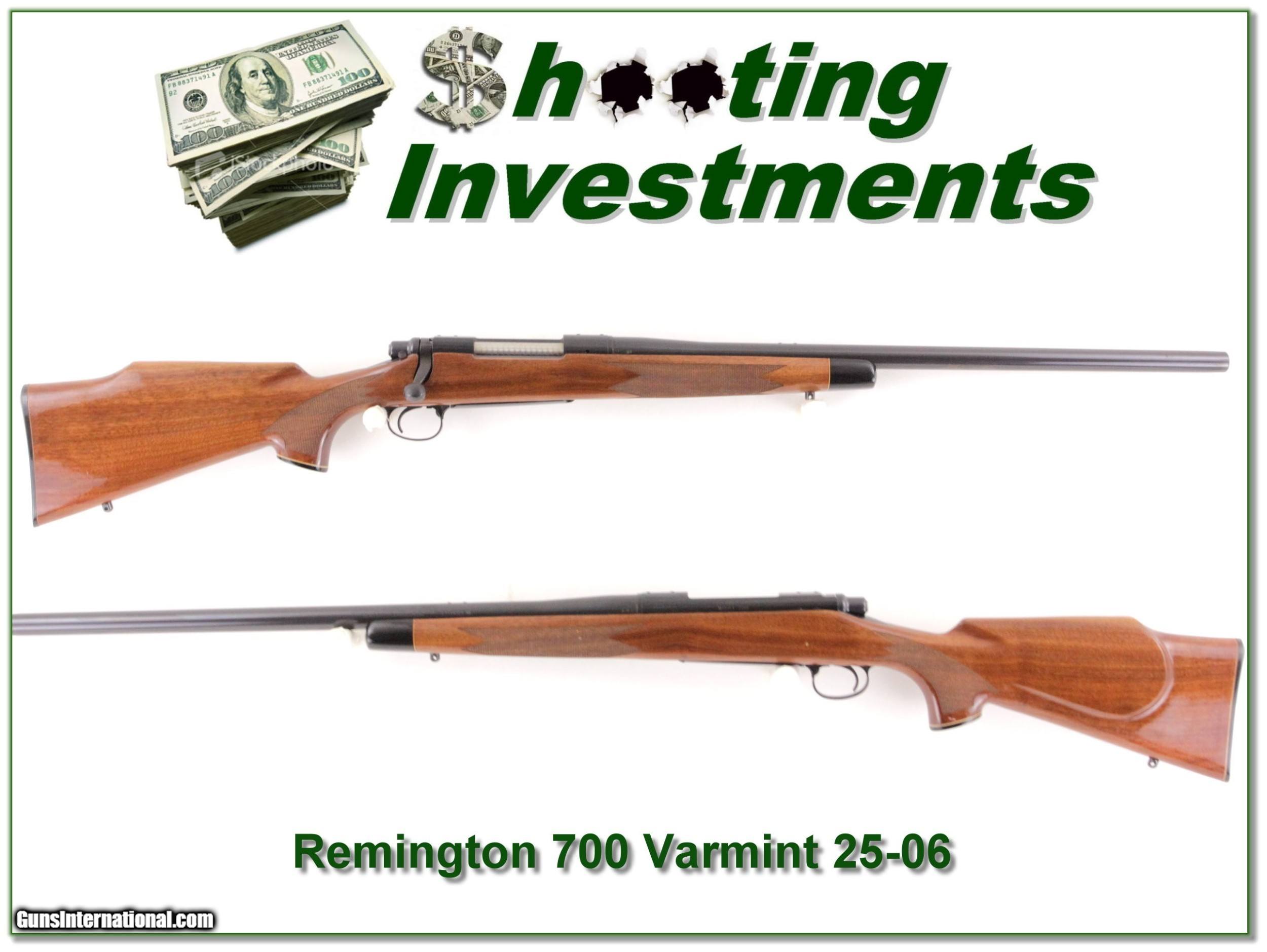 Description: This is a rare chance to owner a Remington 700 Varmint Special in 25-06! This one is excellent condition. From the bolt I’m sure not many rounds fired. It has a heavy 24in barrel and just a few minor handing marks. It will make a classic gun for the range or field or be a fine addition to your collection. Either way, it is a Shooting Investment! I am selling this one on consignment and as such lay-a-way can’t be used. It does of course have the standard 3-day inspection. Shipping with insurance is $79. Please email me with any questions or larger pictures. (Consign your quality firearms with Shooting Investments for only 12%! Let me know if you have any you would like to sell!) 19-1424 Payment: Payment is by Money Order, Cashiers Check or Personal Check. I can now also accept Credit Cards (MasterCard, Visa, Discover & American Express) with a 3% convenience fee. PayPal can be used for some items but never for firearms. Shipping: The shipping charge will be listed in each description. It is $39 for most firearms. Some heavy guns or those insured for over $2000 will be higher. Shipments to Alaska and Hawaii are higher because air shipment is required. Most firearms are shipped on Tuesday and Thursday and usually in 5 days of receipt of payment. We package all shipments carefully and insure them. Optics are shipped Priority Mail and most other non-firearm shipments are shipped First Class. Returns: Our return policy is simple. If for any reason you are not pleased with your purchase, you may return your item for a full refund of purchase price. Ammunition cannot be returned. It is important to us that you are happy. Guns cannot be fired or dissembled before returning them and they must be returned in the same condition as received. Notification of a return must occur with-in 3 days of receipt at your dealer. Shipping, convenience and dealer fees are not refundable and are the responsibility of the buyer. Lay-a-way: If needed, we offer a 60 day lay-a-way option on most firearms. It is 1/3 now, 1/3 in 30 days and 1/3 in 60 days. Lay-a-way firearm sales are final and if not completed the first payment cannot be returned. Consigning your firearms with Shooting Investments: We will help you get top dollar for your firearms. While most local guns shops charge 20% or more, our fee is only 12% with a minimum of $75. At your local gun shop it might take months to sell. Selling on-line provides instant access to thousands of interested buyers. You won’t find any other on-line dealer willing to sell your firearms for only 12% or listing every gun on 3 separate s. Selling through an House typically costs the seller 15% and the buyer an addition 15% (so 30%) and you have to wait several months to sell and longer to receive funds. If properly priced, we will sell your firearms in a few weeks. Send us an email or give us a call and we’ll explain how easy it is for you to get top dollar. Trading: Trading for use is really just buying your gun to re-sell. If you have a gun you want to trade, please email a picture and we will let you know what we can give or it. You will always get more if we sell it for you on consignment. Help for California Buyers: We are happy to ship to California. It is the buyer’s responsibility to make sure any item you buy is legal in your state. We are also happy to help with your purchase of a firearm from someone other than us. If you see a gun you would like to buy but the seller can’t or won’t ship to California they can ship to use and we’ll then ship it to your California dealer. The cost for this service is only $30 + shipping. Let us know if we can help! SOLD |