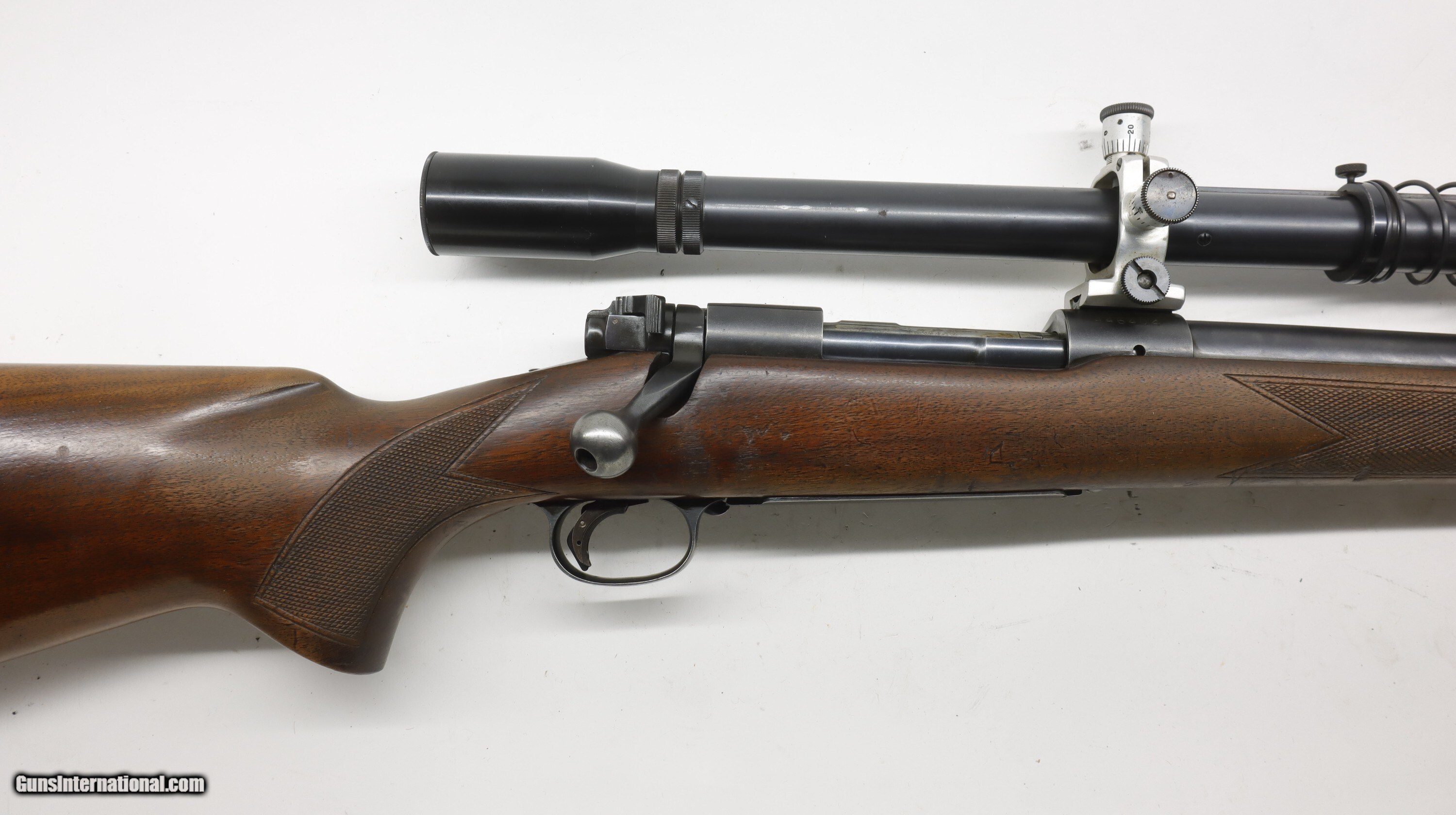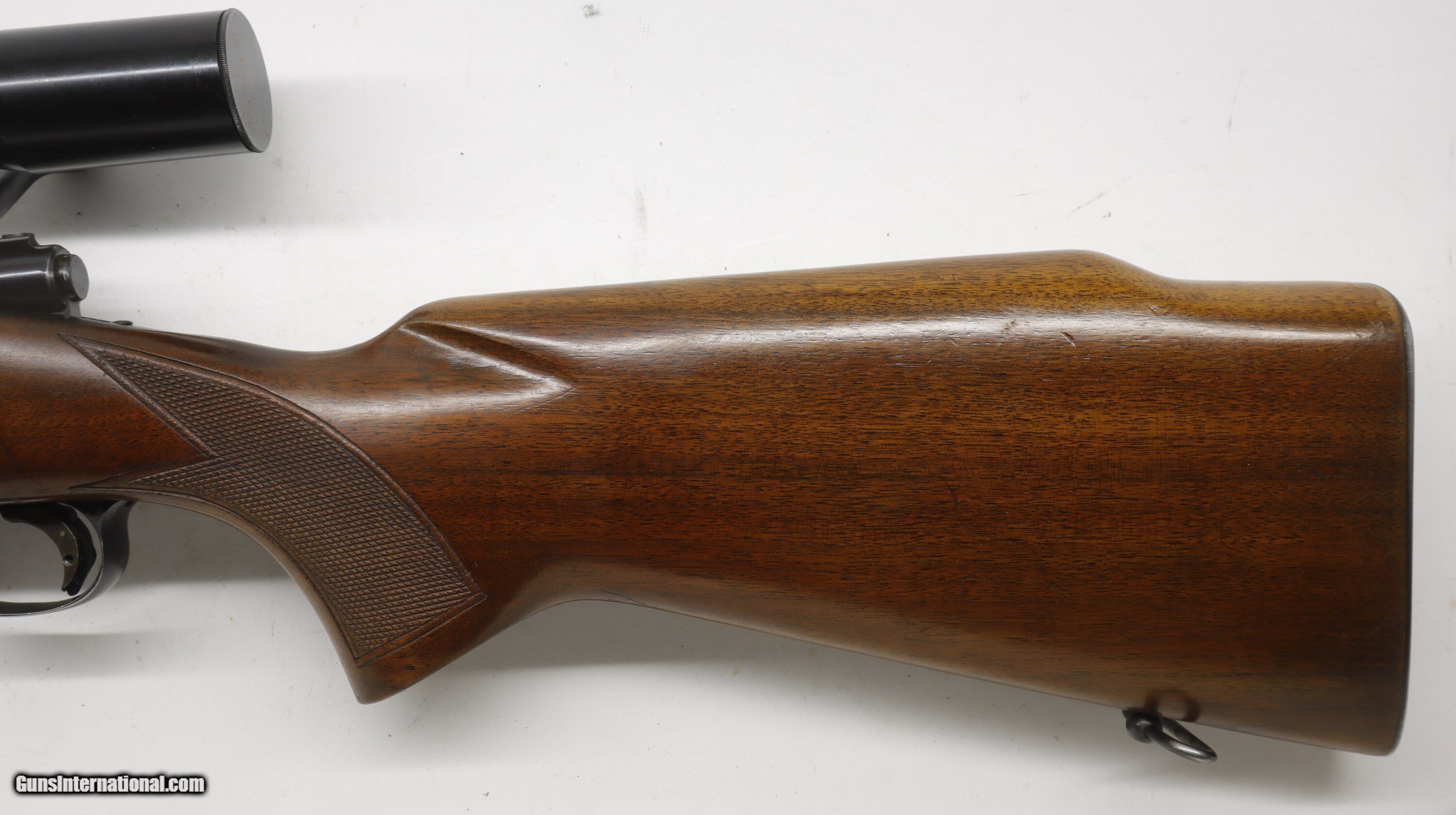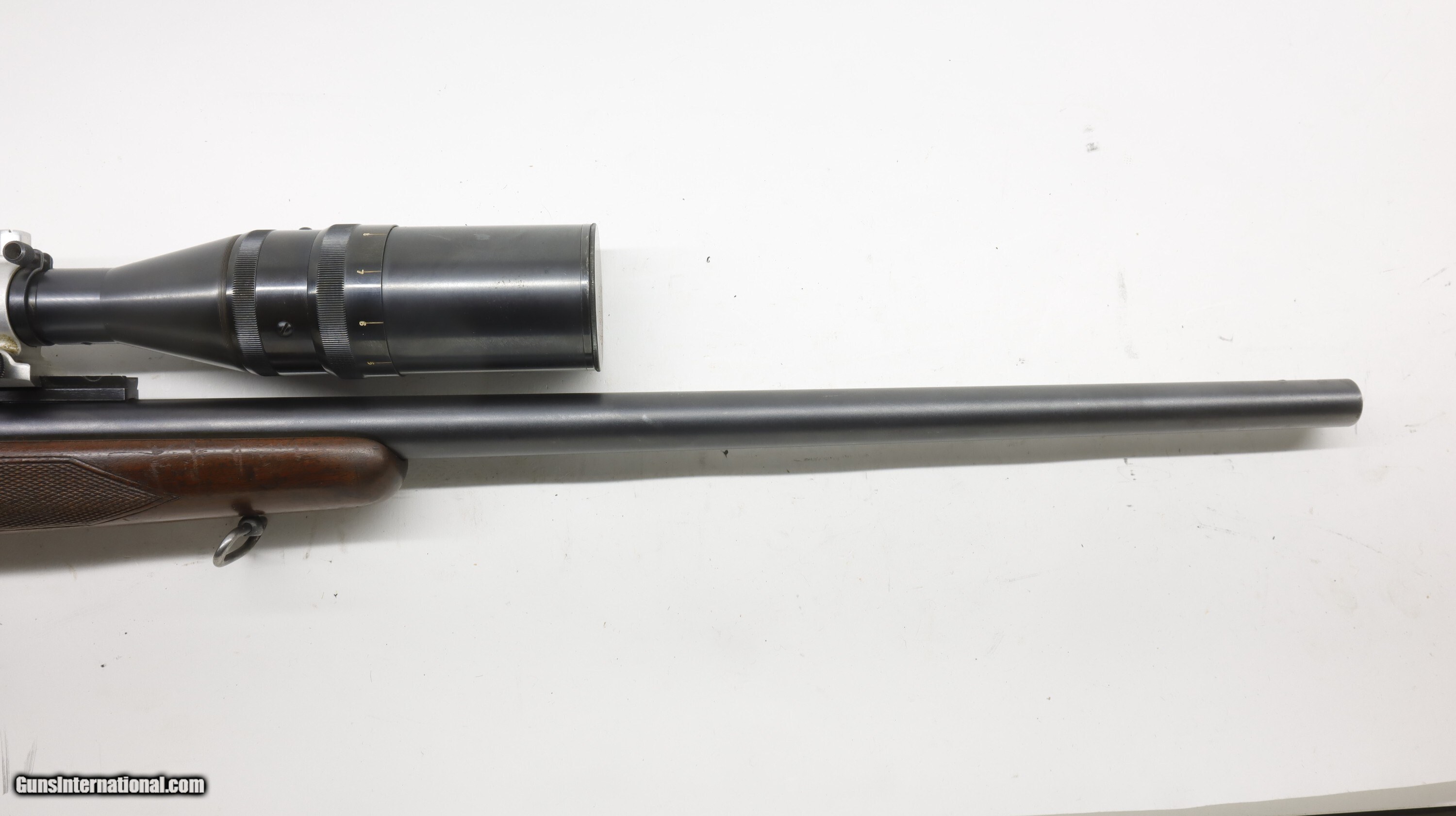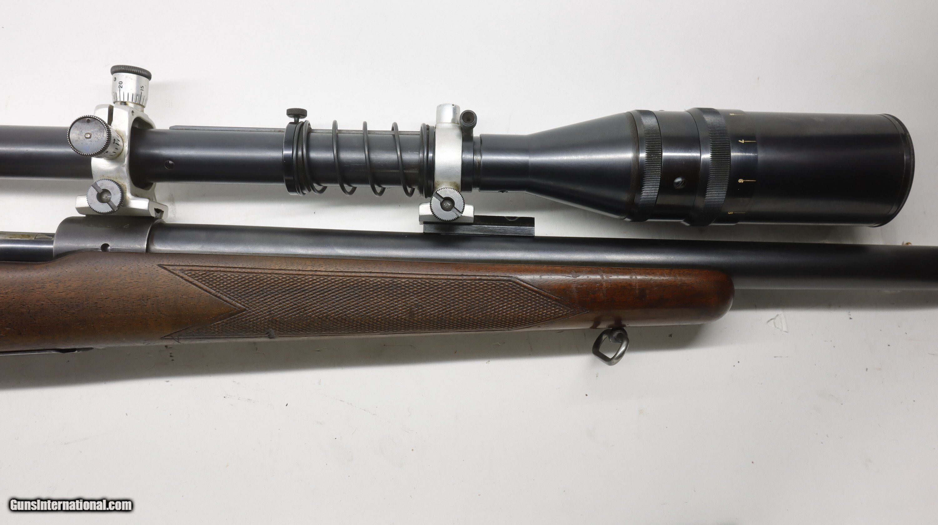 Winchester Model 70 Varmint, 243 Winchester, 26" Medium weight Stainless barrel. SN is 4464xx, made in 1959. Factroy finsih on both wood and metal, factory metal butt plate. Comes with a Unertl 15x Rifle scope. Clean and clear glass. Canjar Trigger. Good bore, good working order. Nice vintage package! Gun has a Canjar trigger, can be set all the way down to 2oz