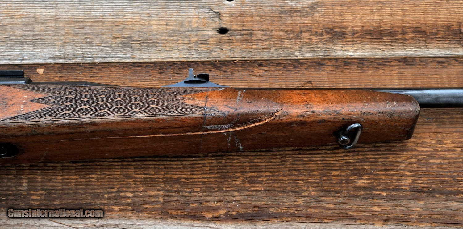 Description: Voere - 98 - .30-'06 caliber - Item Number: VOE144437 Rifle type: Bolt Action Action: Bolt Action Barrel length: 24 Sights: Factory Sights Weight: 7 lbs, oz Overall condition: Fair Stock condition: Poor Metal condition: Fair Stock: Original finish Metal: Original finish Type of Case: none Finish: Blue Type of Butt: Rubber Pad Pad thickness: 0.75 " Manufactured in: Austria Lop: 14 1/8 " Hand: Right Comments : Project rifle, stock is split thought the forend. R-48 SOLD |