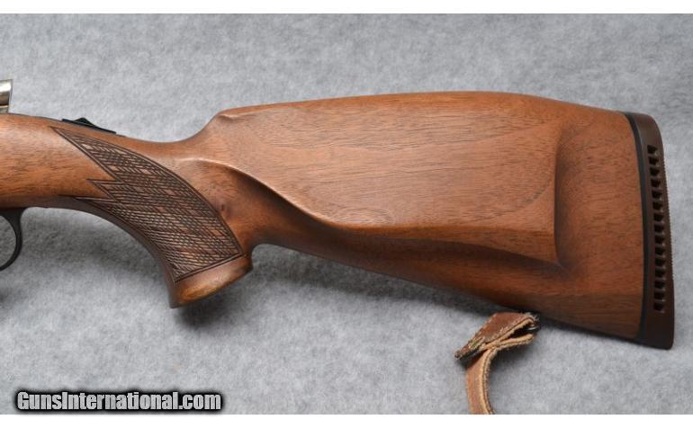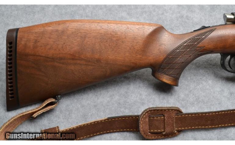 Description: SOLD Caliber Info: .308 Winchester. Metal Condition: Very little signs of wear. There is a spot of flaking on the front of the trigger guard. Wood Condition: A few small impressions on the rear of the stock. Bore Condition: Bright and shiny. Barrels: 24 inches. Triggers: Double-set trigger system. Stock Dimensions: 14 1/4" LOP (from front trigger). Butt Pad: 1/2" vented rubber pad. Weight: 7.8 pounds. Sights: 1 rings Extras: Includes Torel cowhide leather sling. Item Location: East Grand Forks, MN |