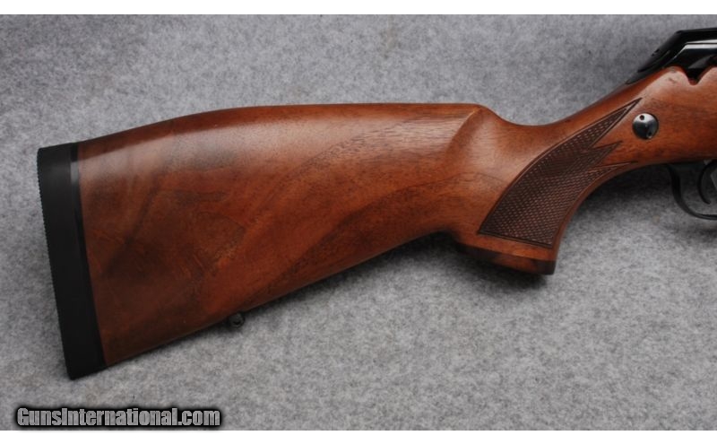 Description: This is a Voere Voehrenbach Titan rifle in .411 KDF. This is the Rocky Mountain Elk Foundation limited edition number 4 of 20. It has a 23 inch barrel with a 2 inch muzzle brake for a total of 25 inches. The stock has the Teutonic style butt and is checkered walnut with a contrasting grip cap and fore end cap. Condition is Excellent with a few handling marks. The bore is bright and shiny. This rifle is equipped with a Swarovski 1.5-4.5X20 scope with a Plex style reticle. There are ring marks on the scope tube. The scope and mounts are included in the price of the rifle and will not be removed and the rifle repriced without them. A set of CH Tool and Die reloading dies are also included. SOLD Caliber Info: .411 KDF Metal Condition: Excellent Wood Condition: Excellent Bore Condition: Bright and Shiny Barrels: 23" with a 2" Muzzle Brake Triggers: Single Stock: Checkered Walnut Pistol Grip Stock with Contasting Pistol Grip and End Caps Stock Dimensions: LOP 14 Butt Pad: Ruber Pad Sights: Swarovski 1.5-4.5X20 Scope Extras: Comes with a set of CH Tool and Die reloading dies Item Location: Reno, NV |