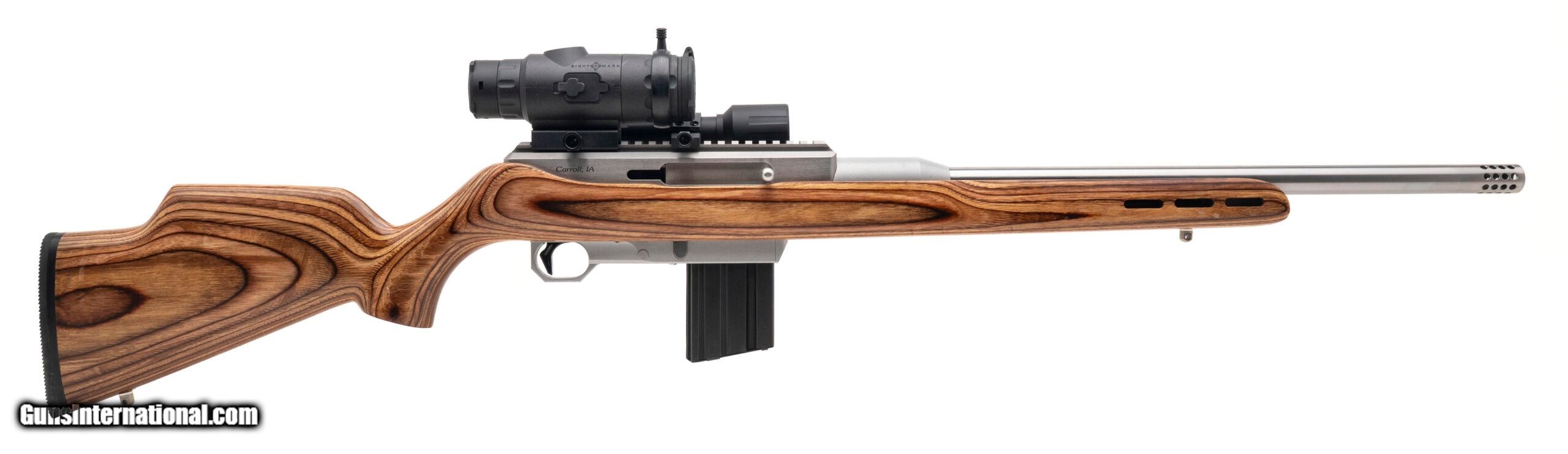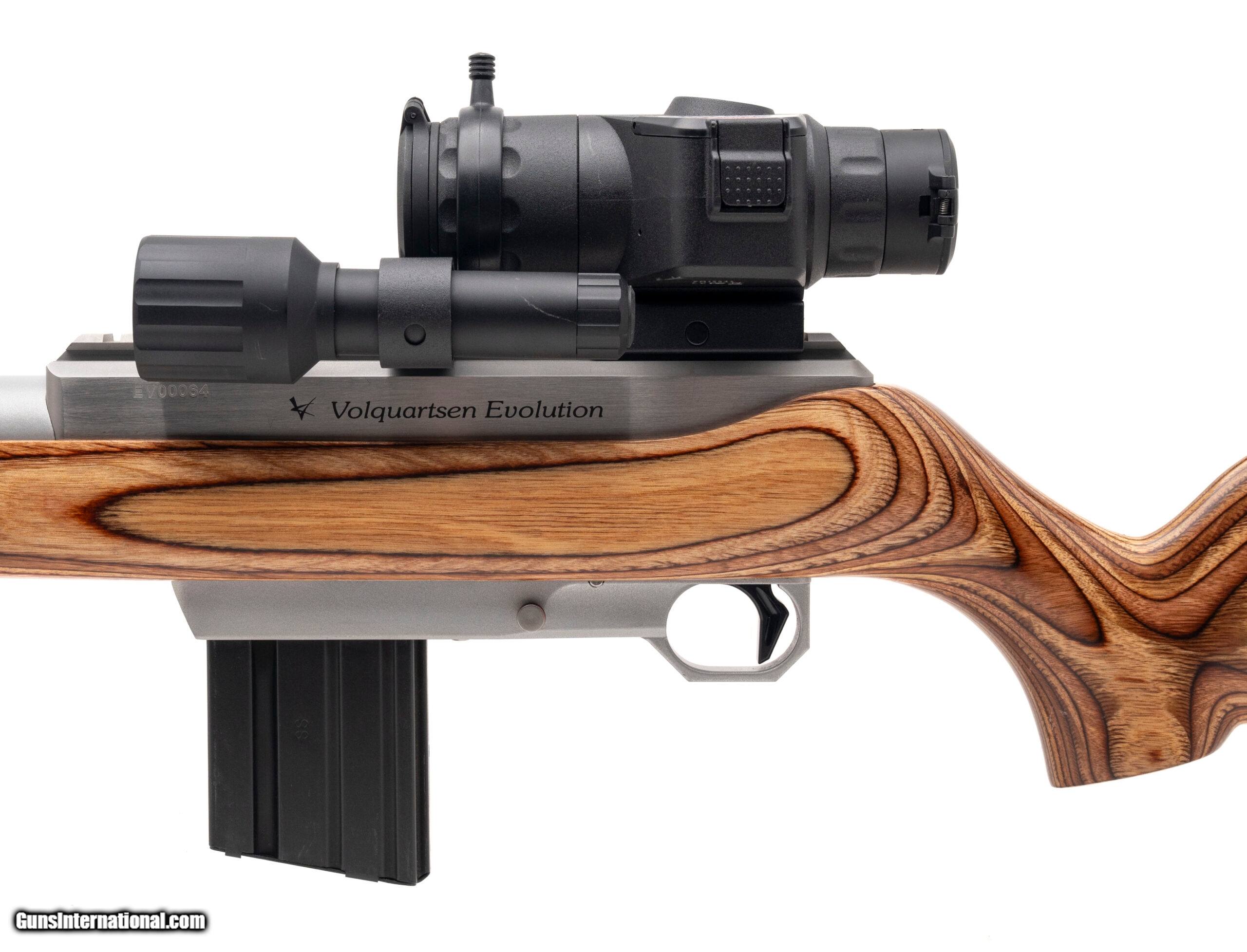 Description: "Sn: EV00064, modern production semi auto custom rifle chambered in 223 with a 20" stainless steel bull barrel with flush muzzle brake, custom machined stainless action and bottom metal with a volquartsen match trigger in a Laminated stock with a Sight Mark Wraith 4k night vision scope with IR light. Accepts standard AR magazines, action is butter smooth, bore and overall condition are excellent. SOLD |
