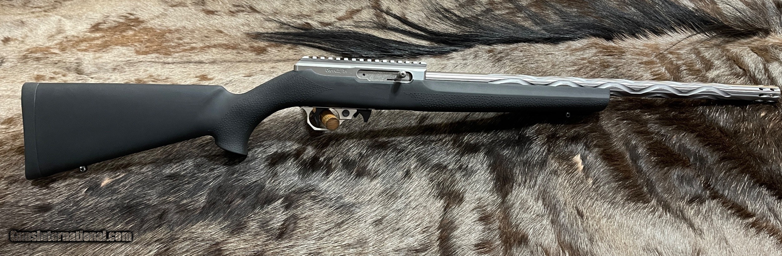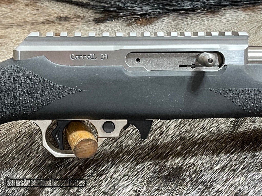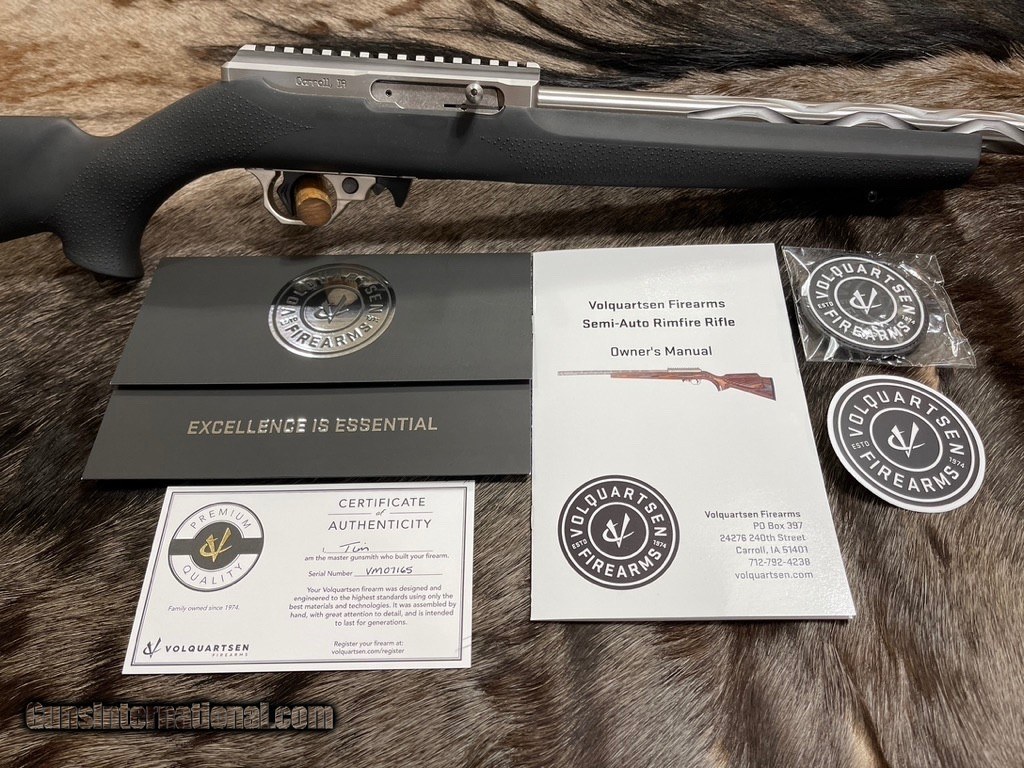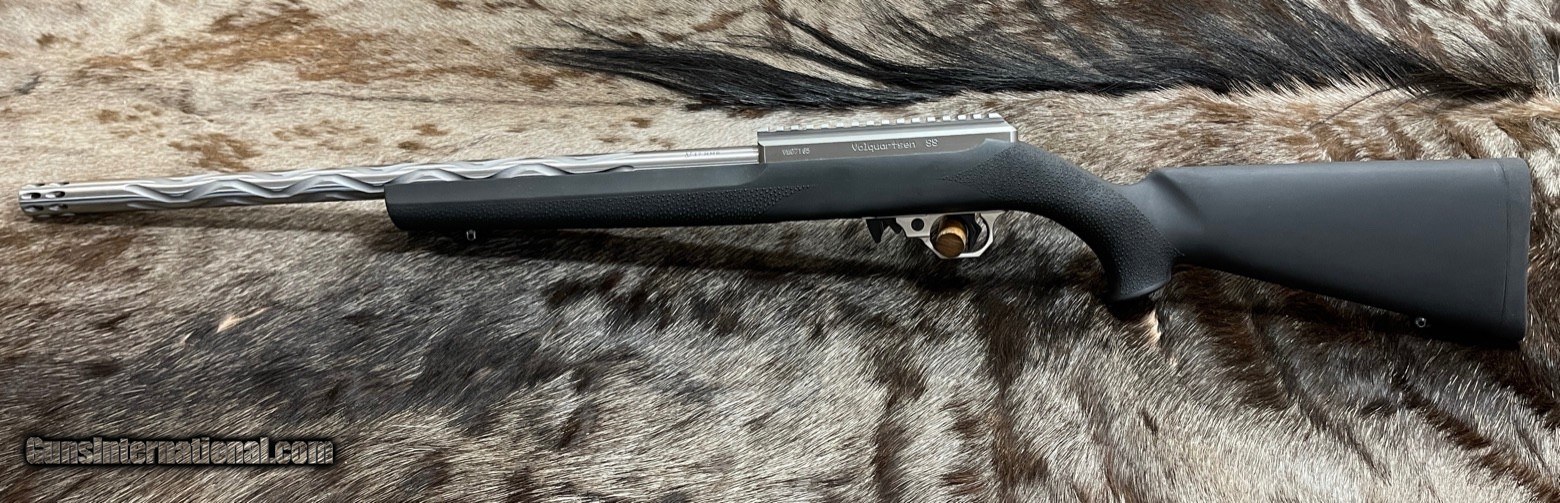 Description: NEW VOLQUARTSEN CUSTOM SF-5 RIFLE IN 17 HMR WITH HOGUE RUBBER STOCK - LAYAWAY AVAILABLE The SF-1 is one of the most unique rifles Volquartsen offers. The snake fluting is not a straight flute, nor a spiral flute but a hybrid of the two. Its increased surface area allows more heat dissipation than conventional straight flutes but at the same time is more rigid than spiral flutes. A Forward Blow Compensator is then installed to provide recoil free shooting. Its innovative design will also help direct noise downrange. It has always been Volquartsen's goal to achieve bolt action accuracy from a semi-auto and this begins with the barrel. The IF-5's stainless steel barrel features match bore and chamber tolerances. These dimensions are proprietary to Volquartsen and have evolved from over 25 years of testing. Digital gauging equipment ensures that each barrel meets Volquartsen's stringent criteria. Features Of This GREAT SEMI-AUTO Rifle Include: