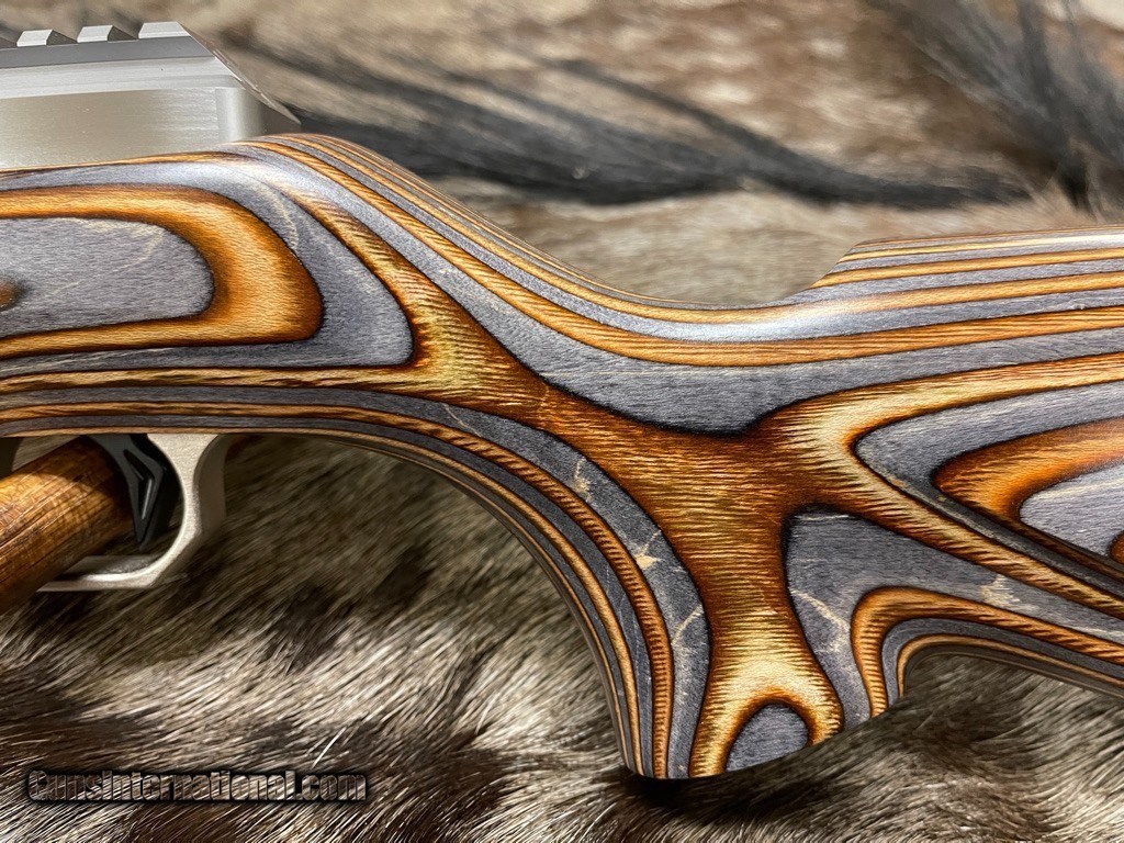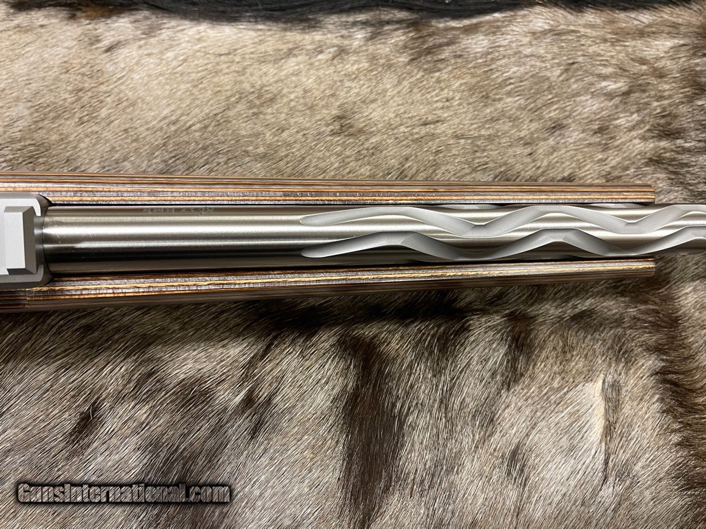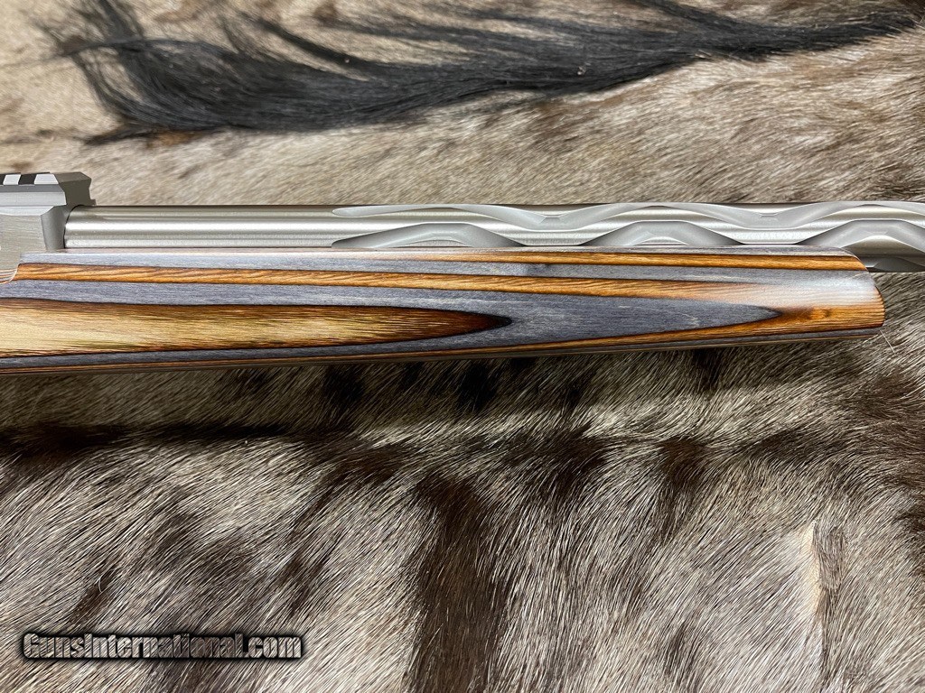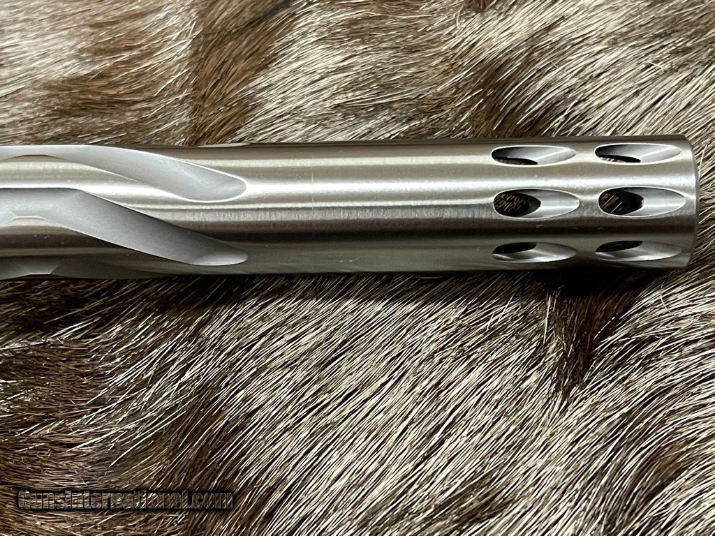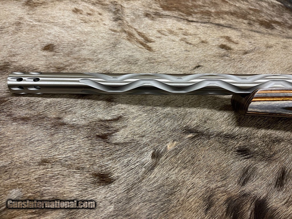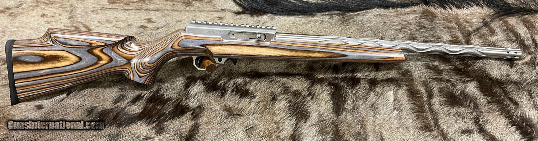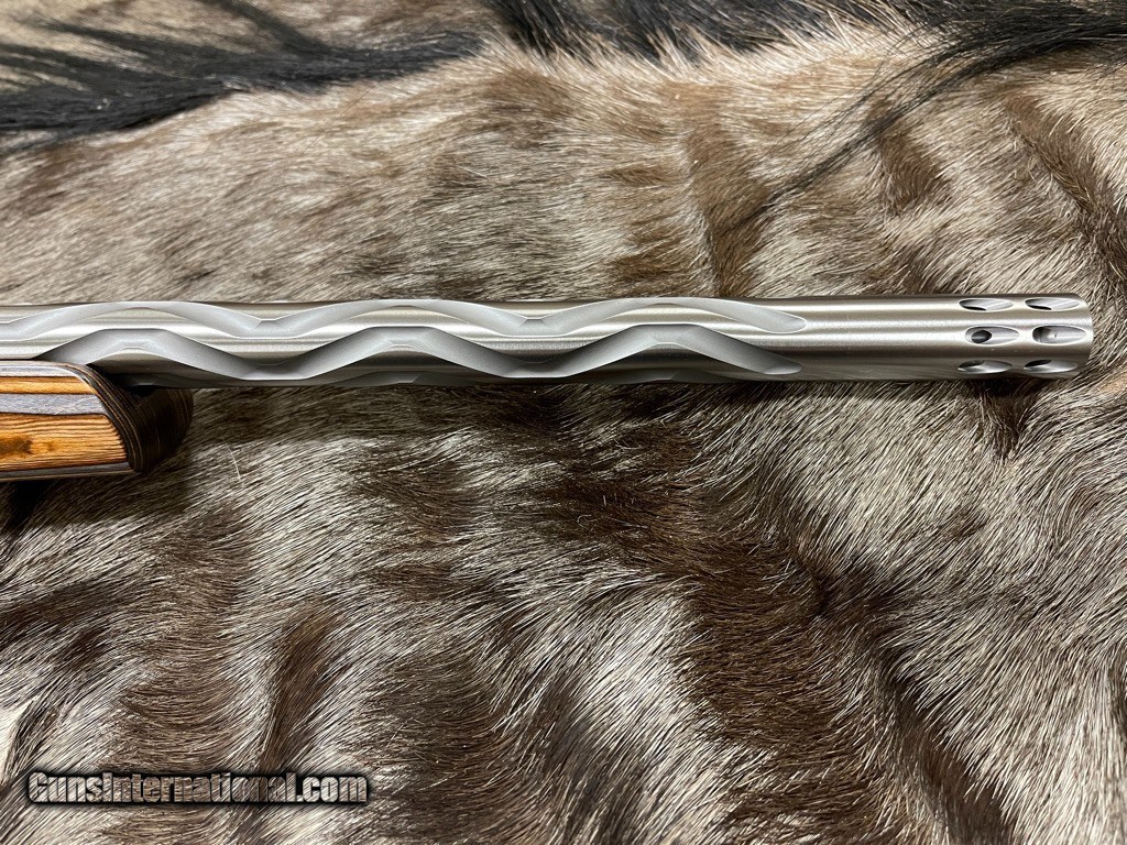 Description: NEW VOLQUARTSEN CUSTOM SF-1 RIFLE IN 17 HMR WITH BROWN LAMINATED SPORTER STOCK - LAYAWAY AVAILABLE UNLIKE OTHER SELLERS, JD OUTFITTERS DOES NOT DROP-SHIP FROM A THIRD-PARTY. THE RIFLE YOU SEE IS IN INVENTORY AND IS READY TO SHIP! The SF-1 is one of the most unique rifles Volquartsen offers. The snake fluting is not a straight flute, nor a spiral flute but a hybrid of the two. Its increased surface area allows more heat dissipation than conventional straight flutes but at the same time is more rigid than spiral flutes. A Forward Blow Compensator is then installed to provide recoil free shooting. Its innovative design will also help direct noise downrange. It has always been Volquartsen's goal to achieve bolt action accuracy from a semi-auto and this begins with the barrel. The IF-5's stainless steel barrel features match bore and chamber tolerances. These dimensions are proprietary to Volquartsen and have evolved from over 25 years of testing. Digital gauging equipment ensures that each barrel meets Volquartsen's stringent criteria. Features Of This GREAT SEMI-AUTO Rifle Include: