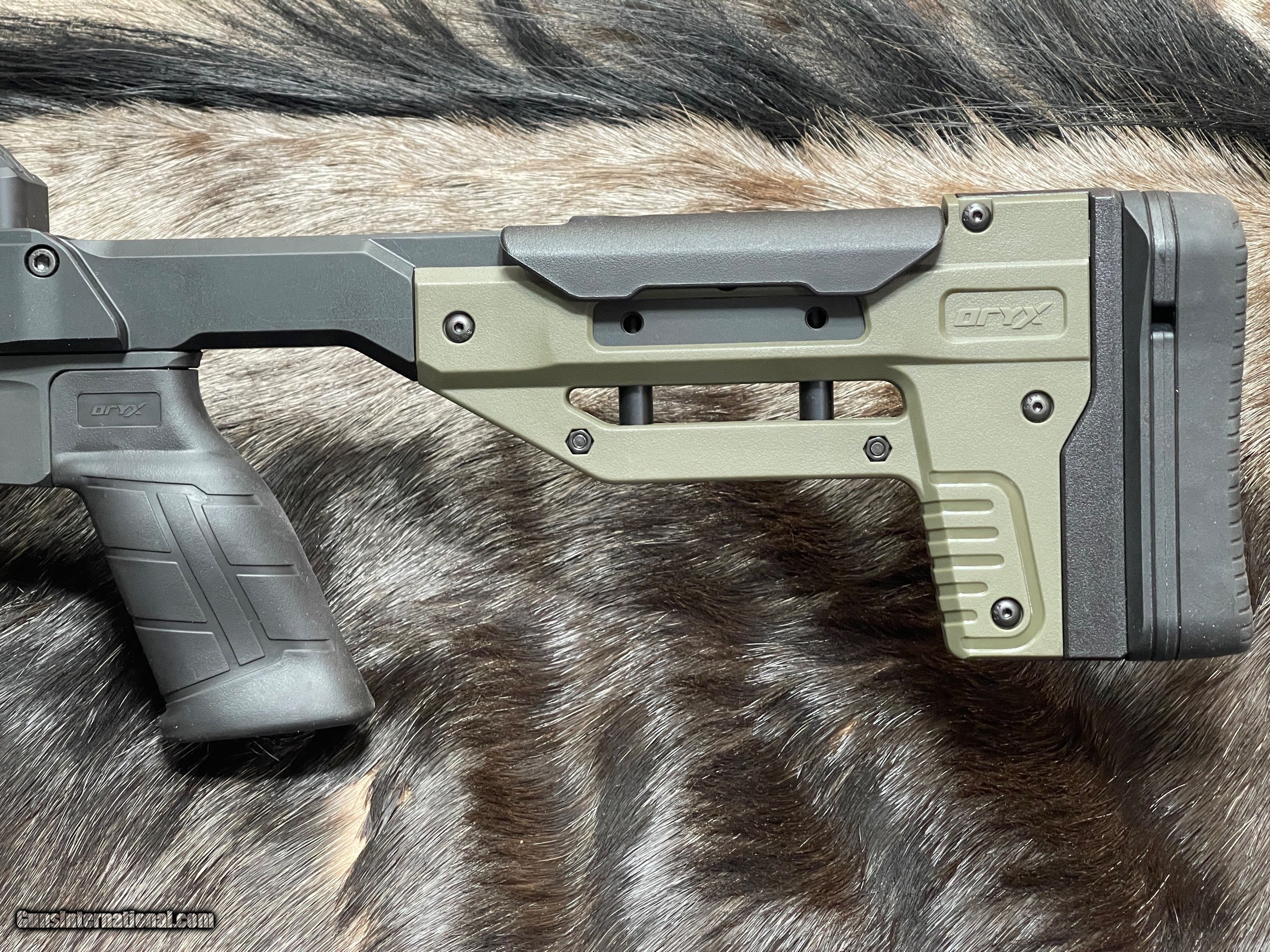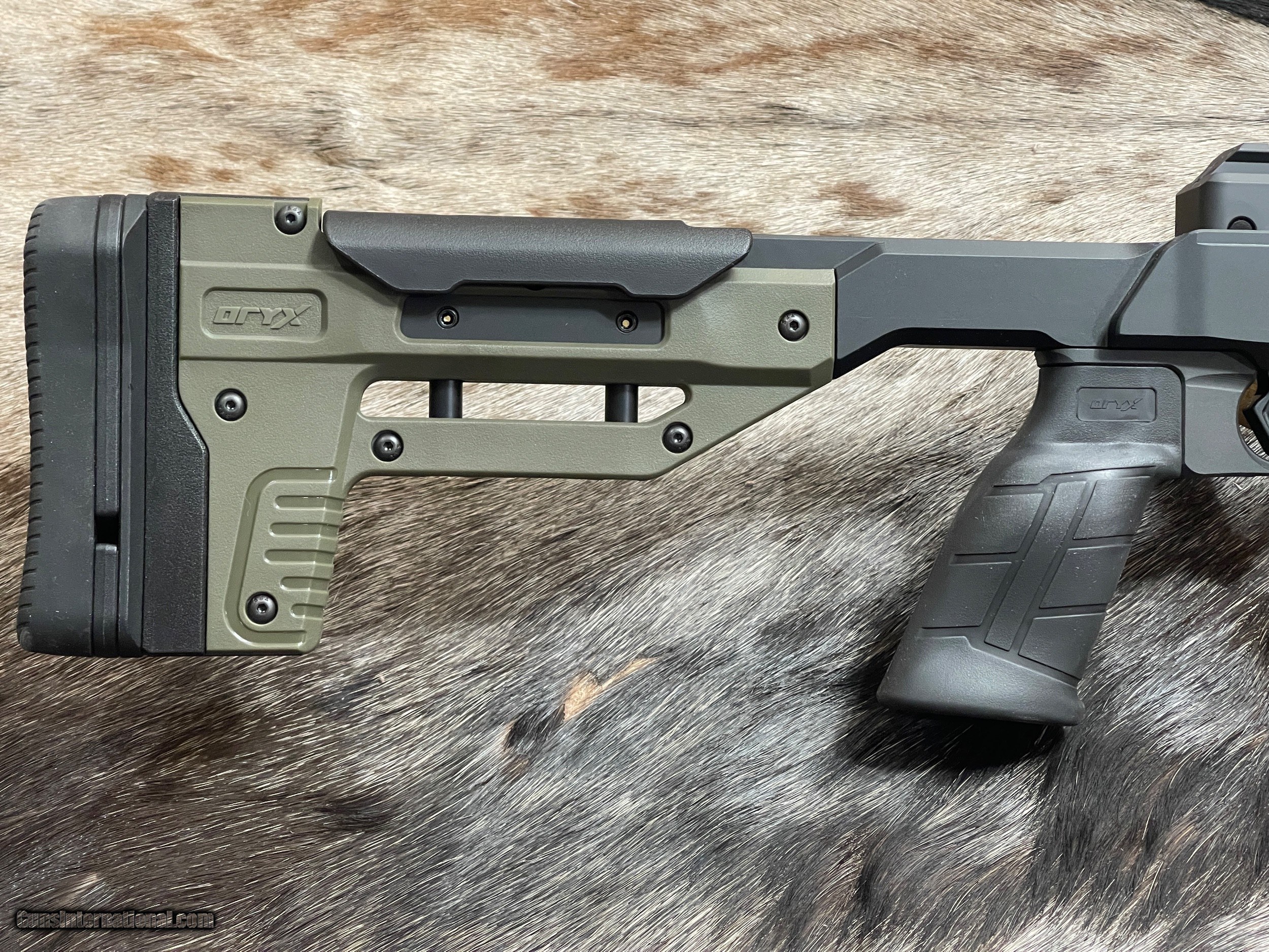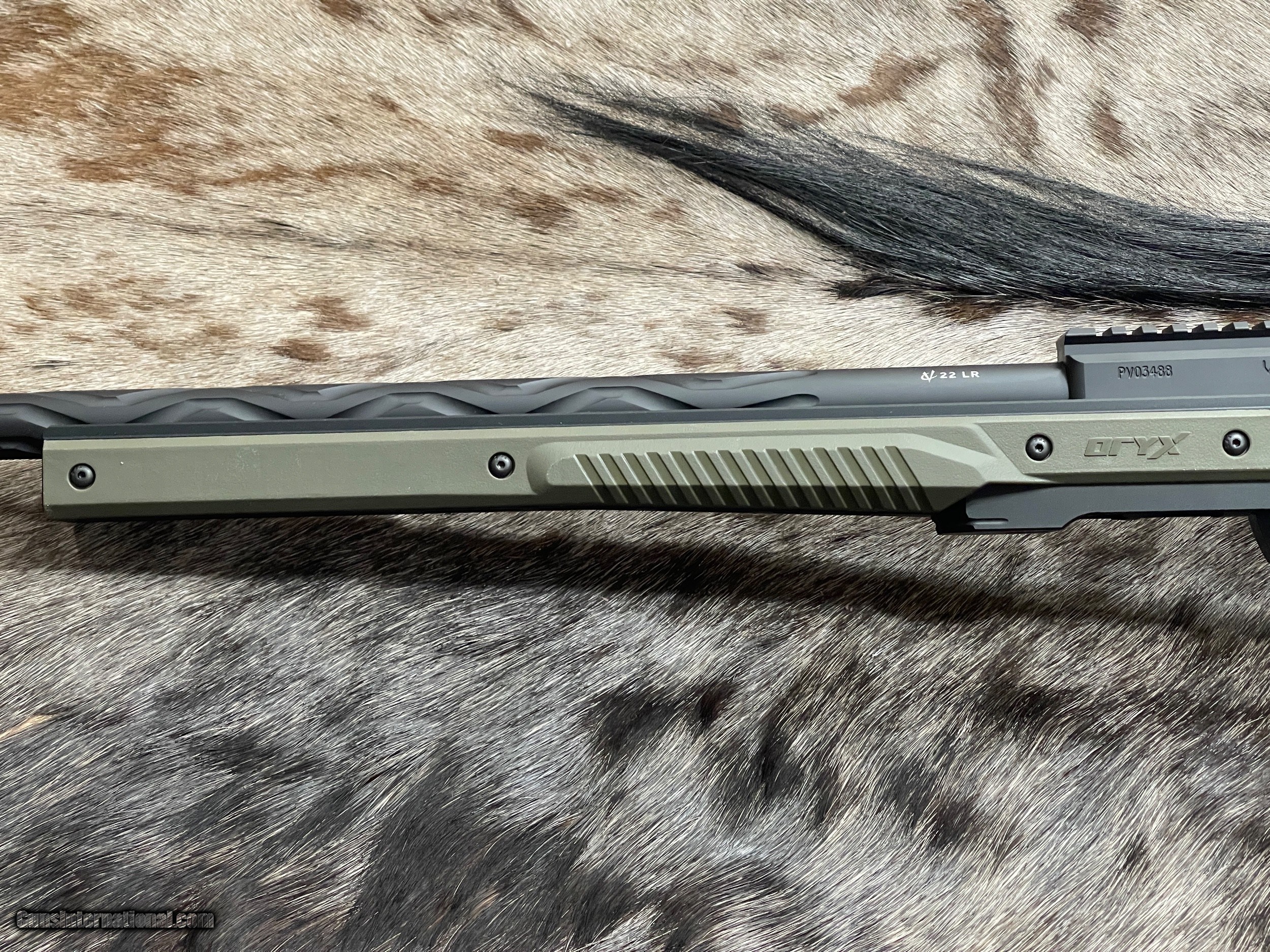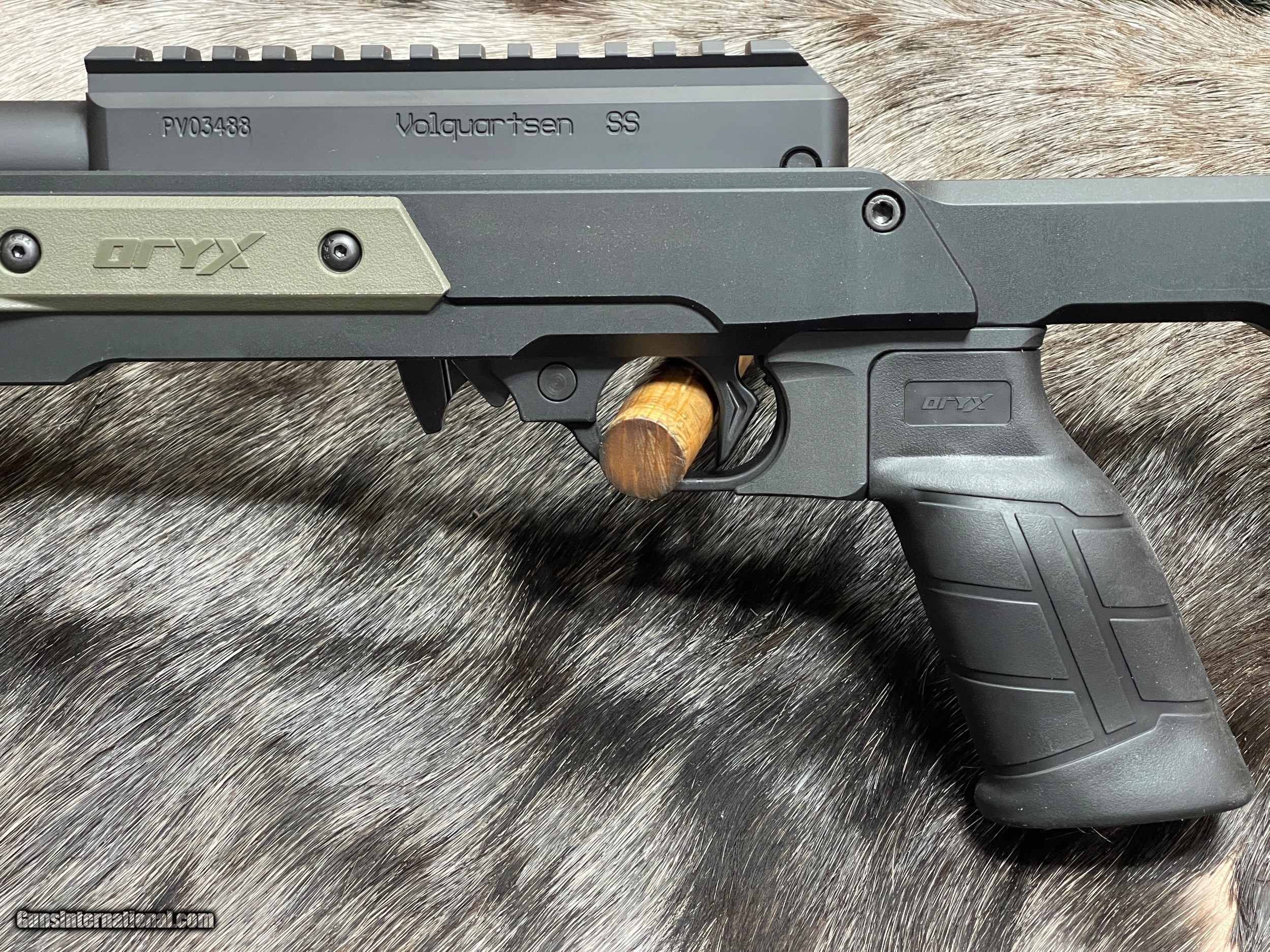 Description: NEW VOLQUARTSEN CUSTOM VF-ORYX RIFLE IN 22 LR WITH MDT ALUMINUM CHASSIS The new VF-ORYZ is the ultimate precision semi-auto 22 LR rifle. The VF-ORYX is set into the ORYX Chassis from MDT - perfect when shooting from the bench, a bipod, or a prone position! The snake fluting is not a straight flute, nor a spiral flute but a hybrid of the two. Its increased surface area allows more heat dissipation than conventional straight flutes but at the same time is more rigid than spiral flutes. A Forward Blow Compensator is then installed to provide recoil free shooting. Its innovative design will also help direct noise downrange. It has always been Volquartsen's goal to achieve bolt action accuracy from a semi-auto and this begins with the barrel. The VF-ORYX's stainless steel barrel features match bore and chamber tolerances. These dimensions are proprietary to Volquartsen and have evolved from over 25 years of testing. Digital gauging equipment ensures that each barrel meets Volquartsen's stringent criteria. Features Of This GREAT SEMI-AUTO Rifle Include: