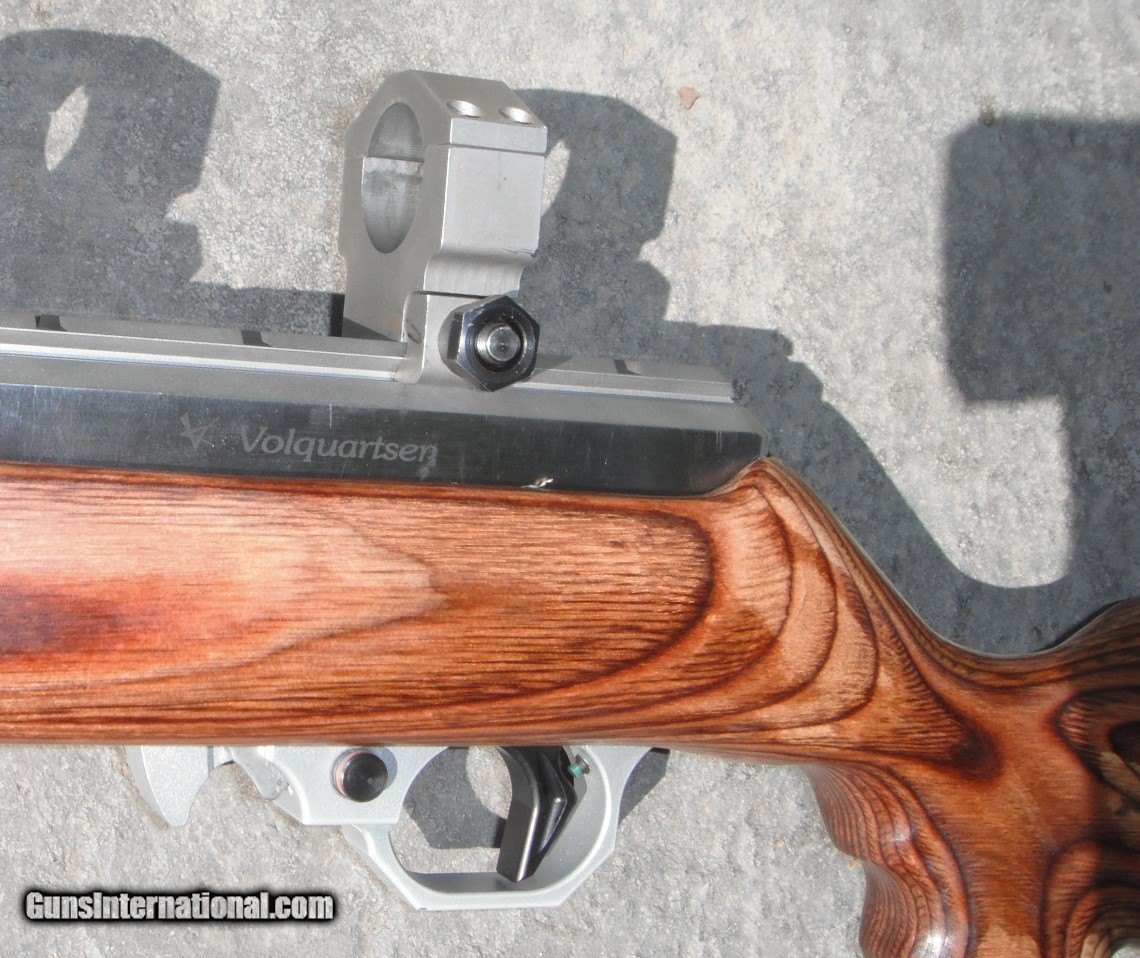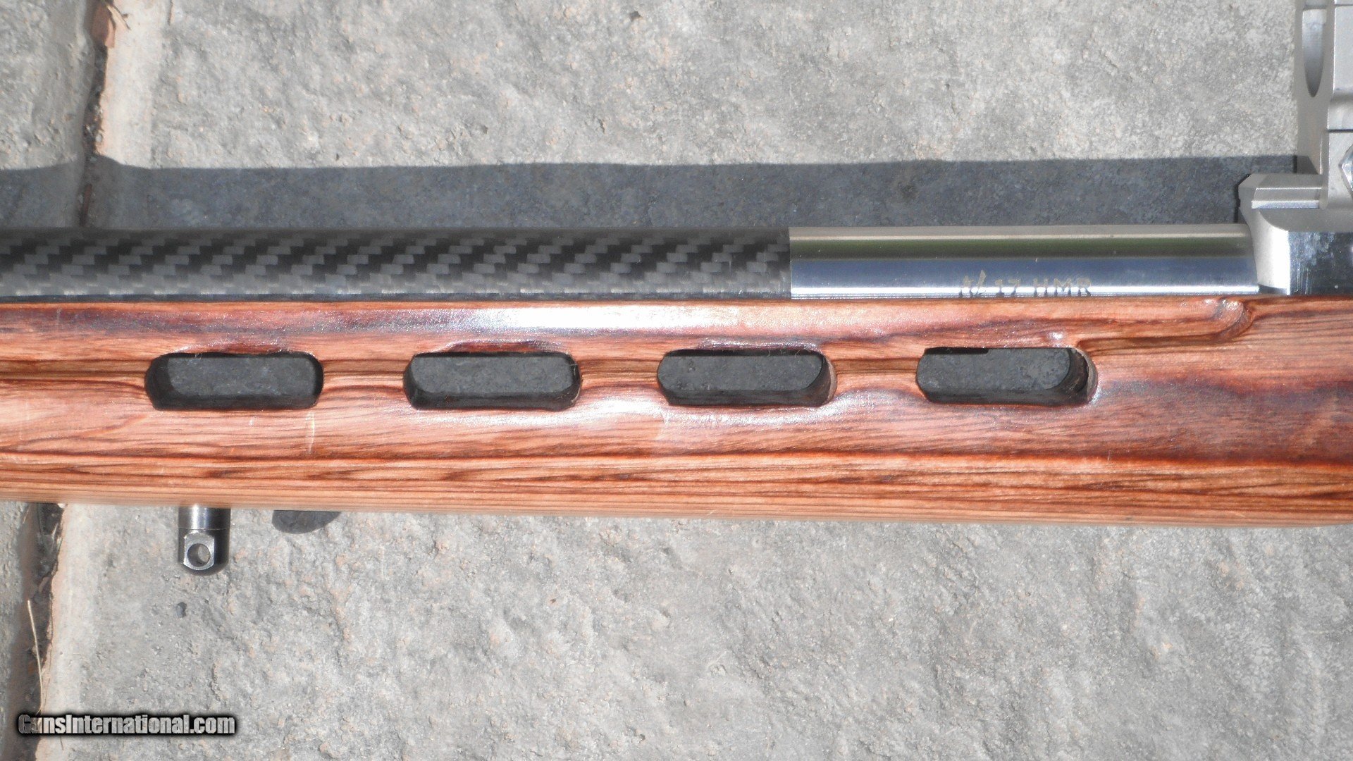 Description: For sale is a USED Volquartsen 17 HMR model Carrol,1A with customized laminated stock and new 17" ultralight carbon fiber barrel. Barrel threaded 1/2 - 28 for mussle brake. Stock modifications and barrel change to carbon fiber place the center of gravity, or balance point at the magazine release for ease of handling in the field. Pencil marks visible on the stock will be removed. Purchase includes the Volquartsen scope mounts pictured along with one rotary magazine. The rifle uses the standard Ruger rotaru magazine. Sling swivels are detachablel leaving the stock without protrusion. I also have the heavy stainless bull barrel original to the gun available for an additional $200. The BSA Sweet 17 scope is also available for an additional $100. Buyer is to pay for actual USPS Priority Mail shipping and insurance. Payment to me must be via USPS Money Order. I know it costs a bit more, but I recomment that the buyer use Priority mail for tracking purposes. Please email all questions before purchasing. I will respond as quickly as practicable. SOLD Rifle Caliber: .17 HMR Manufacturer: Volquartsen Model: Carrol, 1A Barrel Length: 17 Condition: excellent Metal Condition: 99% Wood Condition: refinished Bore Condition: as new |