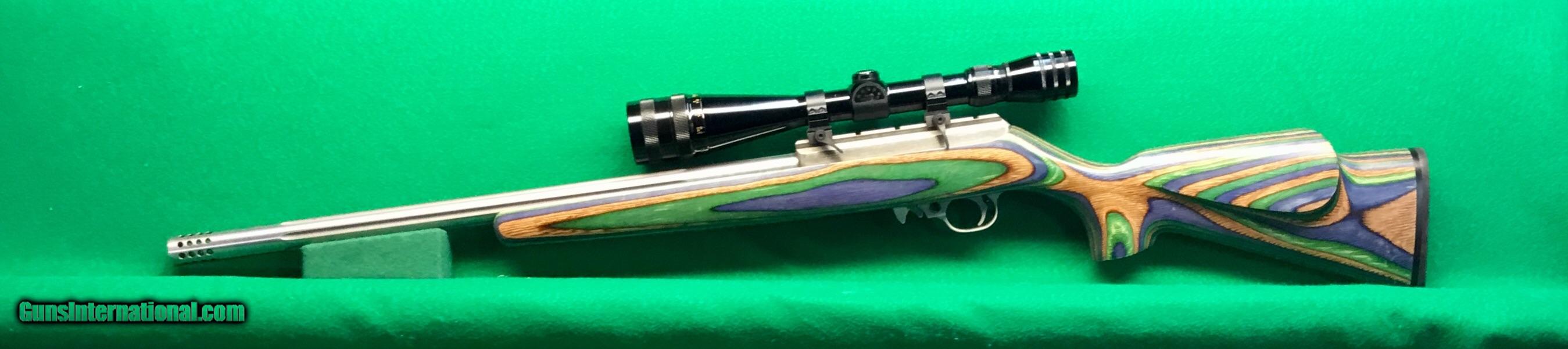 Description: Reduced to $1098 // Early Volquartsen in 22 Magnum, 20 inch stainless fluted barrel with muzzle brake. Laminated stock with some marks from bench rest under forearm. Uses readily available Ruger clips, one included. Very accurate with included Redfield 4-12X AO scope. $1098 plus $35 insured shipping with scope. Deduct $125 if scope not needed. Lay-a-way available, no credit cards and no trades. Check out my other listings. SOLD |