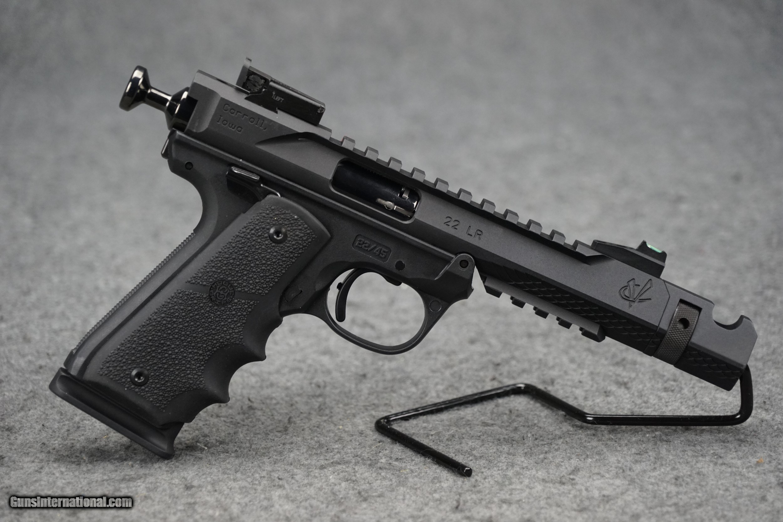 Description: The Black Mamba combines features from our Scorpion 22 LR Target Pistol along with the push button takedown functionality of the Ruger MK IV platform. It all starts with our LLV Competition Upper. Available in a 4.5” or 6” barrel length, it features a stainless steel barrel (with stainless steel breech) housed in an aluminum shroud. This design provides match grade accuracy in a lightweight package. Integral Picatinny rail on top and bottom is standard. Three colors to choose from: black, FDE, and OD green. Each Black Mamba features a threaded muzzle with our single-port comp installed. Our Competition Bolt with DLC Coating is ensures smooth operation and functioning whether its a day of plinking at the range or competing at the highest level. The Black Mamba build utilizes a polymer Ruger MK IV 22/45 frame that has been retrofitted with our Accurizing Kit providing a crisp, clean 2.25 lb trigger pull. The frame has also been fitted with our magazine release that, when used in conjunction with our magazine base pads (included standard), eliminates feeding issues. This is accomplished by raising the magazine's position in the frame, allowing the bolt to more positively engage each round as it feeds. Competition ready in an easy takedown configuration - the Black Mamba is everything you are looking for and more whether you are a backyard plinker, looking to win your local matches, or hitting the national competition scene. 4.5 inches Hogue Grips Compensator Black Anodized Aluminum Single-Port Fiber Optic Front and Target Rear Black Anodized Aluminum Approximate weight 1lb 12oz Magazine Capacity 10 Muzzle Threads 1/2x28 Overall Length 11.0" Barrel Length 4.5" Overall Barrel Length 5.625" SOLD Handgun Caliber: .22 Long Rifle Manufacturer: Volquartsen Model: Black Mamba Barrel Length: 4.5" Barrel Condition: BRAND NEW |