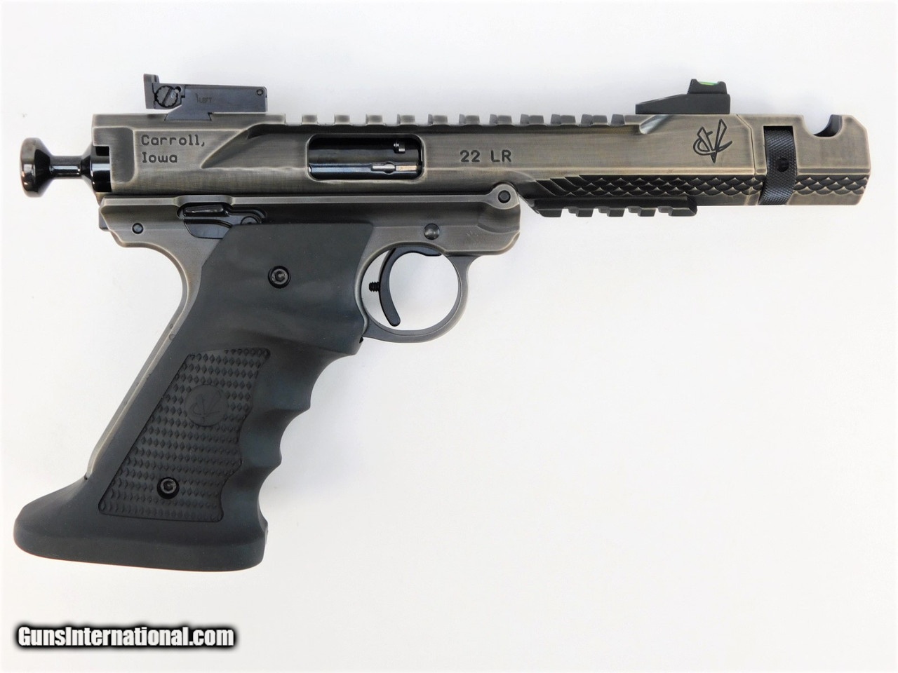 Description: Manufacturer: Volquartsen Firearms Model: Battleworn Mamba-TF SKU: VF4H-0025 Caliber: .22 LR Capacity: 10 Rounds Barrel Length: 4.5" Stainless Steel Housed in an Aluminum Shroud, Threaded Muzzle 1/2x28 Compensator: Black Anodized Aluminum, Single Port LLV Competition Upper Overall Length: 11" Picatinny Rail Finish: Battleworn Ruger MK IV Standard Aluminum Frame Grips: Volthane Grips Sights: Fiber Optic Front and Target Rear Weight: 2 lbs All items are factory new in box unless otherwise stated. Based on the information available to us, the above specifications describe this item to the best of our knowledge. For further information, please contact or visit the manufacturer's . SOLD |