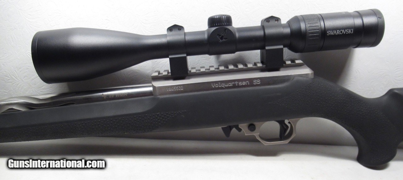 VOLQUARTSEN CUSTOM STAINLESS STEEL 22 MAGNUM RIFLE from COLLECTING TEXAS – SWAROVSKI SCOPE – 2 MAGAZINES – ORIGINAL FACTORY CASE