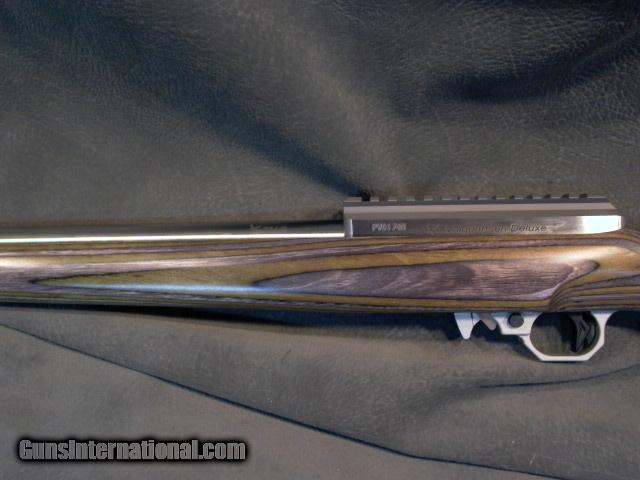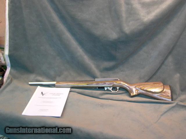 Description: Volquartsen Deluxe 22LR 18" stainless barrel,olive green laminated stock,new in the factory case with papers. SOLD |