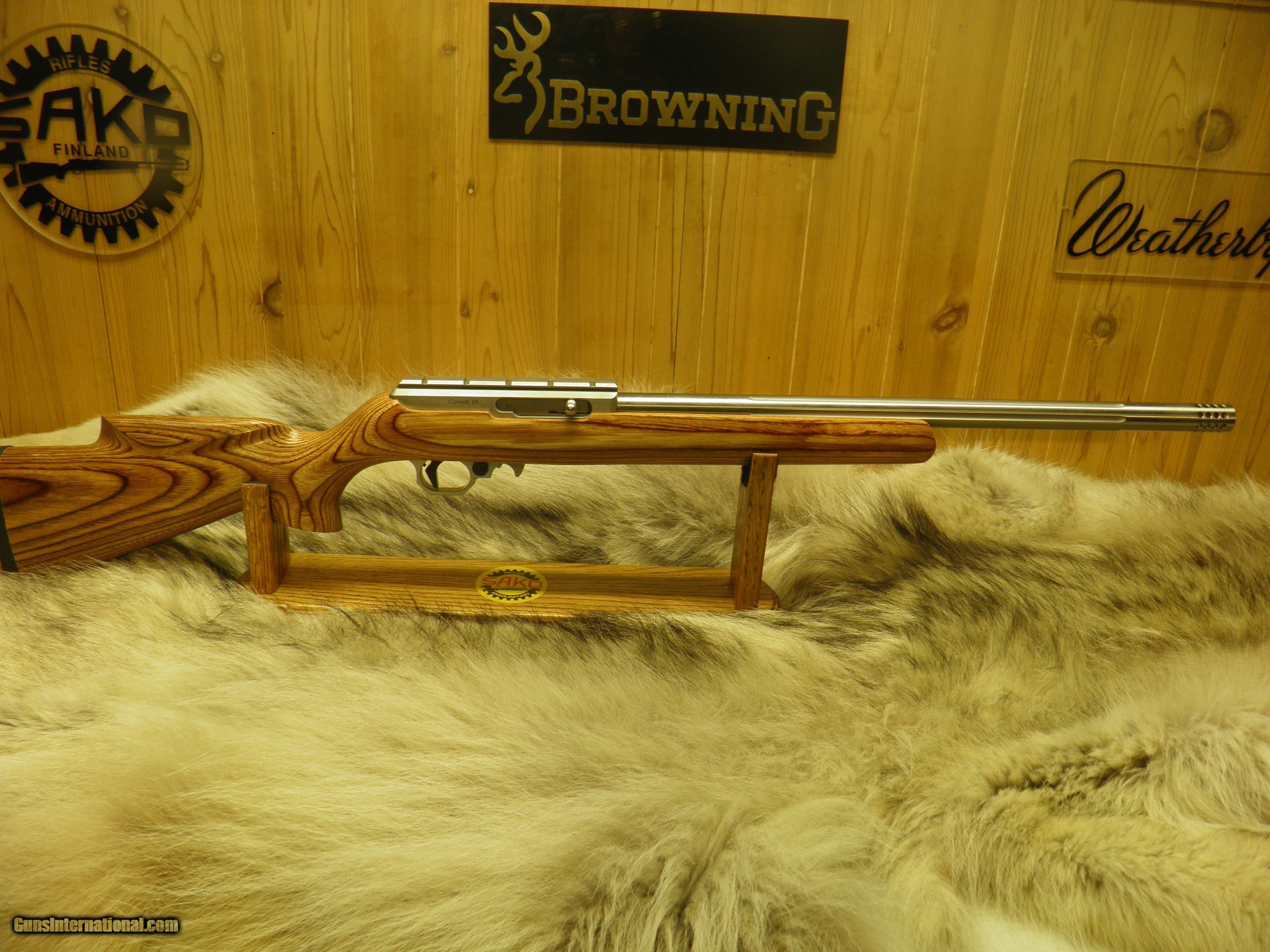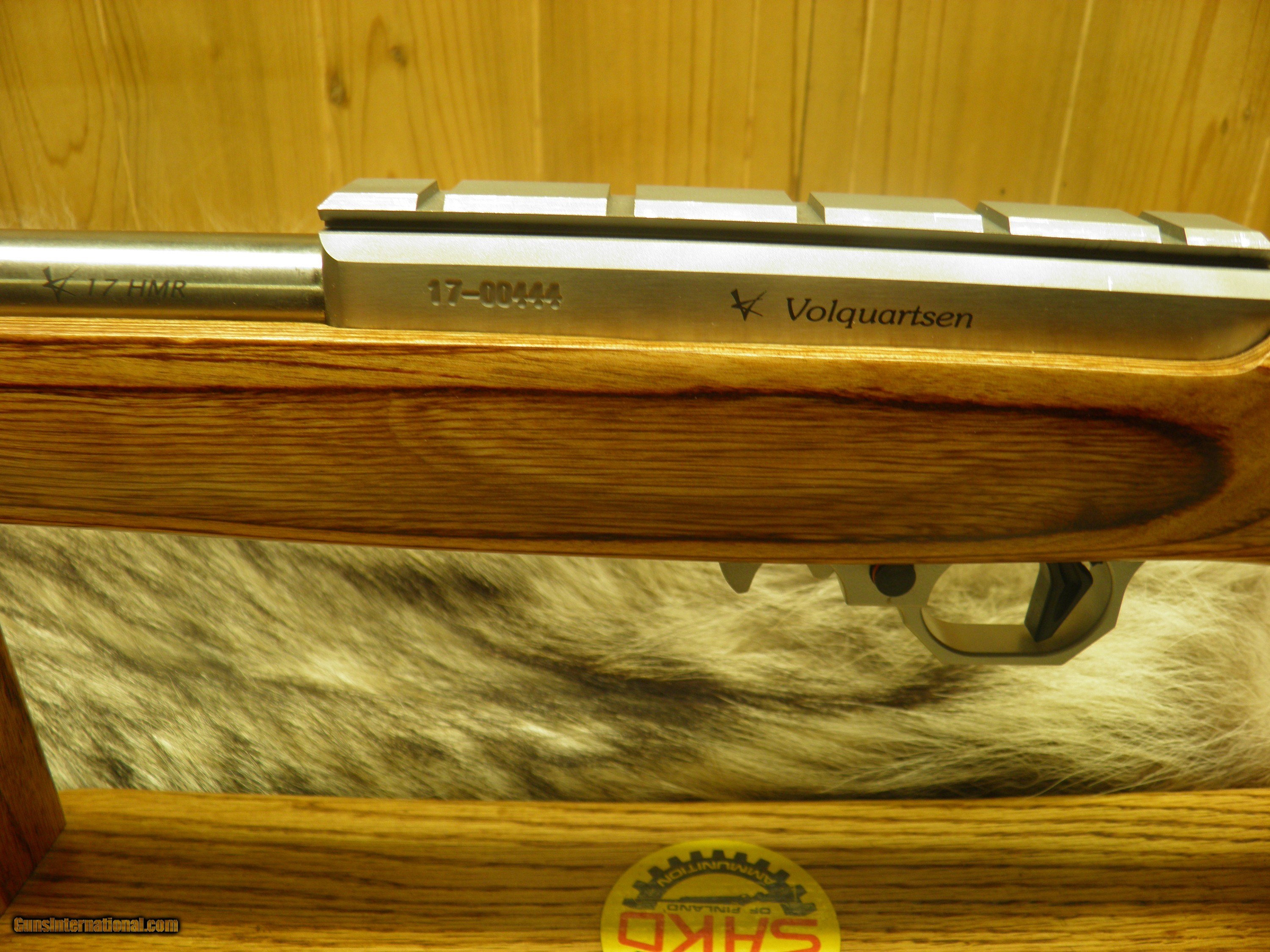 Description: VOLQUARTSEN DELUXE STAINLESS CAL: 17 HMR , 20" STAINLESS BULL BARREL WITH STRAIGHT FLUTES, 32 HOLE STAINLESS COMP, STAINLESS RECEIVER WITH INTEGRAL PICATINNY RAIL, MATCH GRADE TRIGGER WITH TG2000 TRIGGER GUARD, LAMINATED SPORTER STOCK FINISHED IN GLOSS . GUN IS 100% NEW AND UNFIRED IN FACTORY BOX! SOLD |