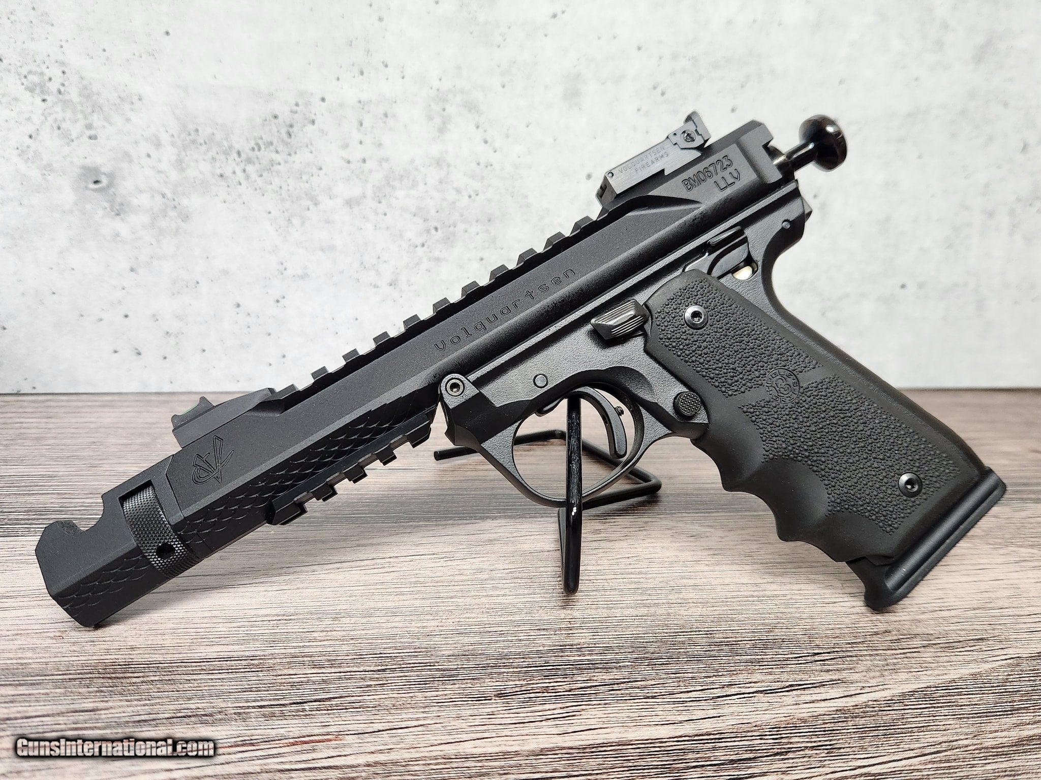 Description: Guns Listing ID: 1108787 Volquartsen Black Mamba .22lr 4.5\" 10rd 5 Total Mags Description: USED- Excellent Condition, 5 total magazines, original case. The Black Mamba combines features from our Scorpion 22 LR Target Pistol along with the push button takedown functionality of the Ruger MK IV platform. It all starts with our LLV Competition Upper. Available in a 4.5\" or 6\" barrel length, it features a stainless steel barrel (with stainless steel breech) housed in an aluminum shroud. This design provides match grade accuracy in a lightweight package. Three colors to choose from: black, FDE, and OD green. Each Black Mamba features a threaded muzzle with our single-port comp installed. Our Competition Bolt with DLC Coating ensures smooth operation and functioning whether it‚‚s a day of plinking at the range or competing at the highest level. The Black Mamba build utilizes a polymer Ruger MK IV 22/45 frame that has been retrofitted with our Accurizing Kit providing a crisp, clean 2.25 lb trigger pull. The frame has also been fitted with our magazine release that, when used in conjunction with our magazine base pads (included standard), eliminates feeding issues. This is accomplished by raising the magazine‚‚s position in the frame, allowing the bolt to more positively engage each round as it feeds. Competition ready in an easy takedown configuration - the Black Mamba is everything you are looking for and more whether you are a backyard plinker, looking to win your local matches, or hitting the national competition scene. Specs Product Number VF4M-0026 Approximate weight 1lb 12oz UPC 810162018368 Overall Length 11.0\" Magazine Capacity 10 Trigger Weight 2.25lb Twist Rate 1:16 Muzzle Threads Yes Configuration Length 4.5 inches Grips Choice Hogue Grips Grips Color Black Threads/Comp Choice: Compensator Threads/Comp Finish: Black Anodized Aluminum Threads/Comp Style: Single-Port Sights: Fiber Optic Front and Target Rear Finish: Black Anodized Aluminum Competition Bolt Finish: Black (DL SOLD Manufacturer: VOLQUARTSEN Model: Firearms Black Mamba Caliber Info: .22 LR Condition: Used - Non-Certified Barrels: 4.5 BARREL Finish: BLACK ANODIZED |