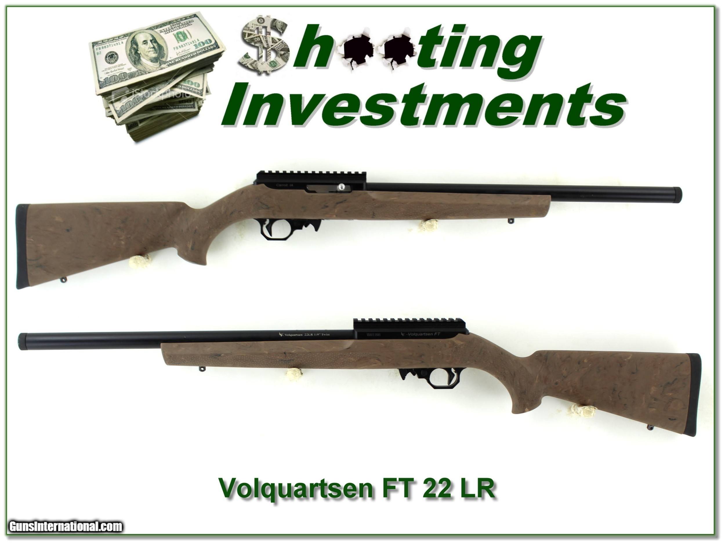 Description: This is a Volquartsen FT 22. It has a 18in heavy barrel with 1 in 9 twist and it threaded with thread protector. I only find a couple marks. It has a FDE Hogue stock and comes with rail as seen. It will make an accurate rimfire! I am selling this one on consignment and as such lay-a-way can’t be used. It does of course have the standard 3-day inspection. Shipping and insurance is $49. Please email me with any questions or larger pictures. (Consign your quality firearms with Shooting Investments for only 12%! Let me know if you have any you would like to sell!) 22-0278 Payment: Payment is by Money Order, Cashiers Check or Personal Check. I can now also accept Credit Cards (MasterCard, Visa, Discover & American Express) with a 3% convenience fee. Shipping: The shipping charge will be listed in each description. It is $49 for most long guns. Some heavy guns, over 48in boxes or those insured for over $2000 will be higher. Shipments to Alaska and Hawaii are higher because air shipment is required. Most firearms are shipped on Tuesday and Thursday and usually in 5 days of receipt of payment. We package all shipments carefully and insure them. Optics are shipped Priority Mail and most other non-firearm shipments are shipped First Class. Returns: Our return policy is simple. If for any reason you are not pleased with your purchase, you may return your item for a full refund of purchase price. Ammunition cannot be returned. It is important to us that you are happy. Guns cannot be fired or dissembled before returning them and they must be returned in the same condition as received. Notification of a return must occur with-in 3 days of receipt at your dealer. Shipping, convenience and dealer fees are not refundable and are the responsibility of the buyer. Lay-a-way: If needed, we offer a 60 day lay-a-way option on most firearms. It is 1/3 now, 1/3 in 30 days and 1/3 in 60 days. Lay-a-way firearm sales are final and if not completed the first payment cannot be returned. Consigning your firearms with Shooting Investments: We will help you get top dollar for your firearms. While most local guns shops charge 20% or more, our fee is only 12% with a minimum of $75. At your local gun shop it might take months to sell. Selling on-line provides instant access to thousands of interested buyers. You won’t find any other on-line dealer willing to sell your firearms for only 12% or listing every gun on 3 separate s. Selling through an House typically costs the seller 15% and the buyer an addition 15% (so 30%) and you have to wait several months to sell and longer to receive funds. If properly priced, we will sell your firearms in a few weeks. Send us an email or give us a call and we’ll explain how easy it is for you to get top dollar. Trading: Trading for use is really just buying your gun to re-sell. If you have a gun you want to trade, please email a picture and we will let you know what we can give or it. You will always get more if we sell it for you on consignment. Help for California Buyers: We are happy to ship to California. It is the buyer’s responsibility to make sure any item you buy is legal in your state. We are also happy to help with your purchase of a firearm from someone other than us. If you see a gun you would like to buy but the seller can’t or won’t ship to California they can ship to use and we’ll then ship it to your California dealer. The cost for this service is only $30 + shipping. Let us know if we can help! SOLD |