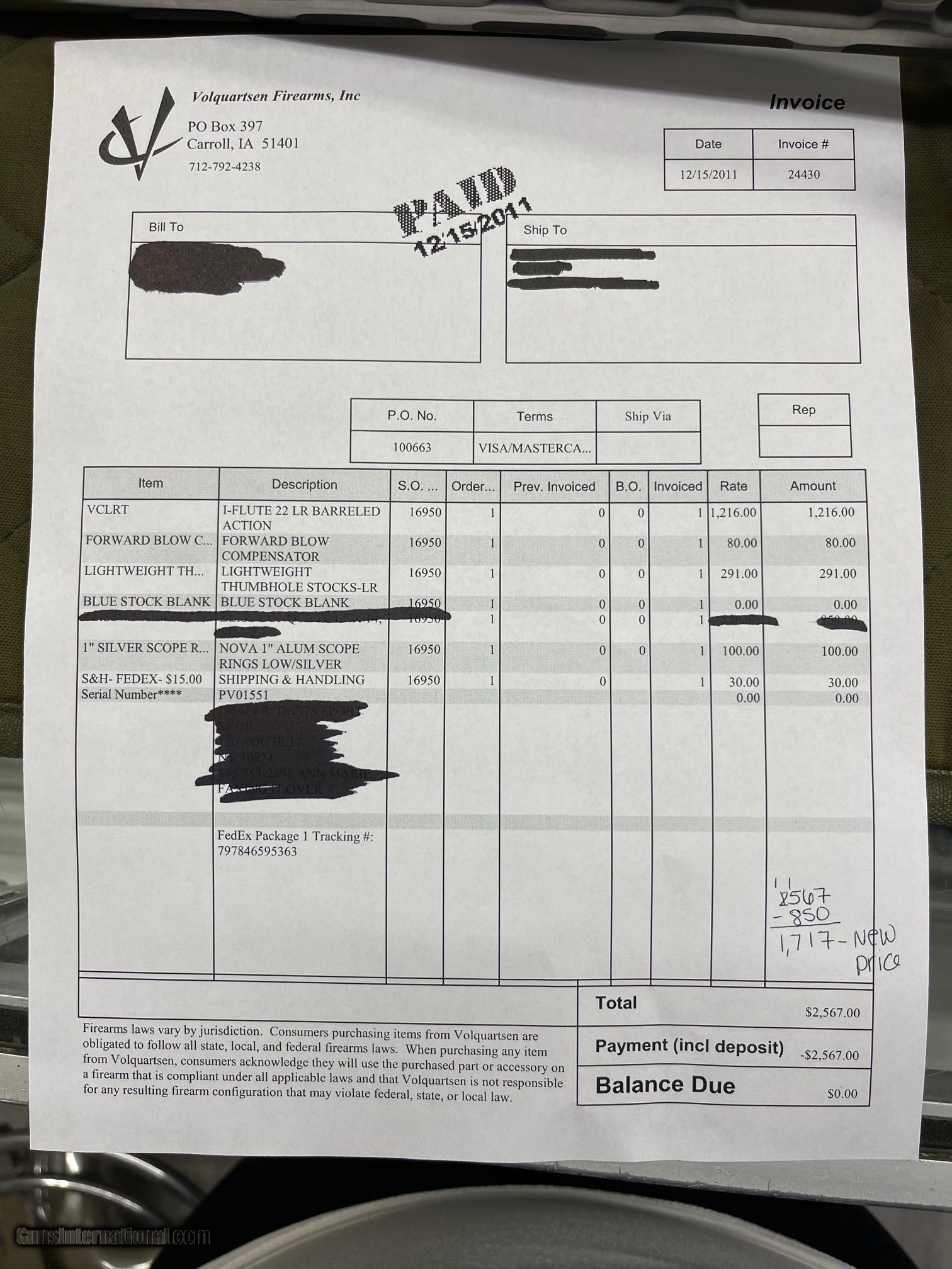 Description: Guns Listing ID: 892980 Firearm is In great shape, has a few nics on the stock but other then that, its great! All is pictured, a lot of custom work was done to this firearm, picture of original invoice to show what was done. New Price on this firearm to build is $1717.00 - we are selling for 1399.99 SOLD Manufacturer: VOLQUARTSEN Model: SA Custom Caliber Info: .22 CAL Condition: Used - Non-Certified Barrels: 22 BARREL Finish: STAINLESS |