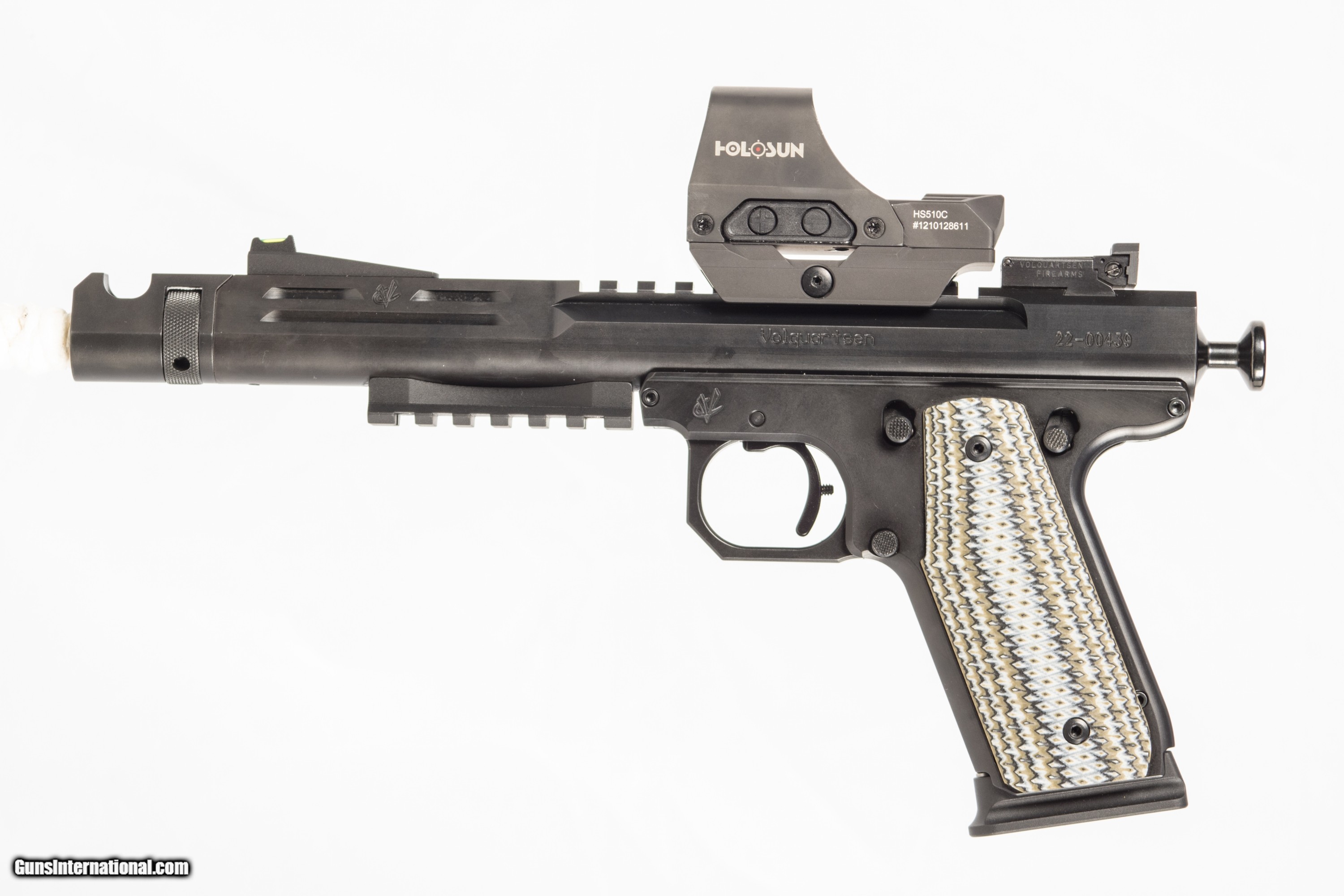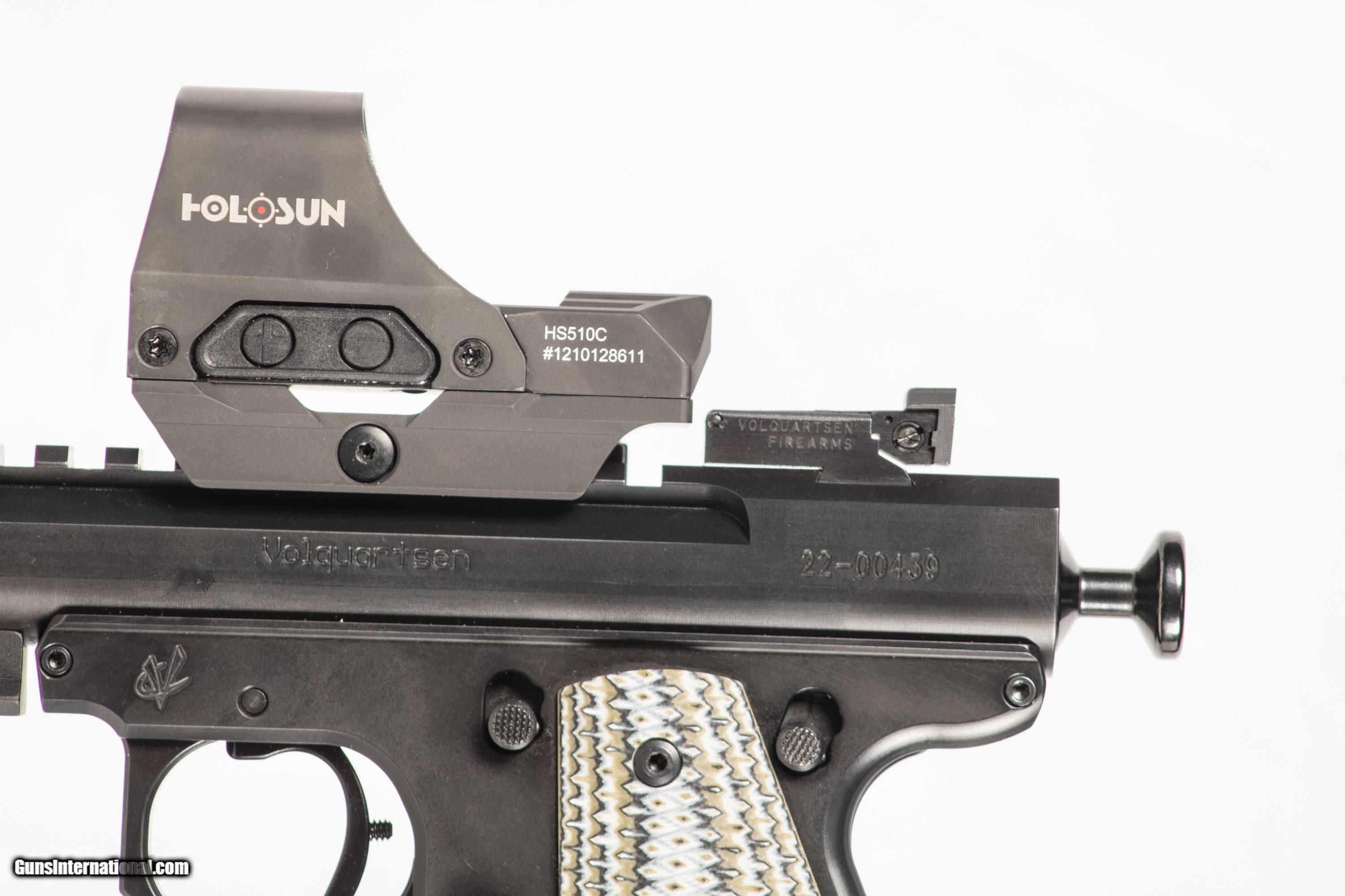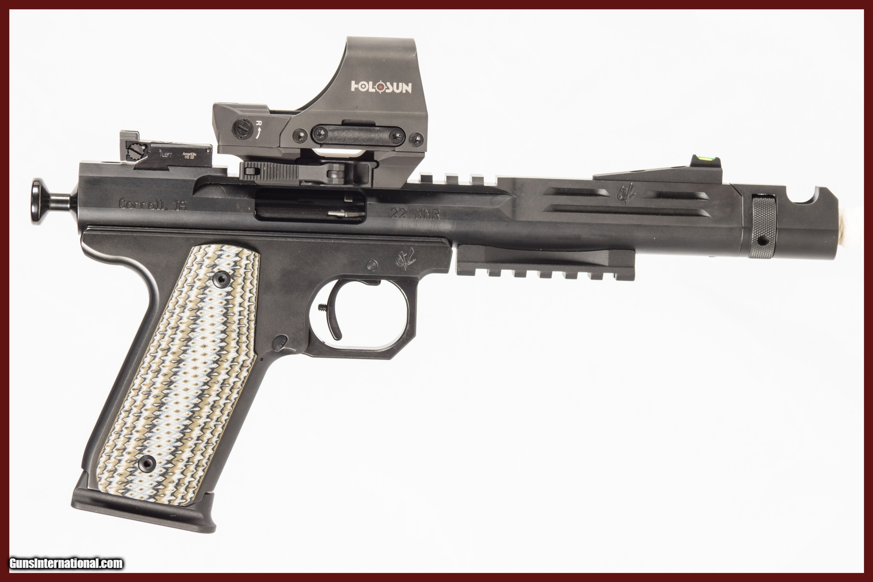 Description: Volquartsen Scorpion chambered in 22 WMR with a 7 inch barrel bright & shiny bore case extra magazine and Holosun optic. This gun is in excellent condition and is covered by Dury's Lifetime Warranty.