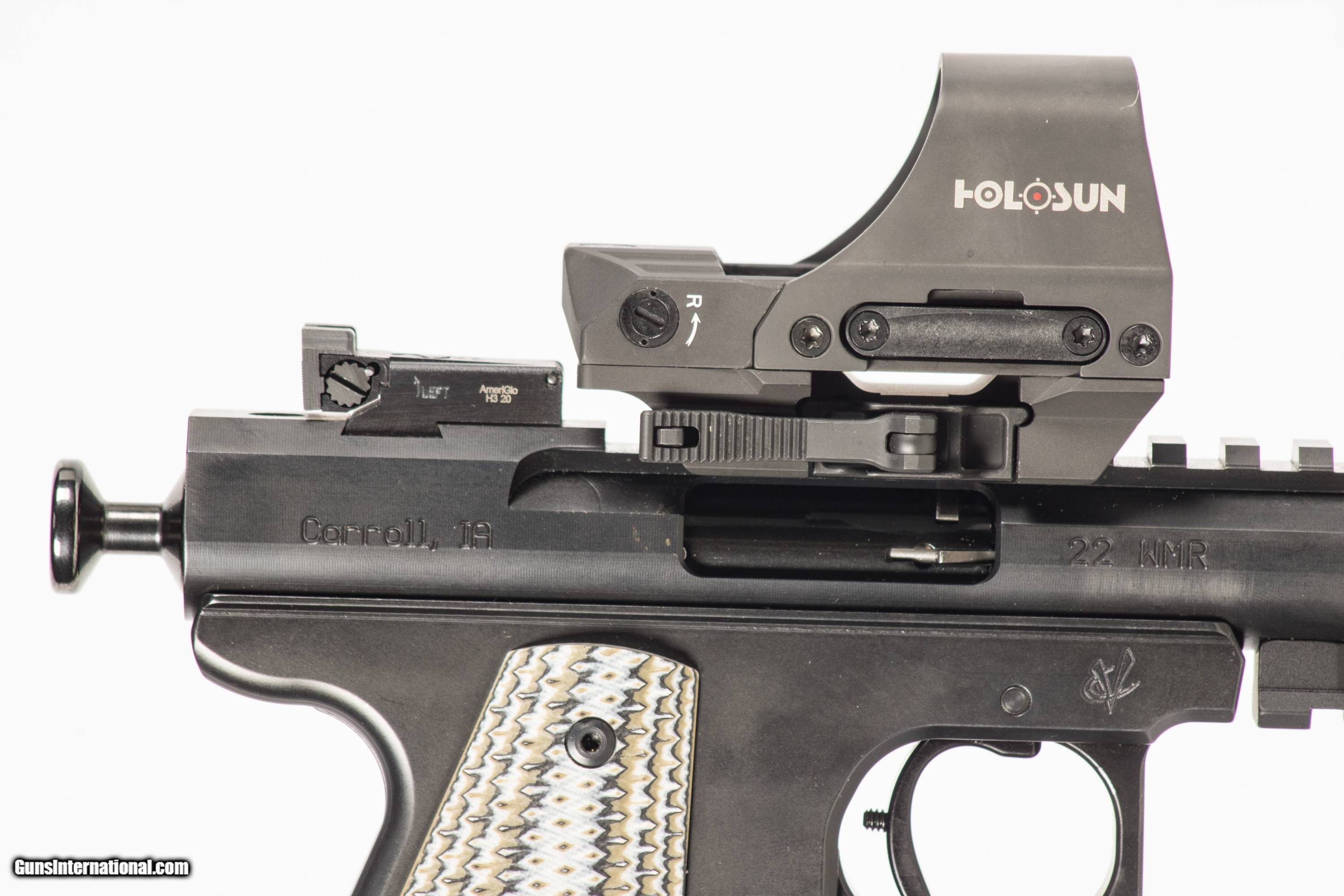 Volquartsen Scorpion chambered in 22 WMR with a 7 inch barrel bright & shiny bore case extra magazine and Holosun optic. This gun is in excellent condition and is covered by Dury's Lifetime Warranty.