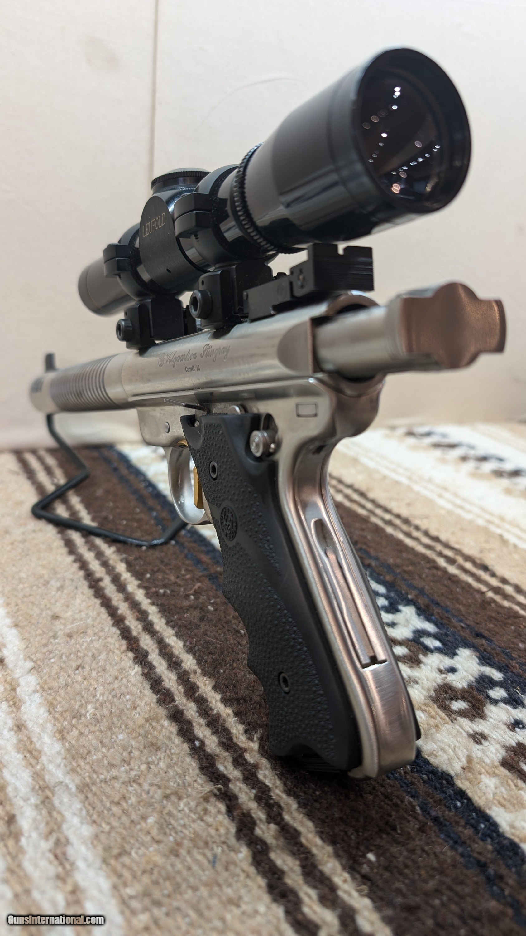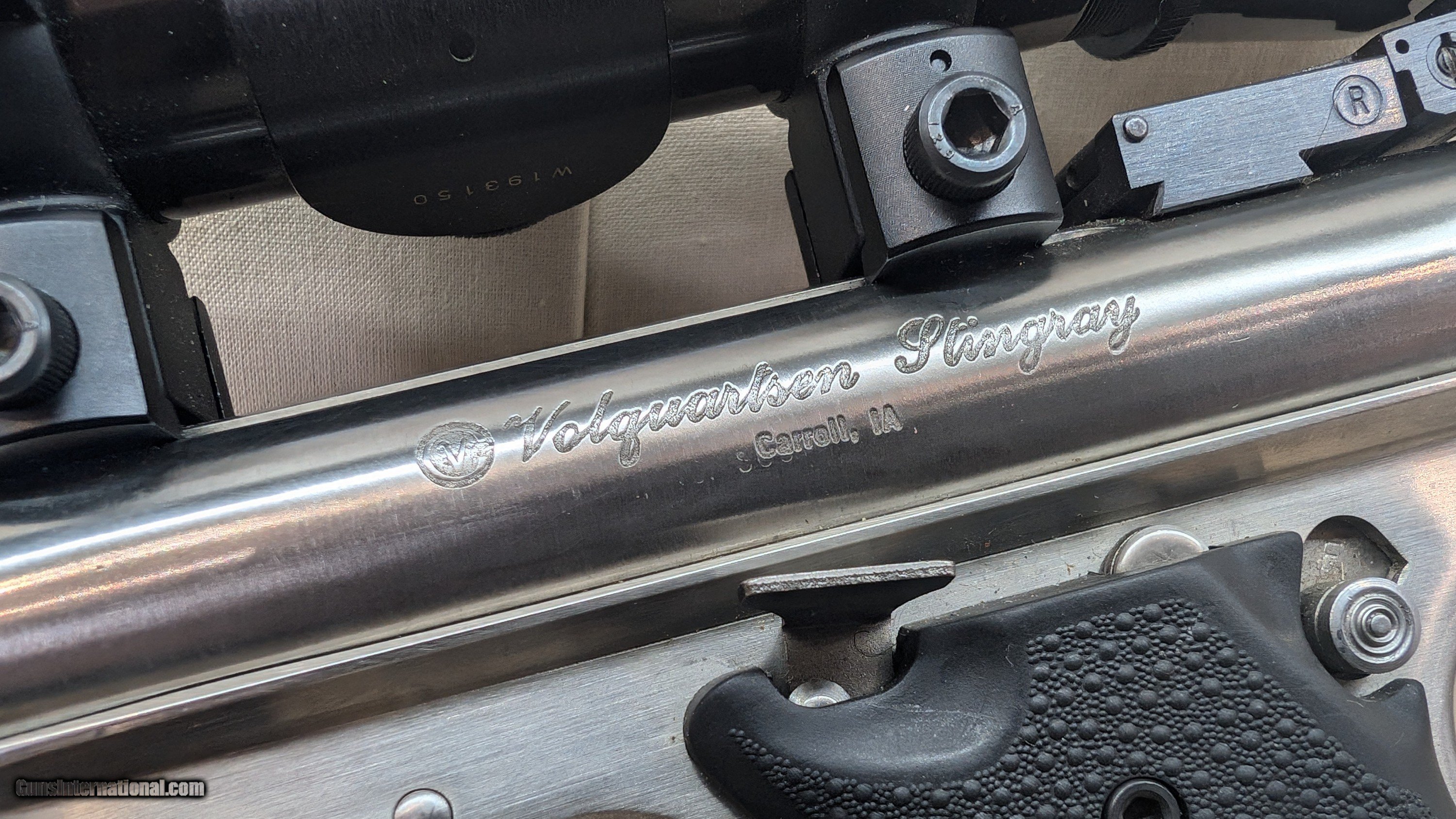 SOLD Manufacturer: VOLQUARTSEN Model: STINGRAY Serial Number: 217-31574 Condition: VERY GOOD Metal Condition: VERY GOOD Bore Condition: EXCELLENT Action: SEMIAUTOMATIC Triggers: ADJUSTABLE, GOLD Finish: STAINLESS Sights: BO-MAR |