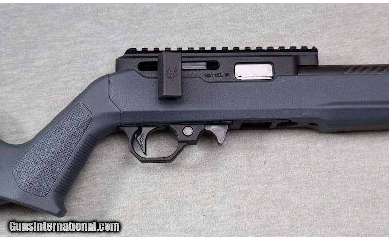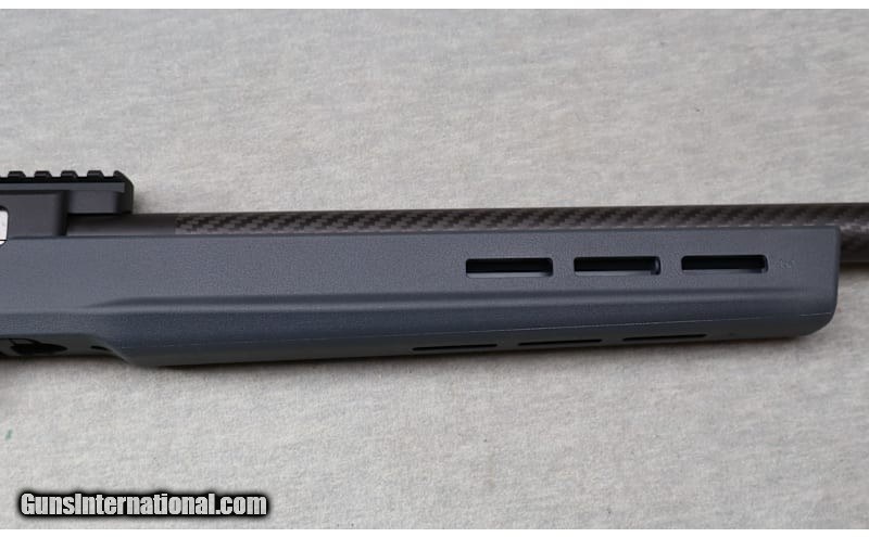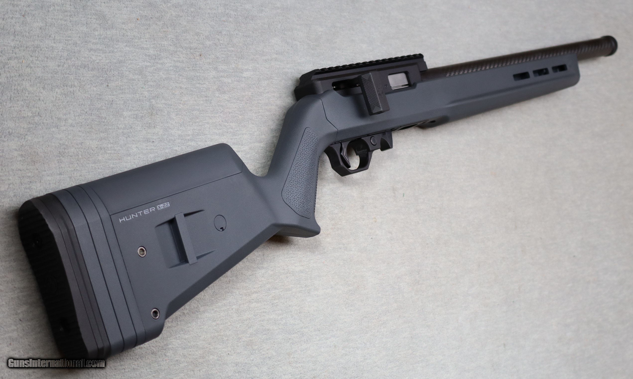 Description: Excellent condition, few light wear & handling marks, comes with one mag and original box. Straight pull bolt action rimfire rifle, 16" Volquartsen carbon fiber threaded barrel, black finish receiver, smooth action & crisp target trigger and receiver rail for optic mounting. Gray Magpul Hunter X-22 stock with MLOK mounting slots, adjustable cheek risers, LOP spacers and recoil pad. .22 Long Rifle SOLD Chambers: Straight pull bolt action Metal Condition: Excellent Bore Condition: Bright Barrels: 16 Triggers: Volquartsen factory target trigger Stock Dimensions: 13 1/2" LOP Fore End: Magpul polymer stock with MLOK mounting slots Butt Pad: Magpul pad Sights: Receiver rail for optic mounting Item Location: La Vista, NE |