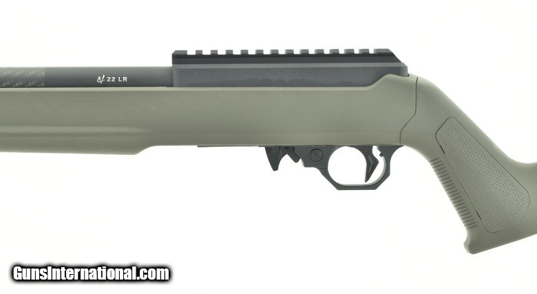 Volquartsen VM-22 .22 LR caliber rifle. Premium semi-auto with carbon fiber barrel and green Magpul stock. New.
