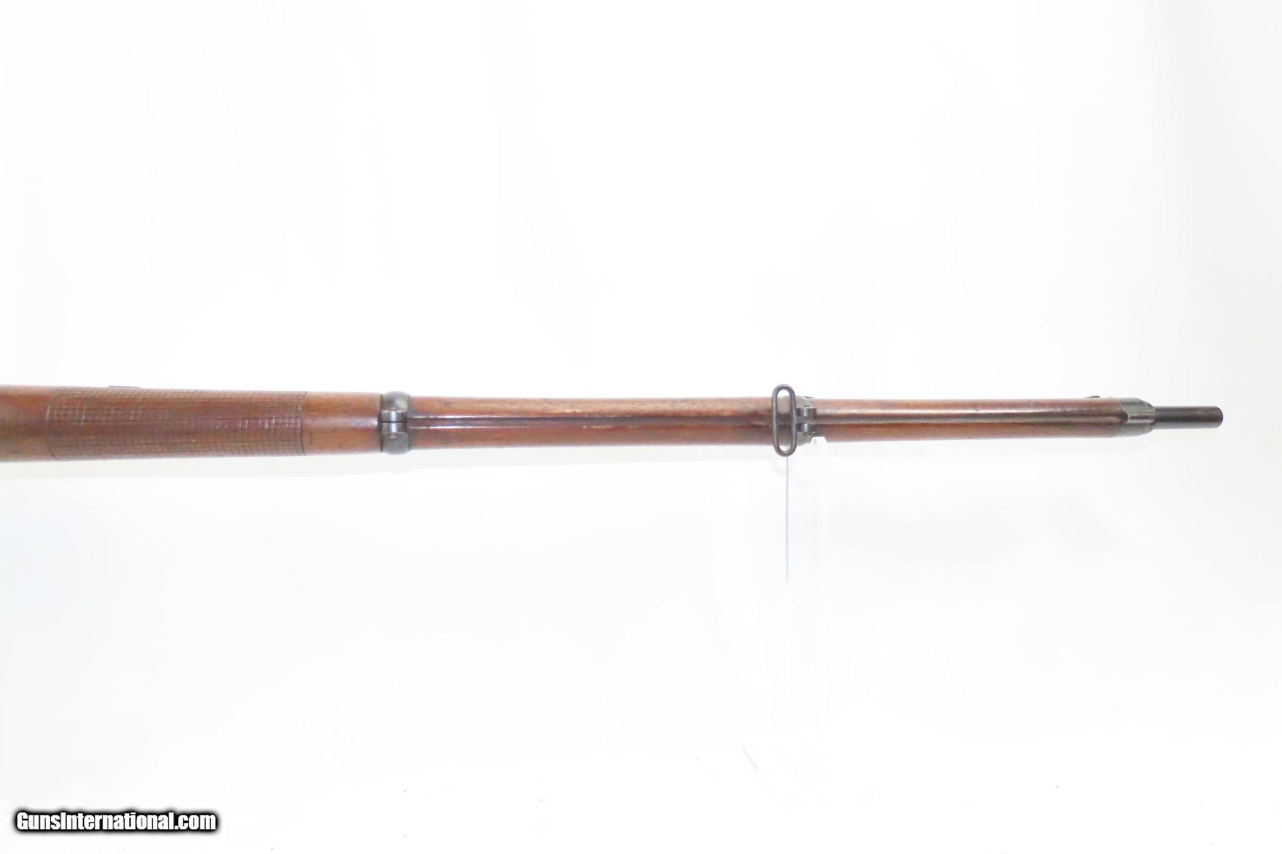 Description: Antique Swiss WAFFENFABRIK BERN Model 1869/71 VETTERLI Bolt Action Rifle High 12 Round Capacity in a Quality Military Rifle Here we present an antique Swiss Waffenfabrik Bern Vetterli Model 1869/71 Bolt Action Military Rifle, made circa 1871-74 at the Steiger Arsenal in Bern, Switzerland. Roughly 15,200 of these rifles were produced during this time period. The 1869 Repetiergewehr Vetterli, which in English would be Vetterli Repeating Rifle, was the first iteration of Vetterli rifles to go into full mass production. It was designed by Johann-Friedrich Vetterli (1822–1882), a Swiss rifle maker, who worked in France and England before becoming director of the Schweizerische Industrie Gesellschaft's armament factory in Neuhausen Switzerland. The Vetterli rifles were a series of Swiss army service rifles in use from 1869 to 1889, when they were replaced with the Schmidt-Rubin rifles. This type of bolt action was a major improvement over the simpler Dreyse and Chassepot bolt actions. The Vetterli was also the first repeating bolt-action rifle to feature a self-cocking action and a small caliber bore. Due to the Swiss Federal Council's early 1866 decision to equip the army with a breechloading repeating rifle, the Vetterli rifles were, at the time of their introduction, the most advanced military rifles in Europe. The years leading up to the 20th Century were characterized by rapidly progressing small arms designs, especially those for bolt action rifles, but for a short period of time, the Vetterli could claim the title for most advanced. Modified Vetterlis were also used by the Italian Army. This Swiss military rifle held 12 rounds of 10.4mm Centerfire cartridges, giving it a lot of firepower. The overall condition is very good. Original finish/patina. Strong action. Bright, nicely rifled bore. Very good stock overall and remains solid with an average amount of wear. Numbers match. Cleaning rod is absent. Own the original! This is a legitimate antique and not a reproduction. Barrel is 33-1/4 inches. Caliber: .41 Swiss (10.4x38mm) Overall condition as seen in photos. Very Fast. Very Safe. FREE SHIPPING WORLDWIDE. Delivered directly to your door by express mail! Guaranteed AUTHENTIC & Includes CERTIFICATE OF AUTHENTICITY. ancestryguns $1450 #217476 SOLD Antique: Yes |