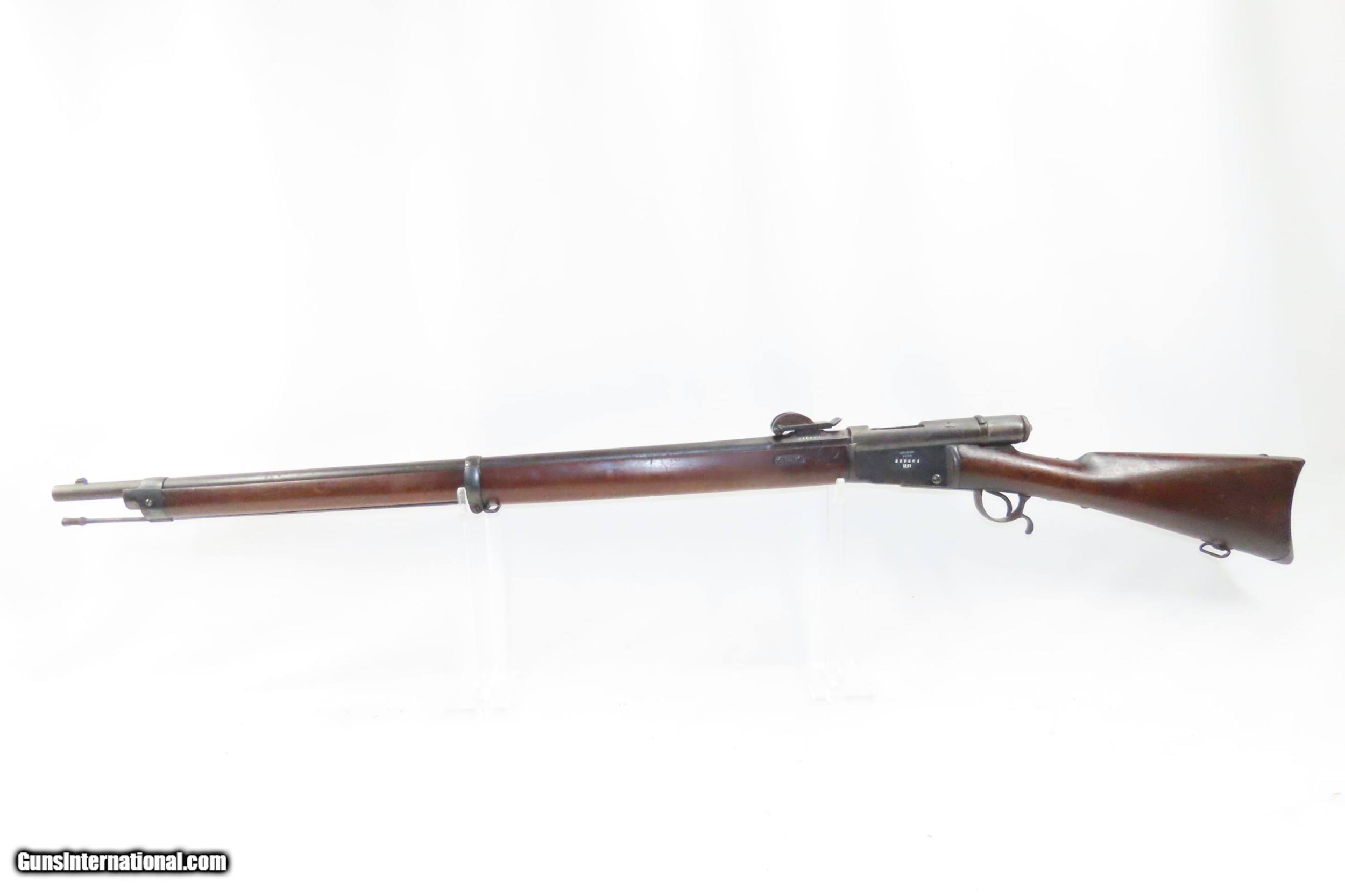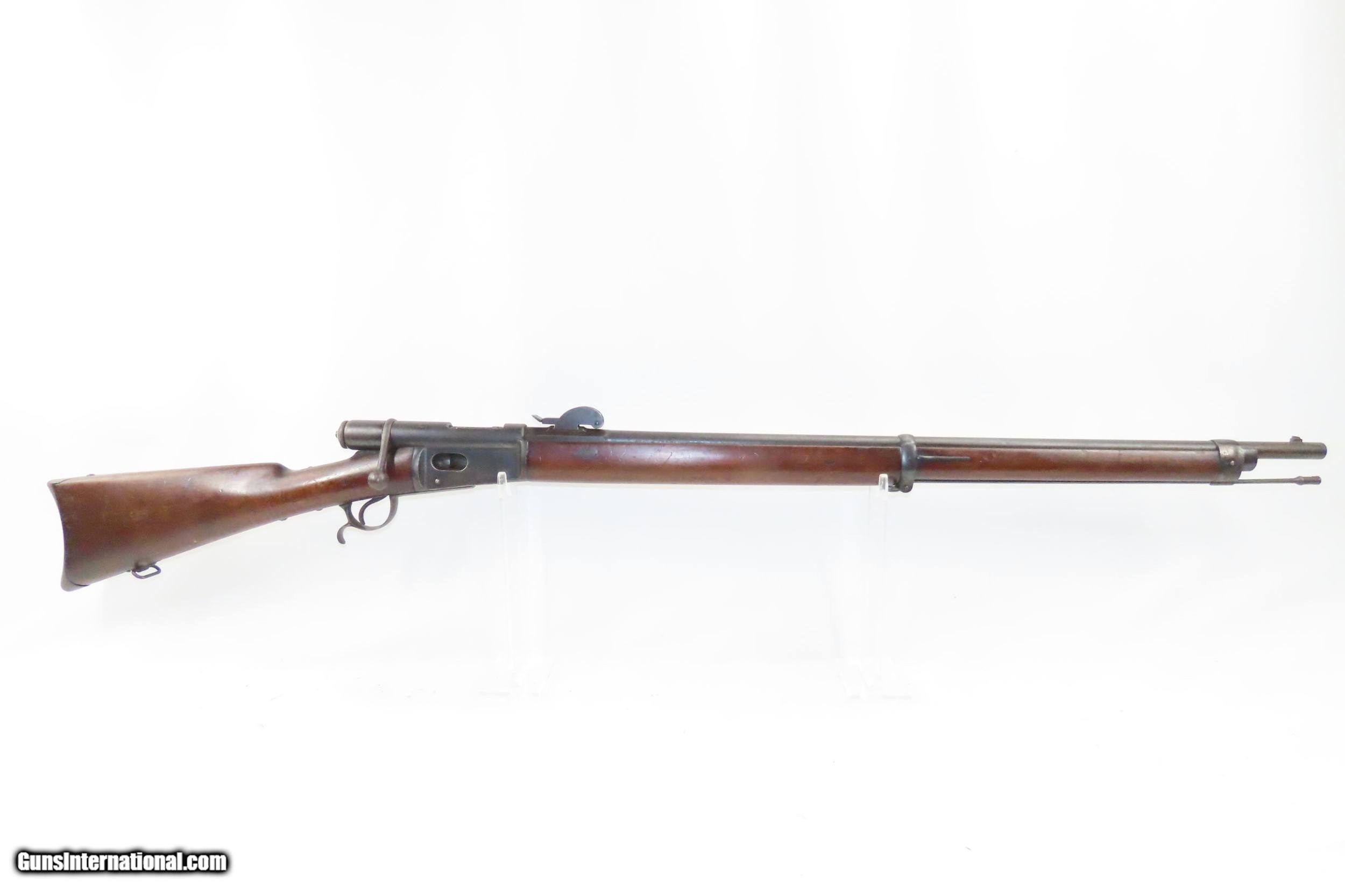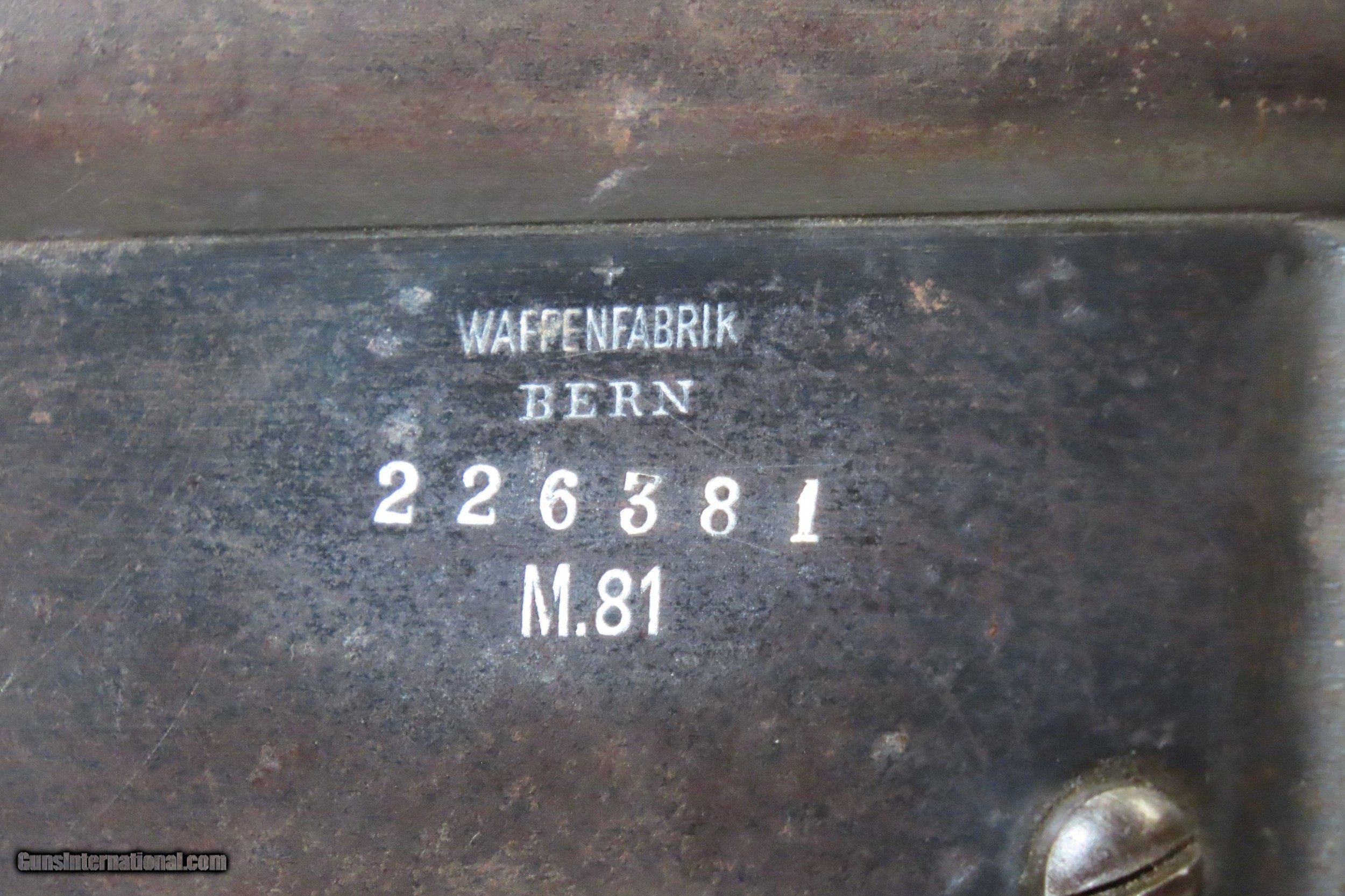Description: Antique SWISS WAFFENFABRIK BERN Model 1881 VETTERLI 10.4mm MILITARY Rifle 12 Round Capacity Bolt Action Military Rifle Here we present an antique Swiss Waffenfabrik Bern Vetterli Model 1881 Bolt Action Military Rifle made circa 1881 in Bern, Switzerland. To accelerate the sluggish production of the Vetterli rifles, the federal authorities built a new arms factory in Bern, the Eidgenössische Waffenfabrik (W+F), in 1875. That factory produced the 1878 and 1881 variant of the Vetterli rifle. It featured around 25 improvements over the Model 1871 that included a new bayonet and lug, improved sights and a finger hook on the trigger guard. The total production of the Model 1878 and the 1881 totaled 125,000. This rifle is chambered in the .41 Swiss (officially the 10.4x38mm R Swiss Vetterli M69/81) and is a .415 inch (10.54mm) Swiss military rimfire rifle cartridge. The Vetterli rifles were a series of Swiss army service rifles in use from 1869 to 1889, when they were replaced with the Schmidt-Rubin rifles. The Vetterli rifles combined the American Winchester Model 1866's tubular magazine with a regular bolt featuring for the first time two opposed rear locking lugs. This type of bolt was a major improvement over the simpler Dreyse and Chassepot bolt actions. Due to the Swiss Federal Council's early 1866 decision to equip the army with a breechloading repeating rifle, the Vetterli rifles were at the time of their introduction, the most advanced military rifles in Europe. Swiss inventor and gun maker Johann-Friedrich Vetterli designed this rifle in the late 1860s. This Swiss military rifle held 12 rounds of 10.4mm Rimfire cartridges, giving it a lot of firepower. The overall condition is good. Strong action (bolt has a little wiggle). The bore is in good shape and remains semi-bright. The stock is stable throughout with an expected amount of wear. Sharp markings. The numbers match. Own the original! This is a legitimate antique and not a reproduction. Barrel is 33 inches. Caliber: 10.4mm Overall condition as seen in photos. Very Fast. Very Safe. FREE SHIPPING WORLDWIDE. Delivered directly to your door by express mail! Guaranteed AUTHENTIC & Includes CERTIFICATE OF AUTHENTICITY. ancestryguns $1200 #217227 SOLD Antique: Yes |