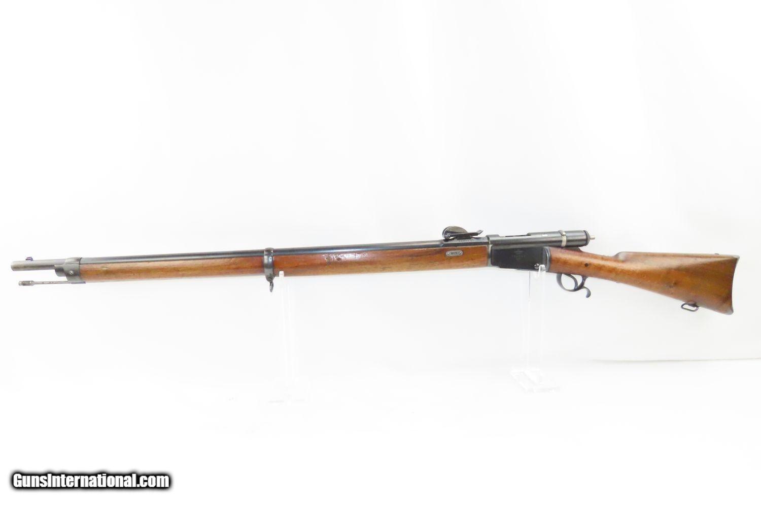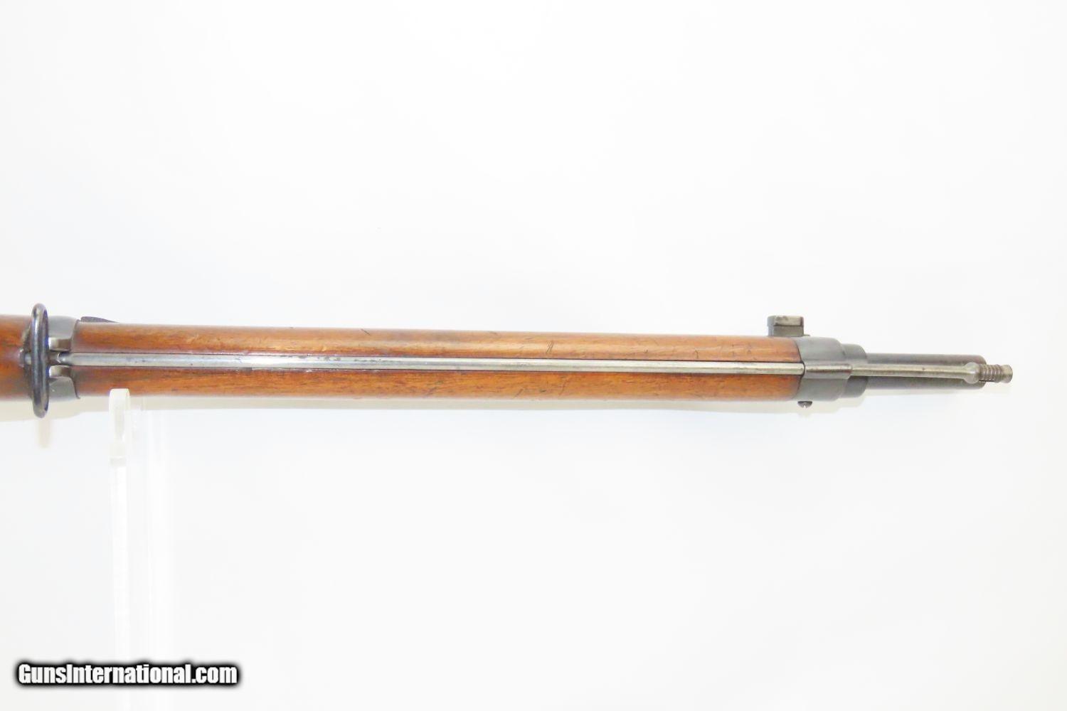 Description: Antique SWISS WAFFENFABRIK BERN Model 1881 VETTERLI 10.4mm Rifle Fine Swiss Craftsmanship Tube Fed Bolt Action Infantry Arm! Here we present an antique Swiss Waffenfabrik Vetterli Model 1881 Bolt Action Military Rifle, made circa 1881 in Bern, Switzerland. To accelerate the sluggish production of the Vetterli rifles, the federal authorities built a new arms factory in Bern, the Eidgenössische Waffenfabrik (W+F), in 1875. That factory produced the 1878 and 1881 variant of the Vetterli rifle. It featured around 25 improvements over the Model 1871 that included a new bayonet and lug, improved sights and a finger hook on the trigger guard. The total production of the Model 1878 and the 1881 totaled 125,000 with only 11,000 being the “Stutzer” version. The Vetterli rifles were a series of Swiss army service rifles in use from 1869 to 1889, when they were replaced with the Schmidt-Rubin rifles. The Vetterli rifles combined the American Winchester Model 1866's tubular magazine with a regular bolt featuring for the first time two opposed rear locking lugs. This type of bolt was a major improvement over the simpler Dreyse and Chassepot bolt actions. The Vetterli was also the first repeating bolt-action rifle to feature a self-cocking action and a small caliber bore. Due to the Swiss Federal Council's early 1866 decision to equip the army with a breechloading repeating rifle, the Vetterli rifles were, at the time of their introduction, the most advanced military rifles in Europe. Swiss inventor and gun maker Johann-Friedrich Vetterli designed this rifle in the late 1860s. The years leading up to the 20th Century were characterized by rapidly progressing small arms designs, especially those for bolt action rifles, but for a short period of time, the Vetterli could claim the title for most advanced. Modified Vetterlis were also used by the Italian Army. The overall condition is fine. The action is robust and tight all around. The bore is bright. This example sports a solid stock. Clear markings throughout. The numbers match. Own the original! This is a legitimate antique and not a reproduction. Barrel is 23 inches. Caliber: 10.4mm (.41 caliber) Swiss Rimfire Overall condition as seen in photos. Very Fast. Very Safe. FREE SHIPPING WORLDWIDE. Delivered directly to your door by express mail! Guaranteed AUTHENTIC & Includes CERTIFICATE OF AUTHENTICITY. ancestryguns $1445 #201127 SOLD Antique: Yes |