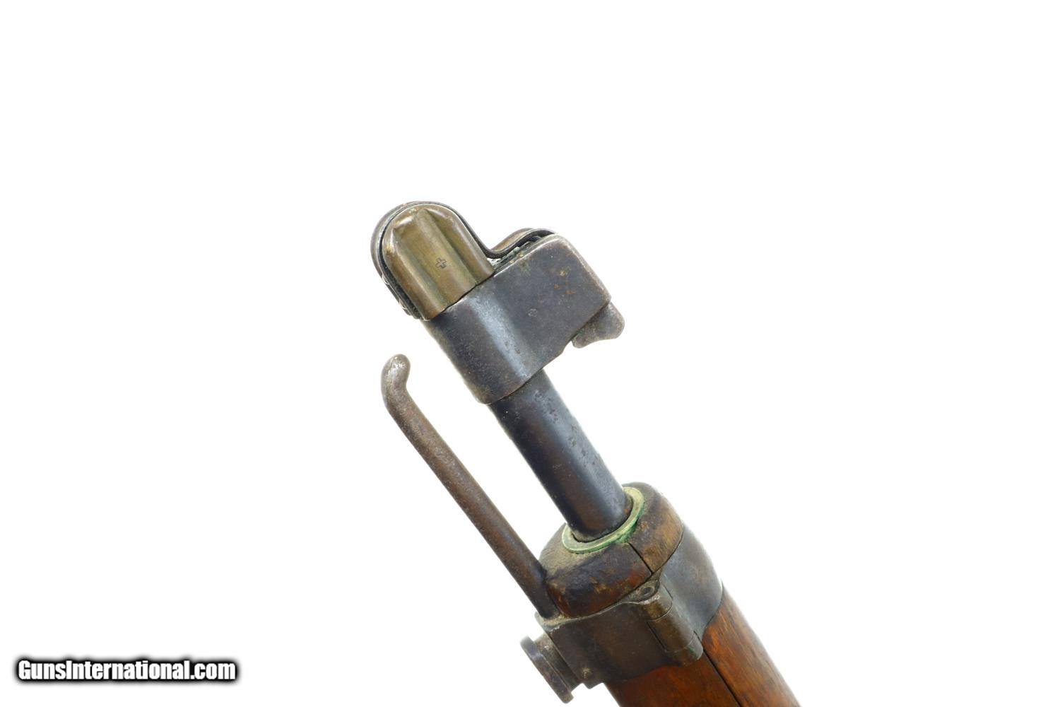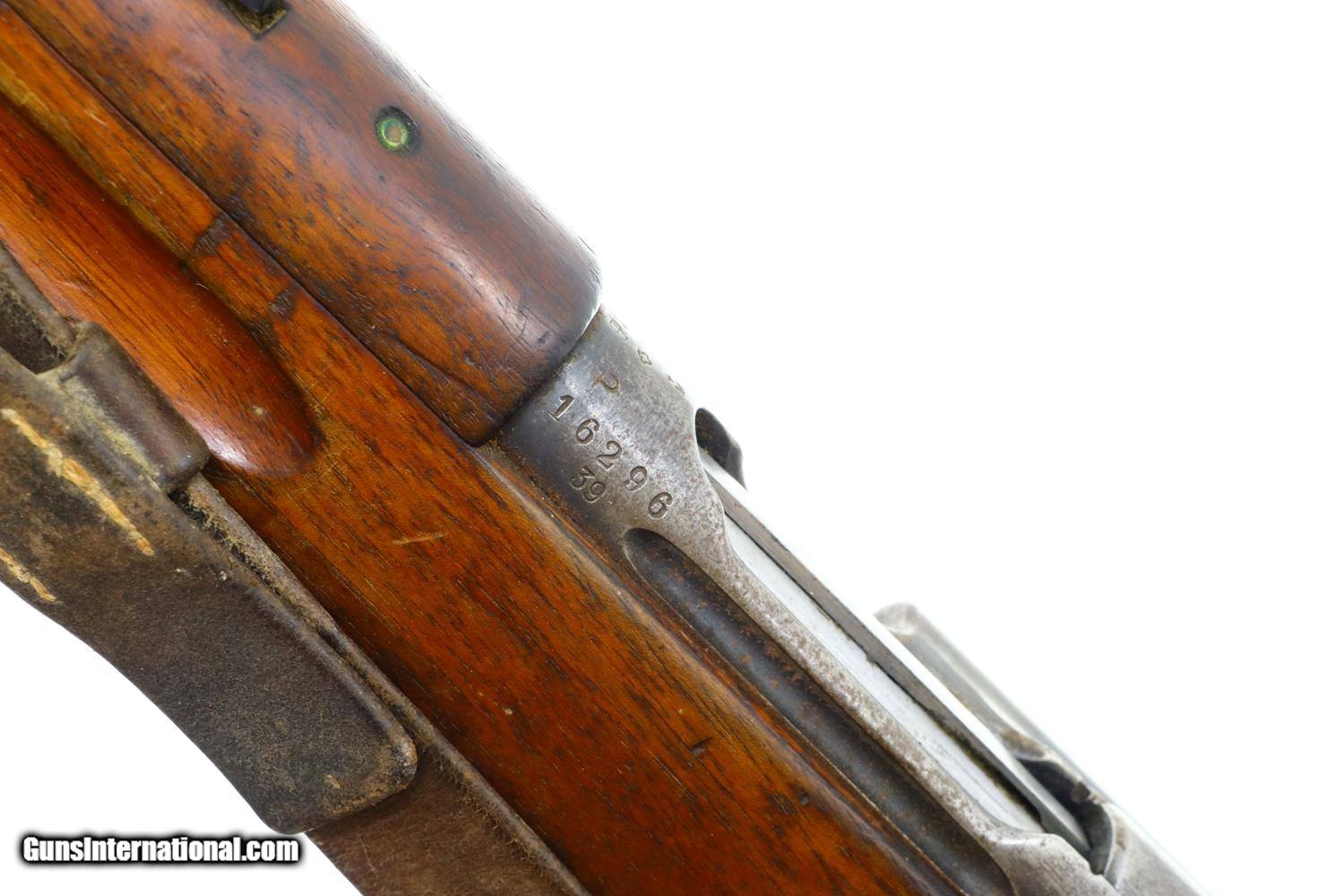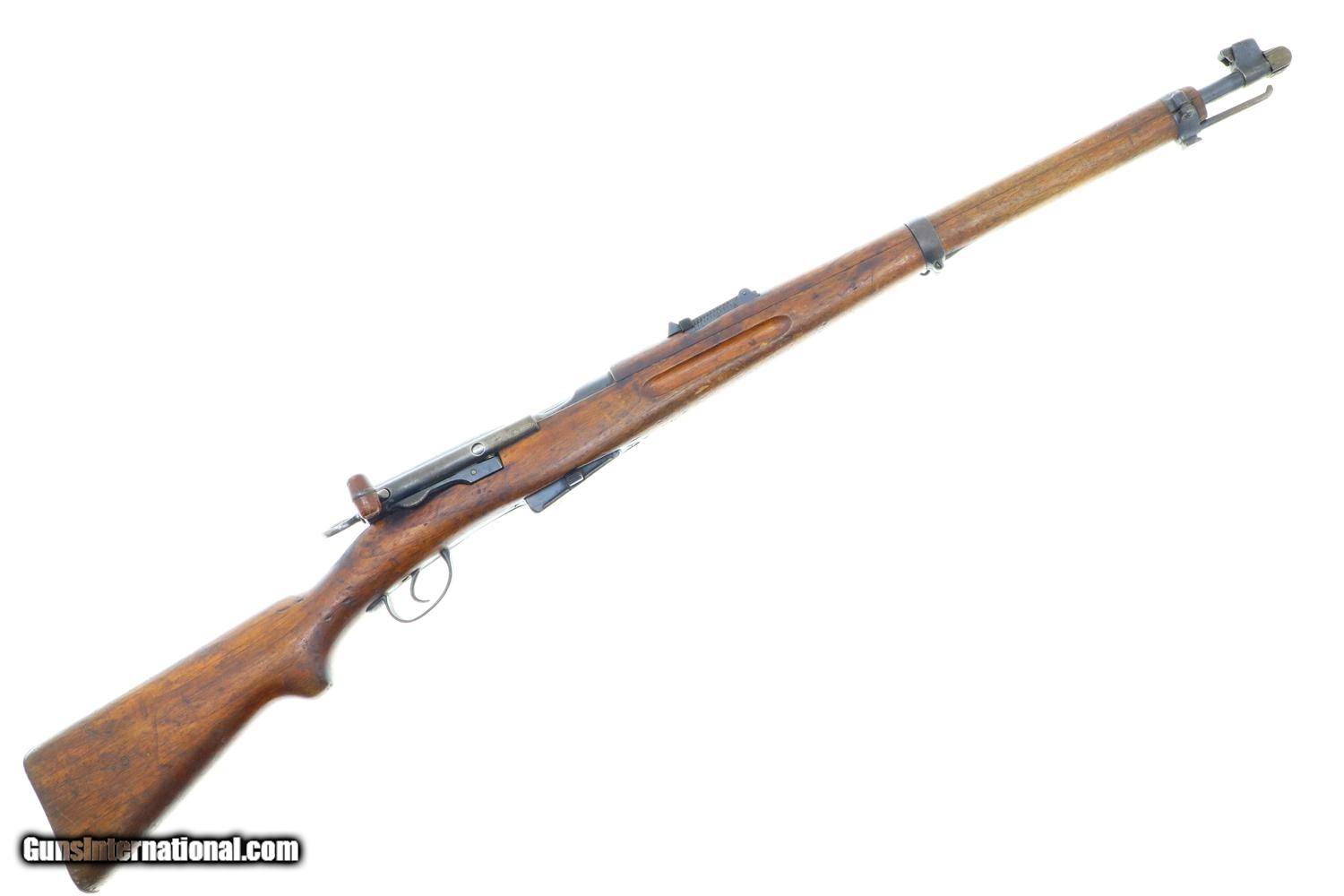 Description: Standard configuration and externally matching K11 carbine, circa 1931, with tangent rear sight graduated 1-15, straight pull bolt, detachable magazine, brass muzzle cap and metal buttplate. The left side of receiver is marked 16296 with “P” release, the same number repeated on the bolt and on the bottom of the magazine, the last three digits on the barrel that has a Swiss military muzzle cap. Import marked Walnut stock, military accepted. Metal buttplate. Military sling dated “not discernible”. Synopsis: Bern 1911 Swiss Military K11 Carbine, 16296, I-1040 Condition: G with considerable fading and staining of metal. Comparable walnut stock. Bright bore with sharp rifling. Perfect manual mechanics. Excellent, later era sling. A classic Swiss military rifle in G condition, perfect for the range or in your collection! ~~Insured shipping fee of $75; most packages shipped using FedEx 2nd Day.~~ SOLD Manufacturer: Bern Serial Number: 16296 Caliber Info: 7.5x55 |