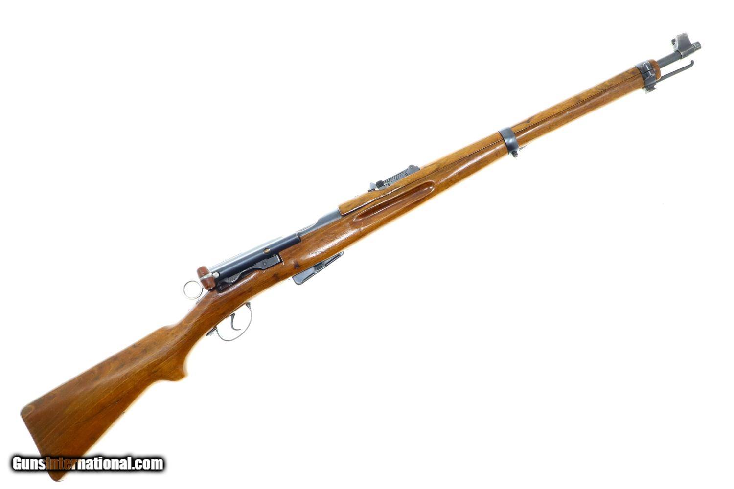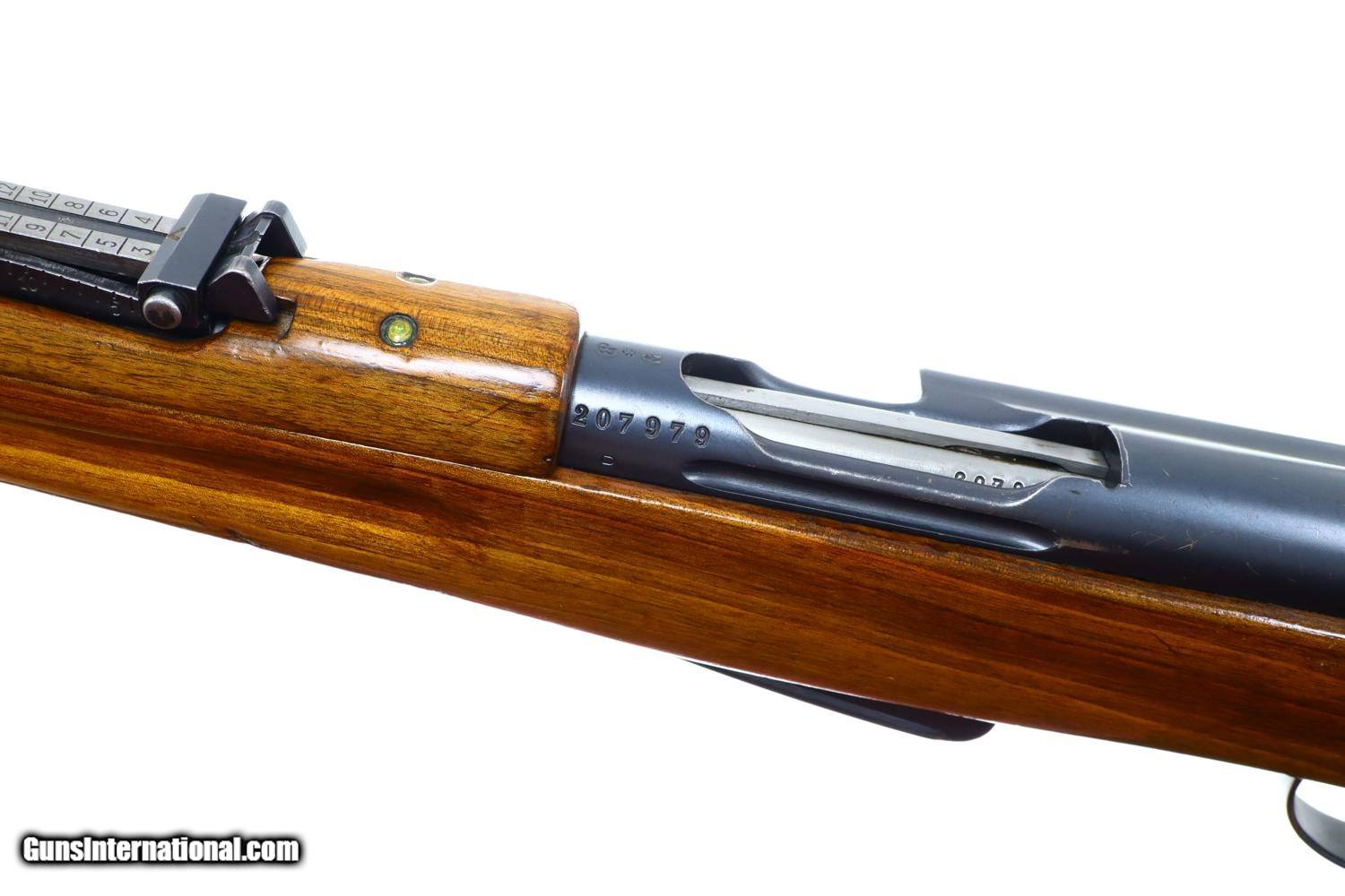 Description: Standard configuration and externally matching K11 carbine, circa 1931, with tangent rear sight graduated 1-15, straight pull bolt, detachable magazine, and metal buttplate. The left side of receiver is marked 207979 with “P” release, the same number repeated on the bolt and on the bottom of the magazine, the last three digits on the barrel. Import marked Walnut stock, military accepted. Metal buttplate. Synopsis: Bern 1911 Swiss Military K11 Carbine, 207979, I-1126 Condition: VG+ condition as arsenal reworked with wear on the blued components as photographed. Heavily revarnished stock. Bright bore with sharp rifling. Perfect manual mechanics. Excellent, later era sling. A classic Swiss military rifle in VG+ condition, perfect for the range or in your collection! ~~Insured shipping fee of $75; most packages shipped using FedEx 2nd Day.~~ SOLD Curio/Relic: Yes Manufacturer: Bern Serial Number: 207979 Caliber Info: 7.5x55 |