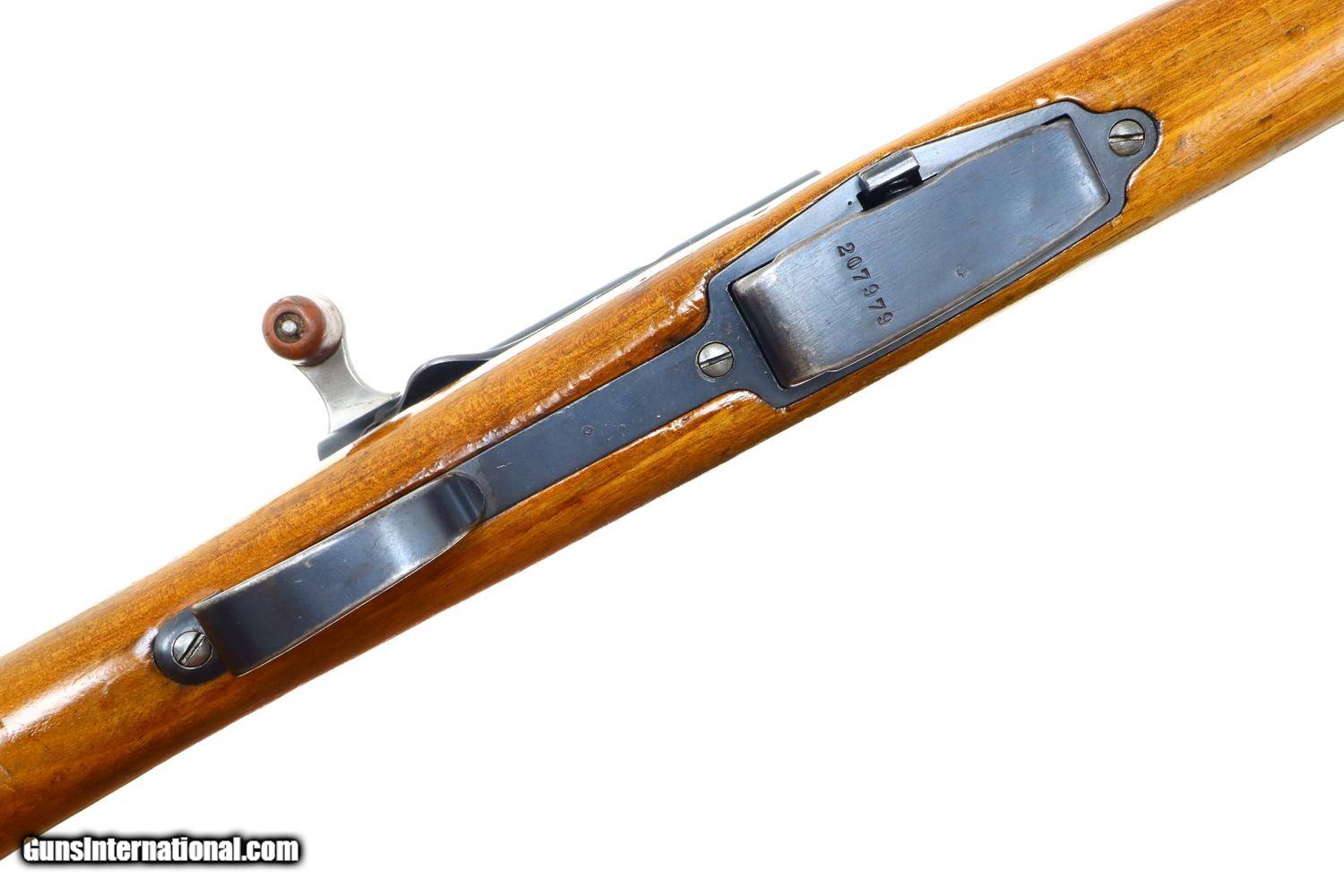 Description: Standard configuration and externally matching K11 carbine, circa 1931, with tangent rear sight graduated 1-15, straight pull bolt, detachable magazine, and metal buttplate. The left side of receiver is marked 207979 with “P” release, the same number repeated on the bolt and on the bottom of the magazine, the last three digits on the barrel. Import marked Walnut stock, military accepted. Metal buttplate. Synopsis: Bern 1911 Swiss Military K11 Carbine, 207979, I-1126 Condition: VG+ condition as arsenal reworked with wear on the blued components as photographed. Heavily revarnished stock. Bright bore with sharp rifling. Perfect manual mechanics. Excellent, later era sling. A classic Swiss military rifle in VG+ condition, perfect for the range or in your collection! ~~Insured shipping fee of $75; most packages shipped using FedEx 2nd Day.~~ SOLD Curio/Relic: Yes Manufacturer: Bern Serial Number: 207979 Caliber Info: 7.5x55 |