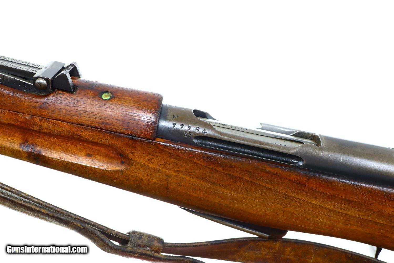 Description: Standard configuration and externally matching K11 carbine, circa 1923, with tangent rear sight graduated 1-15, straight pull bolt, detachable magazine, brass muzzle cap and metal buttplate. The left side of receiver is marked 77784 with “P” release, the same number repeated on the bolt and on the bottom of the magazine, the last three digits on the barrel. Import marked Walnut stock, military accepted. Metal buttplate. Military sling. Synopsis: Bern, 1911, Swiss Military, K11 Carbine, 77784, I-1128 Condition: G original blue with fading. Comparable walnut stock. Dull bore with sharp rifling. Perfect manual mechanics. Excellent, later era sling. A classic Swiss military rifle in G condition, perfect for the range or in your collection! ~~Insured shipping fee of $75; most packages shipped using FedEx 2nd Day.~~ SOLD Curio/Relic: Yes Manufacturer: Bern Serial Number: 77784 Caliber Info: 7.5x55 |