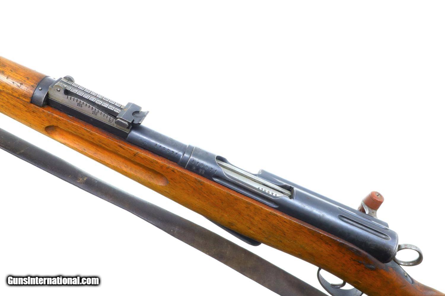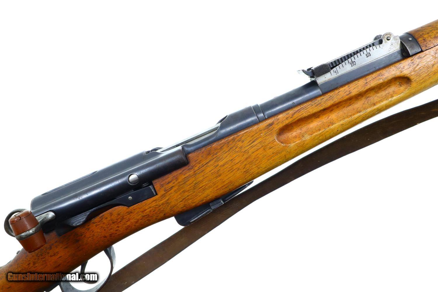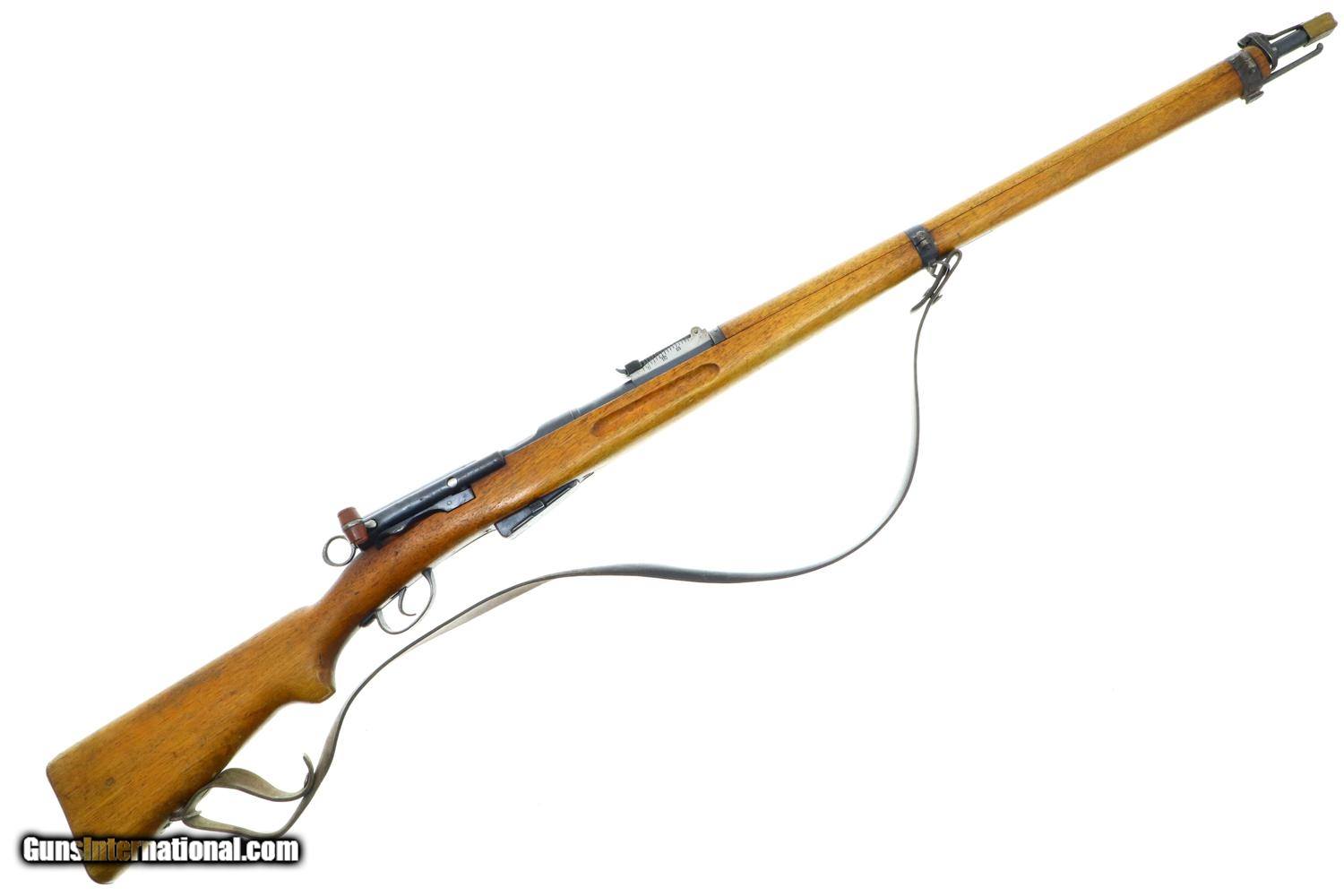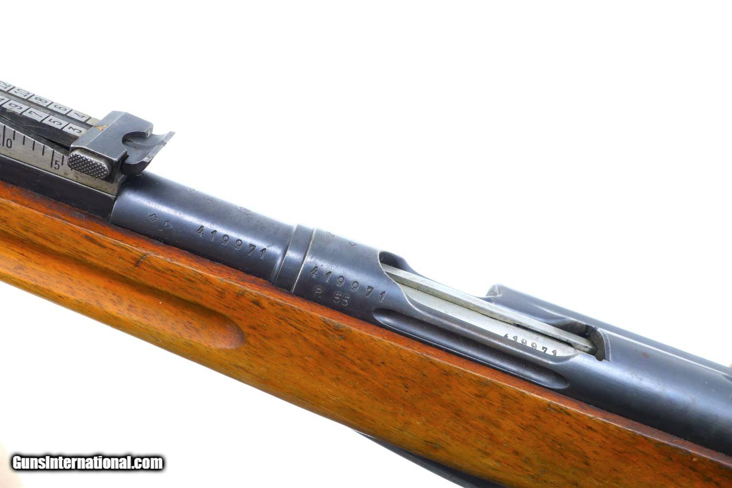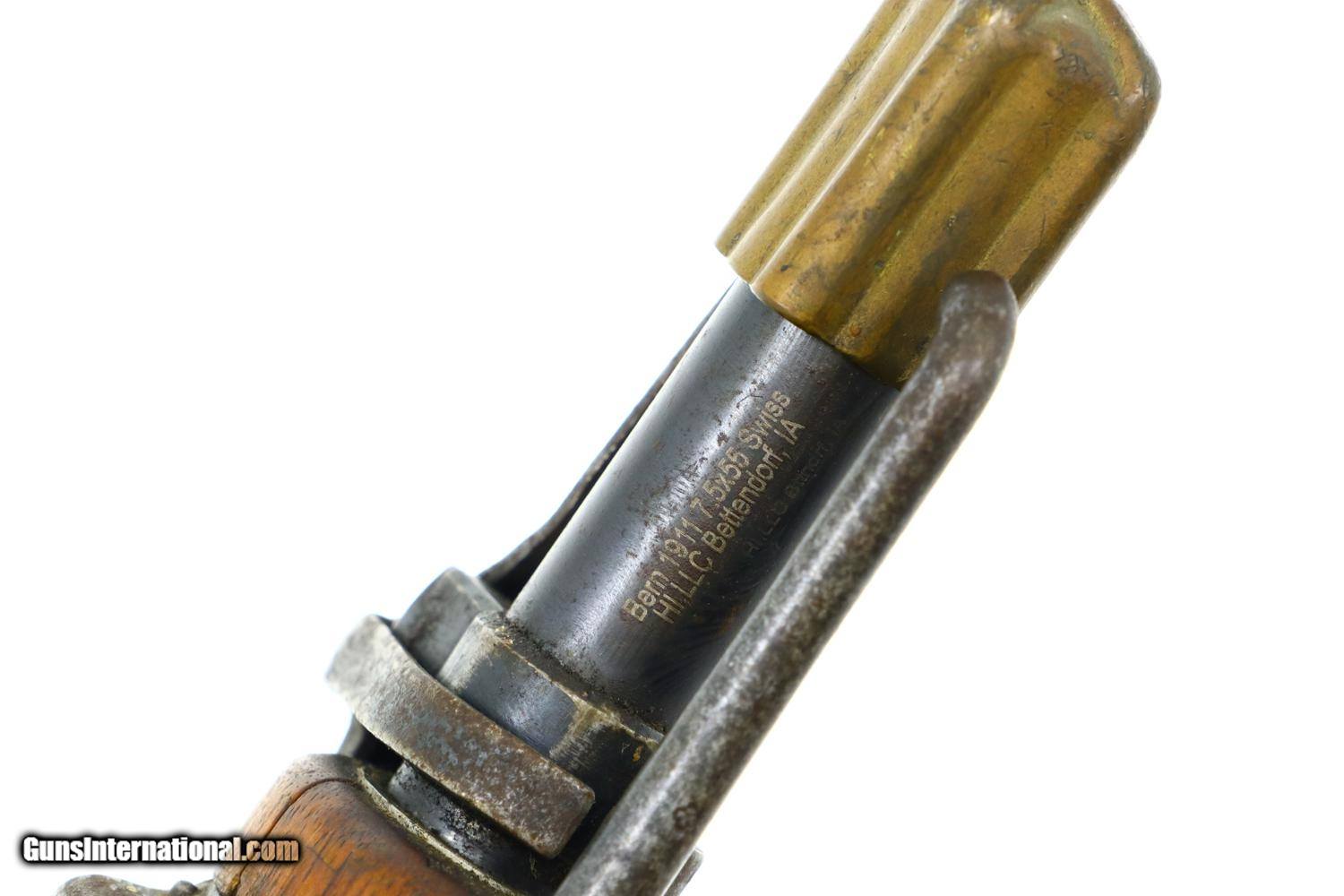 Description: Standard configuration and matching 1911 rifle, caliber 7.5x55, with barrel length 30.7'/overall length 51.5'/6-shot detachable magazine, made 1912 to 1919, total production estimated at 127,000, this example made 1916, with tangent rear sight graduated 1-15, straight pull bolt, detachable magazine, brass muzzle cap and metal buttplate. The left side of receiver is marked 419971, the same number repeated on the barrel, bolt, and bottom of the magazine. Release dated P55. Walnut stock, military accepted. Metal buttplate. Correct muzzle cap. Leather sling. Synopsis: Bern, 1911, Swiss Military Rifle, 419971, I-1037 Condition: VG/VG+ original blue. Dull bore. Perfect manual mechanics. A classic and early Swiss military rifle, perfect for the range or your collection! ~~Insured shipping fee of $75; most packages shipped using FedEx 2nd Day.~~ SOLD Curio/Relic: Yes Manufacturer: Bern Serial Number: 419971 Caliber Info: 7.5x55 |