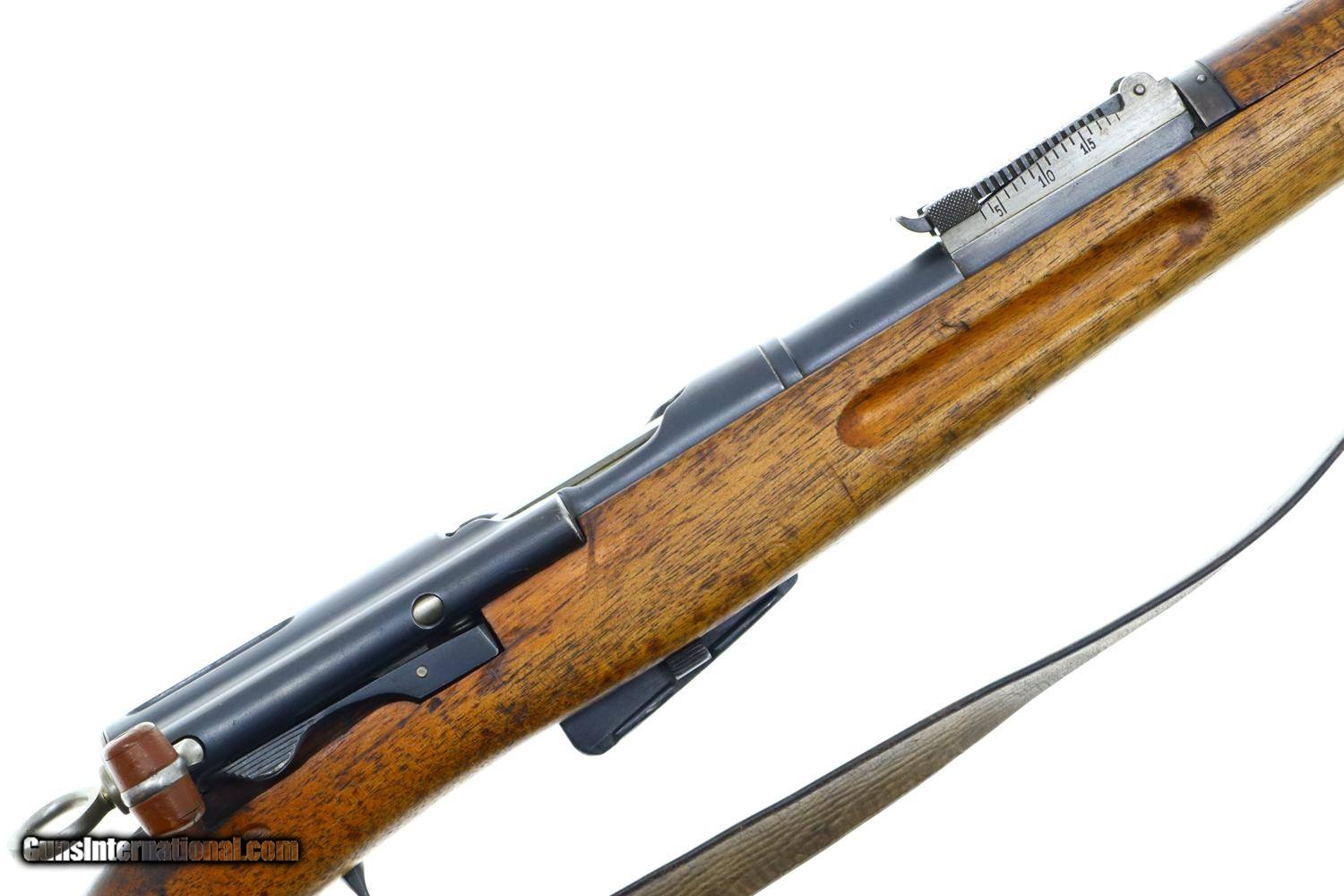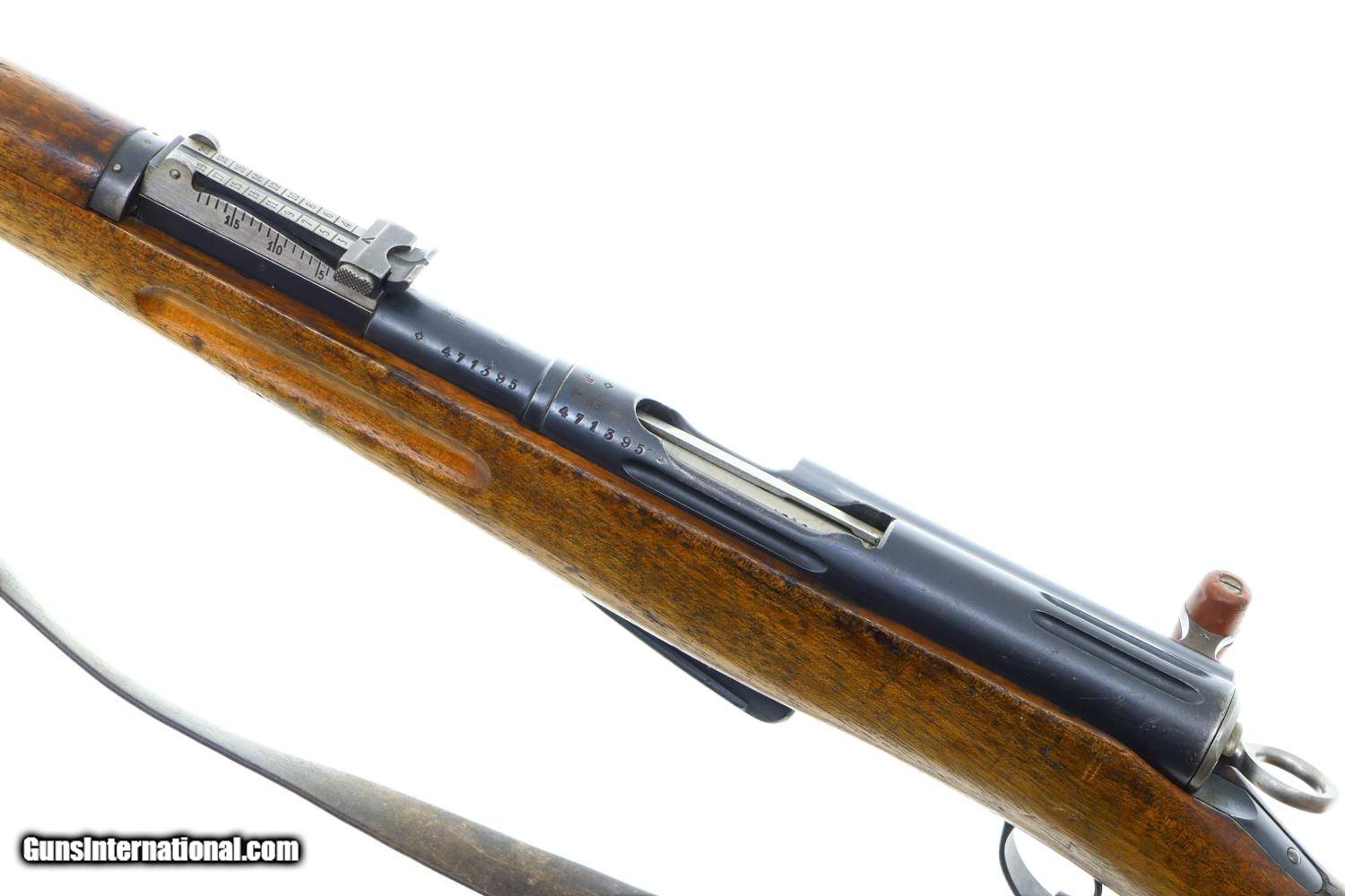 Description: Standard configuration and matching 1911 rifle, caliber 7.5x55, with barrel length 30.7'/overall length 51.5'/6-shot detachable magazine, made 1912 to 1919, total production estimated at 127,000, this example made 1918, with tangent rear sight graduated 1-15, straight pull bolt, detachable magazine, brass muzzle cap and metal buttplate. The left side of receiver is marked 471395, the same number repeated on the barrel, bolt, and bottom of the magazine. Walnut stock, military accepted. Metal buttplate. Correct muzzle cap. Leather sling. Synopsis: Bern, 1911, Swiss Military Rifle, 471395, I-1047 Condition: G original blue. Dull bore.with sharp rifling Perfect manual mechanics. A classic and early Swiss military rifle, much better than most, perfect for your collection! ~~Insured shipping fee of $75; most packages shipped using FedEx 2nd Day.~~ SOLD Curio/Relic: Yes Serial Number: 471395 Caliber Info: 7.5x55 |