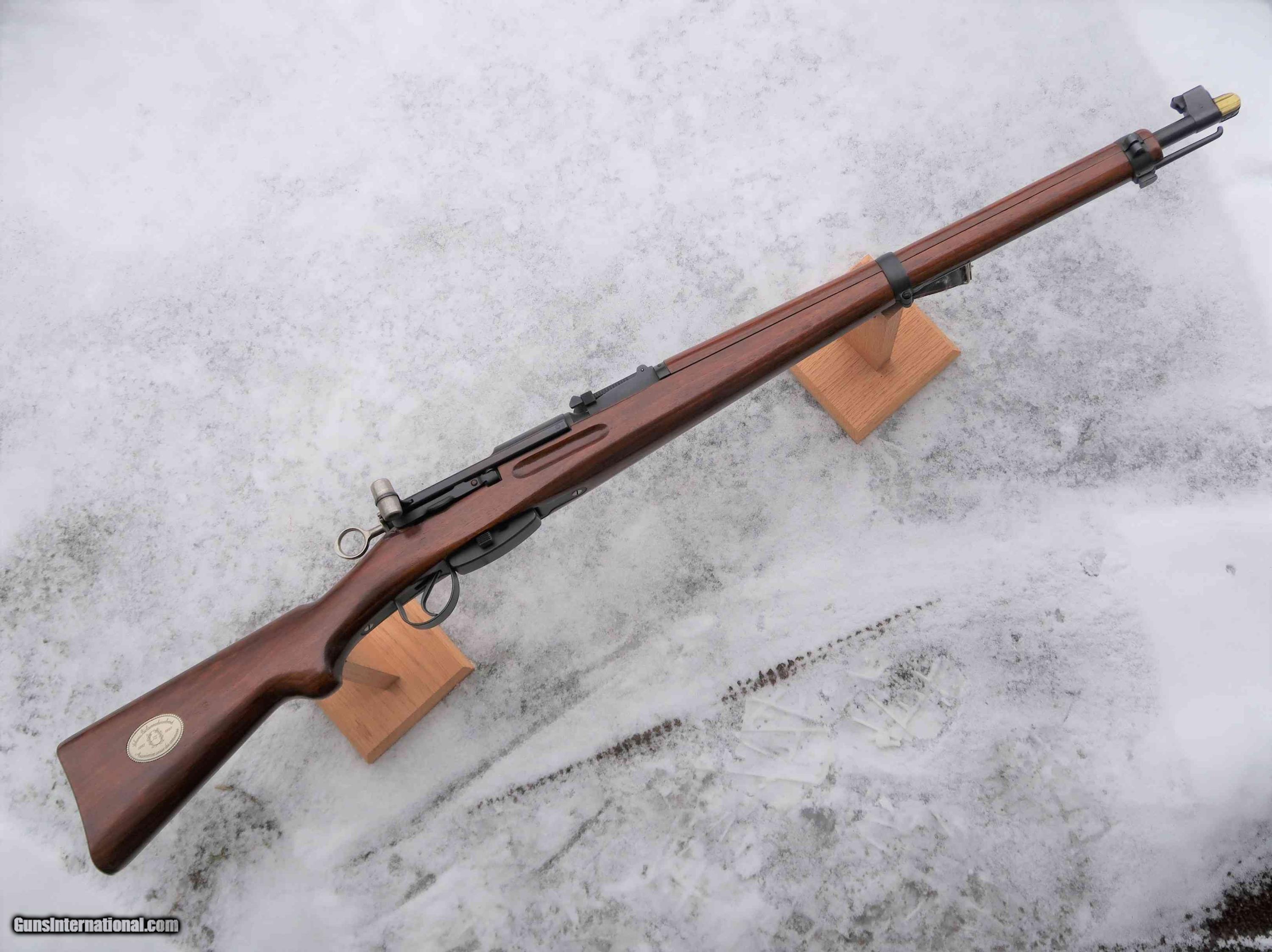Rifle is excellent-near new with only a few small handling marks and a very small chip near the toe, adjacent to buttplate, as photographed. If you want a fantastic, K31 with a super-impressive factory gold crest on the chamber, a little different from most commemoratives, that matches a 50th aniversary rifle, this is your chance! this is your chance!