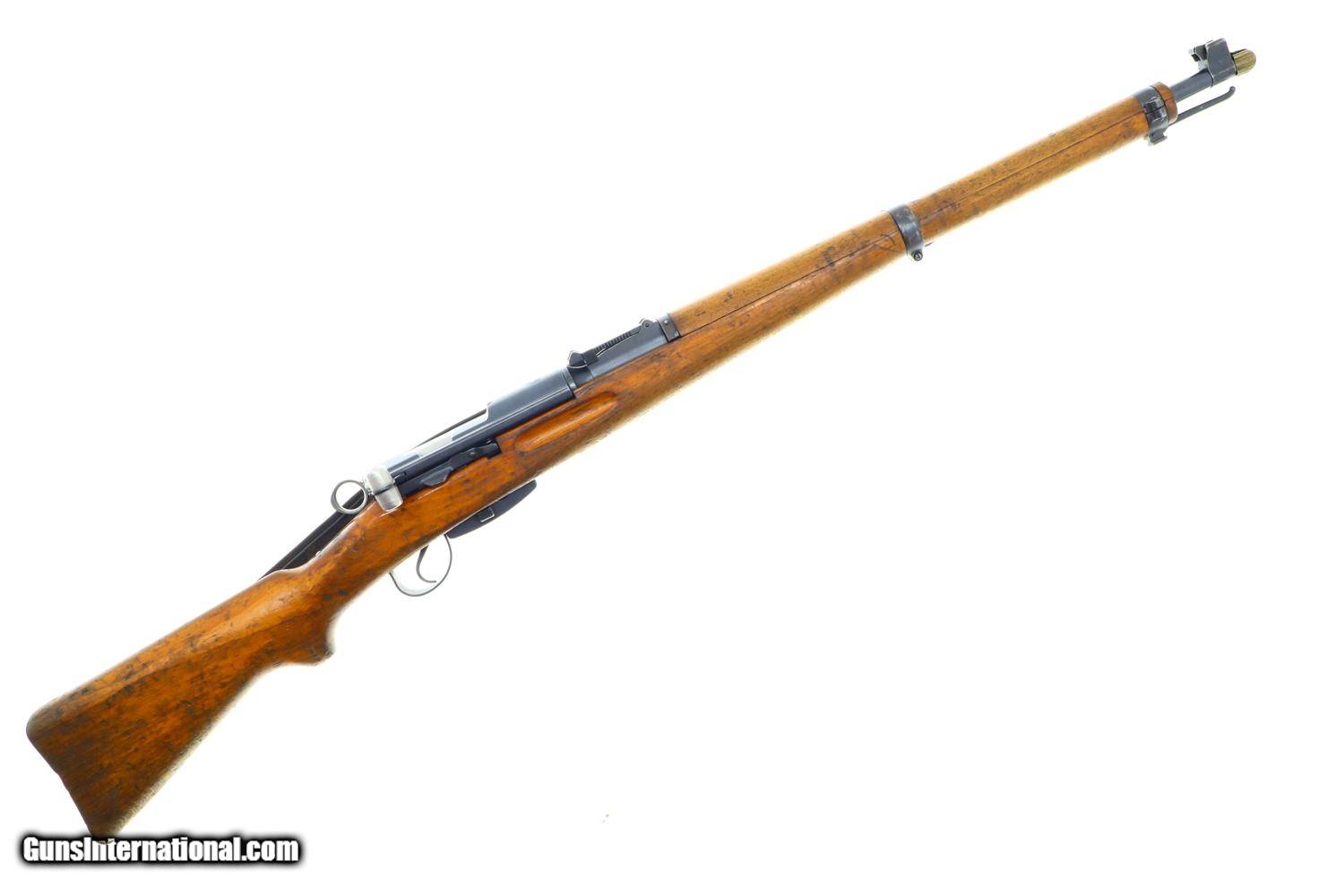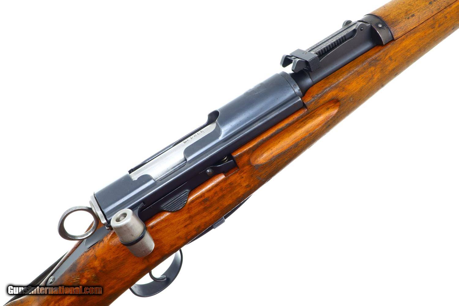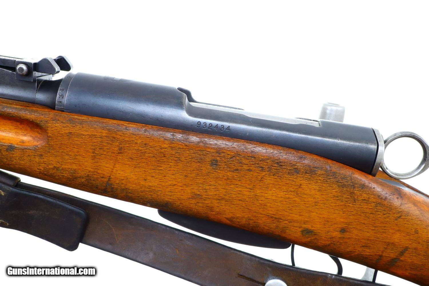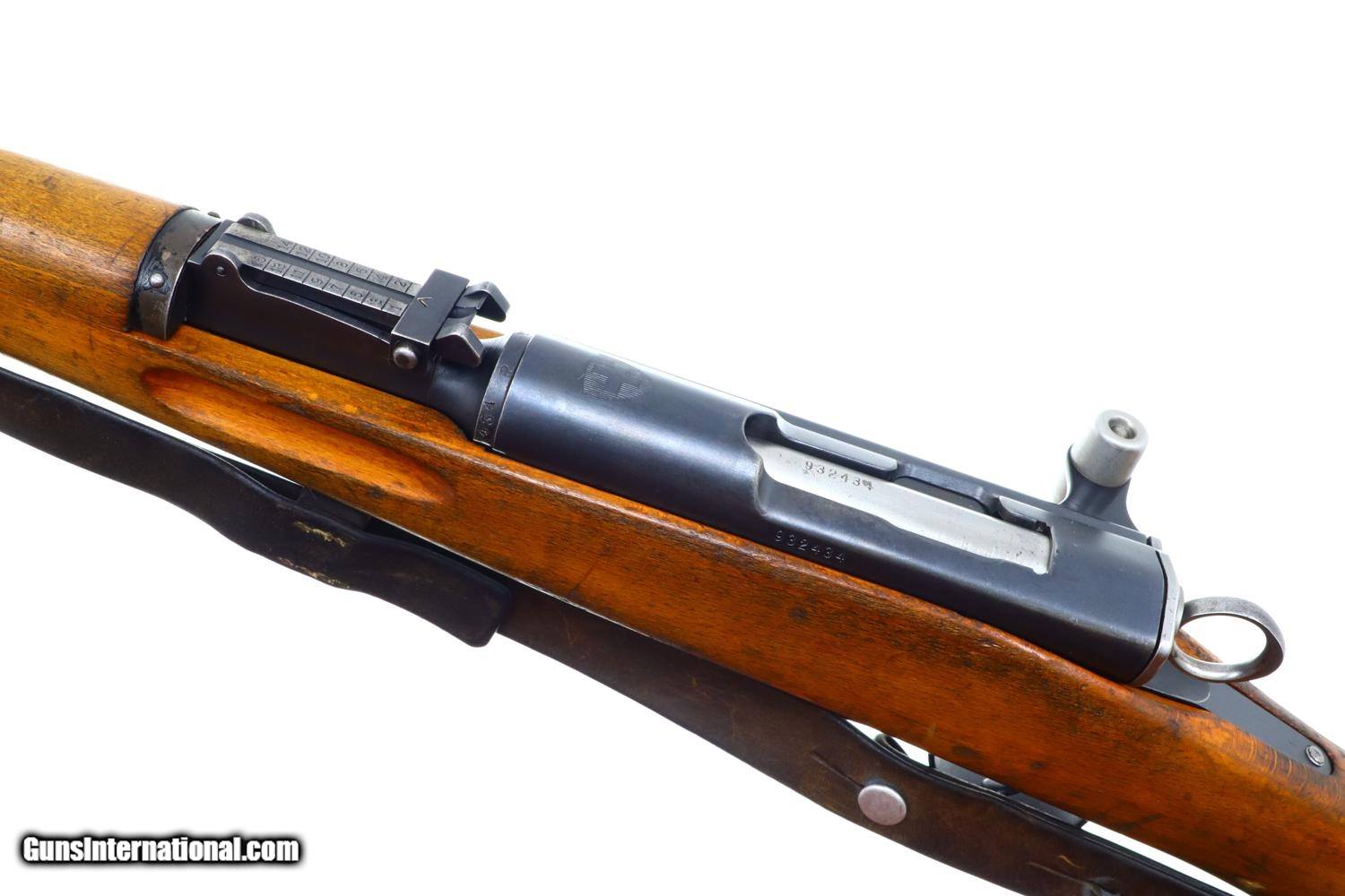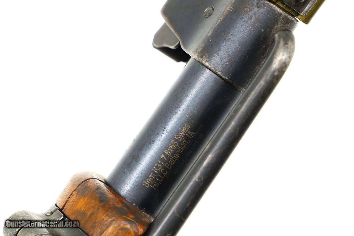 Description: Standard configuration and externally matching Bern K31 rifle, made 1949, with tangent rear sight graduated 1-15, straight pull bolt, detachable magazine, brass muzzle cap and metal buttplate. The left side of receiver is marked 932434 the same number repeated on the bolt and on the bottom of the magazine, the last three digits on the barrel that is import marked. Walnut stock, military proofed. Metal buttplate. Military Sling “44”. Synopsis: Bern, K31, Swiss Military Rifle, 932434, I-1130 Condition: VG+ condition with handling and fading commensurate with a rifle that has seen moderate service use. Mirror bore with sharp rifling. Perfect manual mechanics. A classic Swiss military rifle in VG+ condition with a great bore. ~~Insured shipping fee of $75; most packages shipped using FedEx 2nd Day.~~ SOLD Curio/Relic: Yes Manufacturer: Bern Serial Number: 932434 Caliber Info: 7.5x55 |
